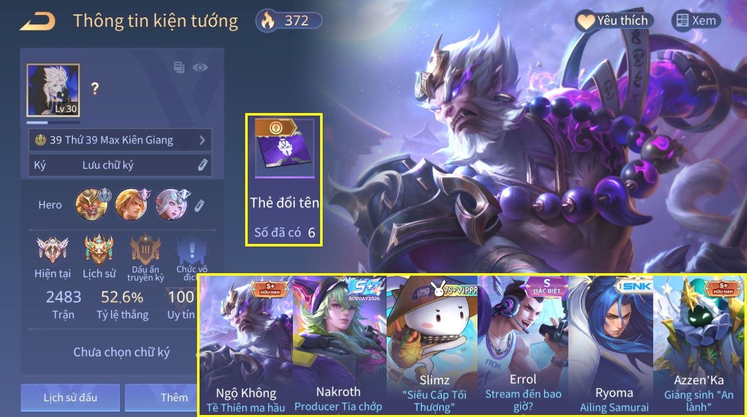 Nổi bật: Full Ngọc, Nhiều Skin SS Đẹp