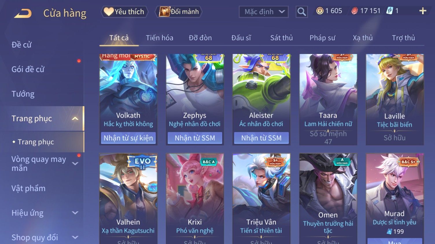 Nổi bật: Full Ngọc, Nhiều Skin SS Đẹp