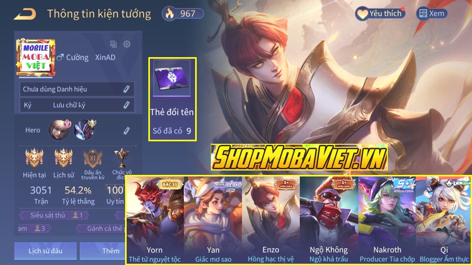 Nổi bật: Yorn Thế Tử Nguyệt Tộc×Enzo Hồng Hạc Thị Vệ×Ngộ Không Ngộ Khá Trẩu×