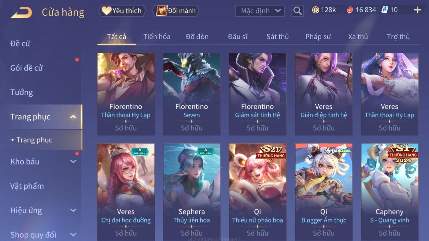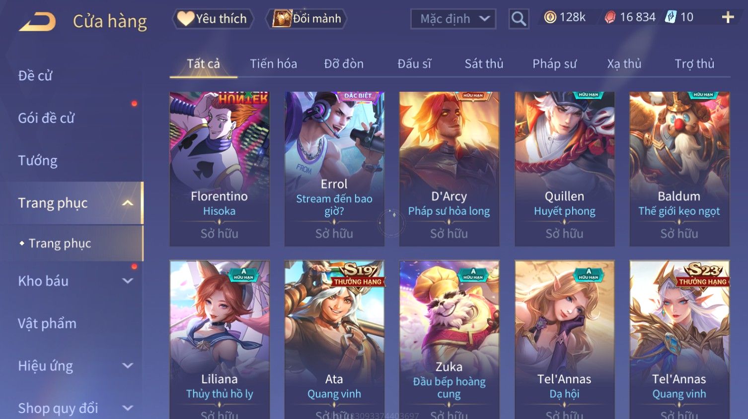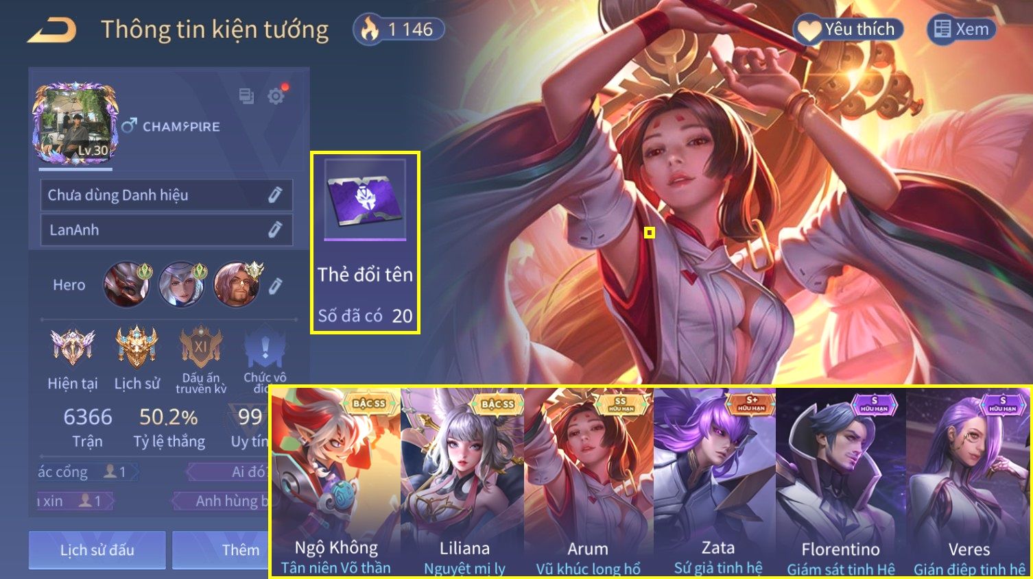 Nổi bật: Skin: Ngộ Không Tân Niên Võ Thần×Liliana Nguyệt Mị Ly×Arum Vũ Khúc Long Hổ×Zata Sứ Giả Tinh Hệ×Florentino Giám Sát Tinh Hệ×Veres Gián Điệp Tinh Hệ×Full Ngọc, Nhiều Skin Đẹp