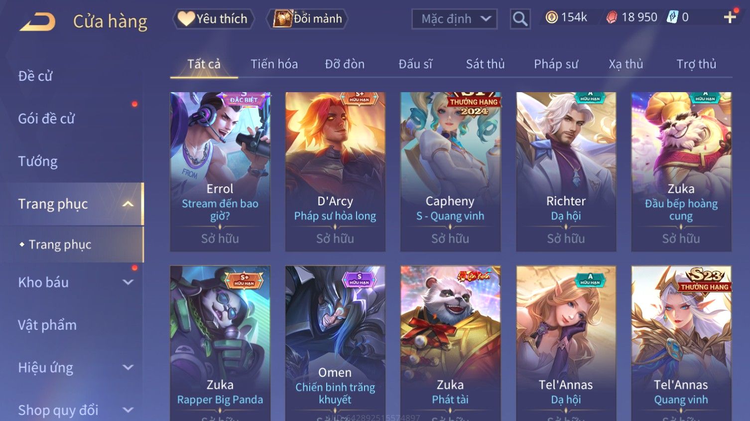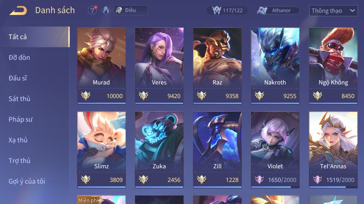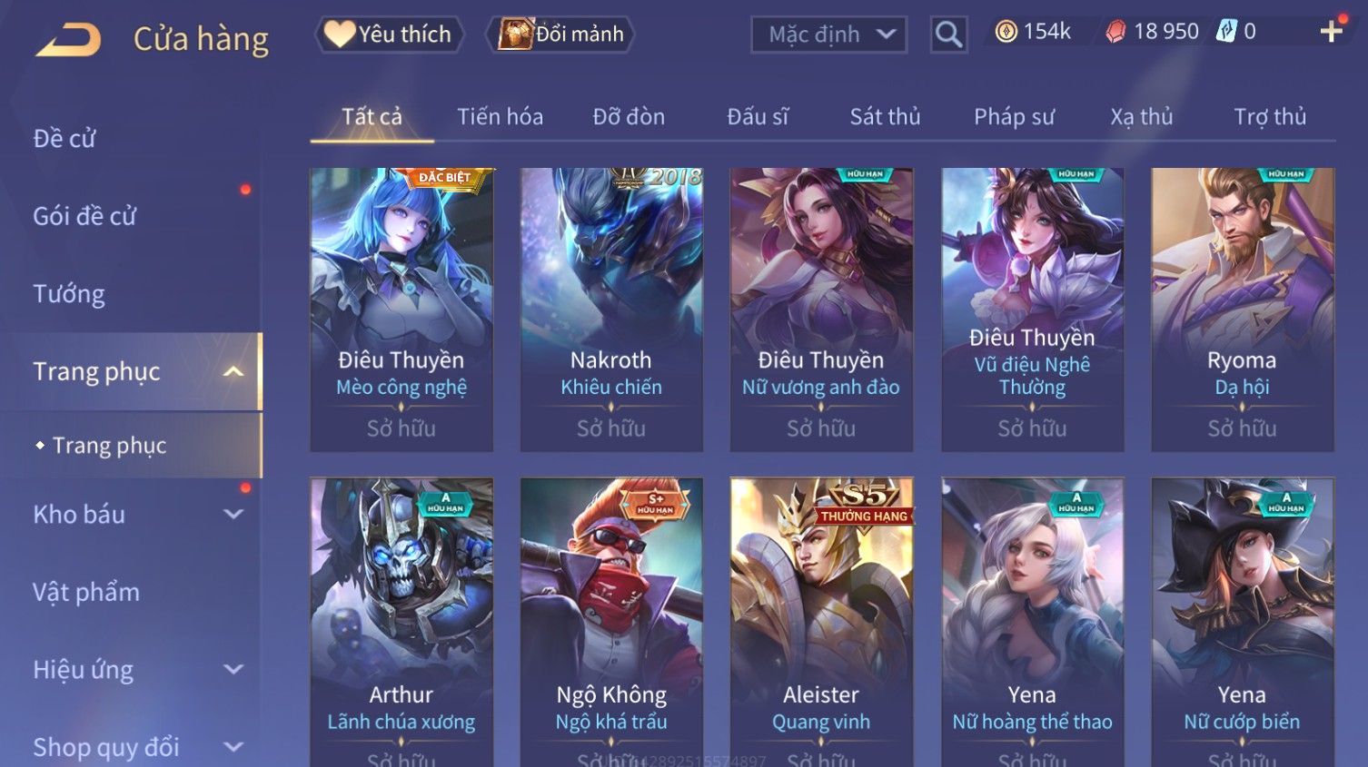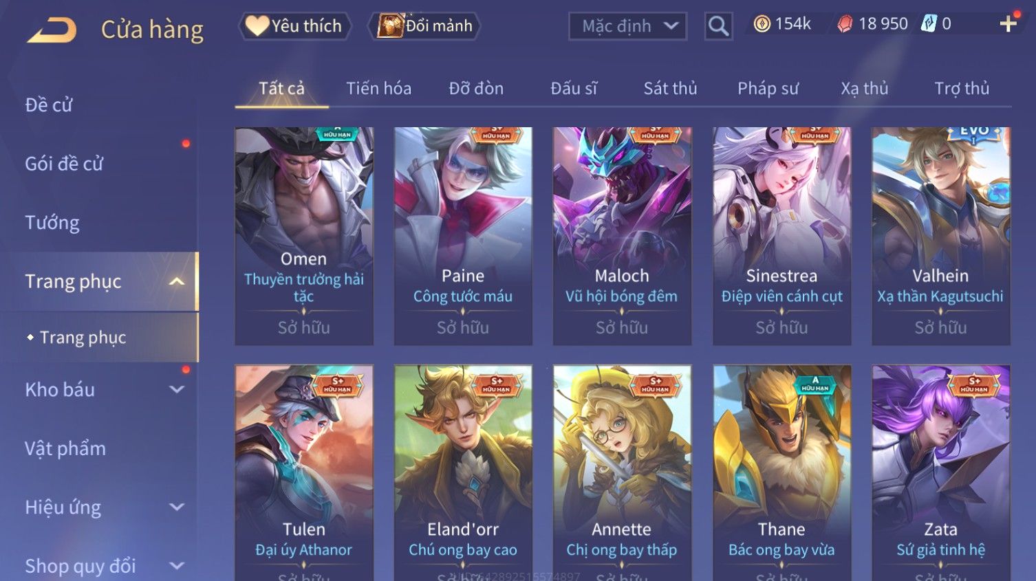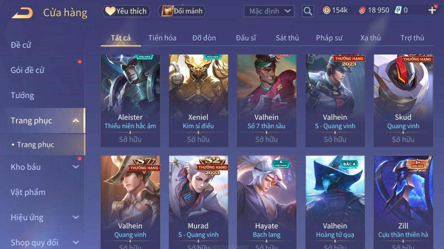 Nổi bật: Skin: Raz Chiến Thần Muay Thái×Yena WaVe×Elsu Sử Giả Tận Thế×Capheny Kimono×Richter Thần Kiếm Susanoo×Omen Đao Phủ Tận Thế×Liliana Nguyệt Mị Ly×Valhein Vũ Khí Tối Thượng×Omen Chiến Binh Trăng Khuyết×Zata Sứ Giả Tinh Hệ×Full Ngọc, Nhiều Skin Đẹp
