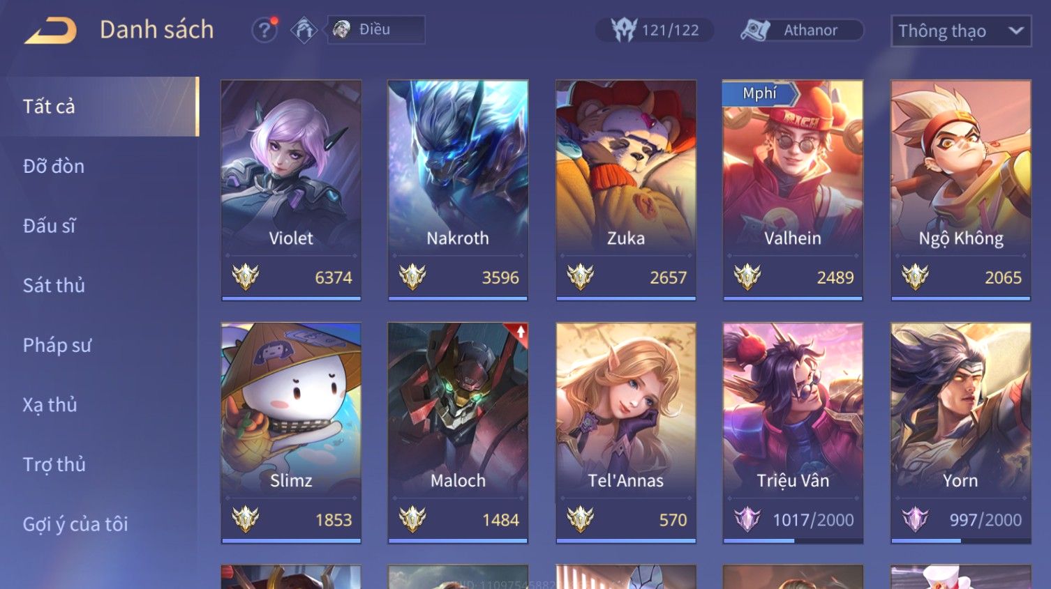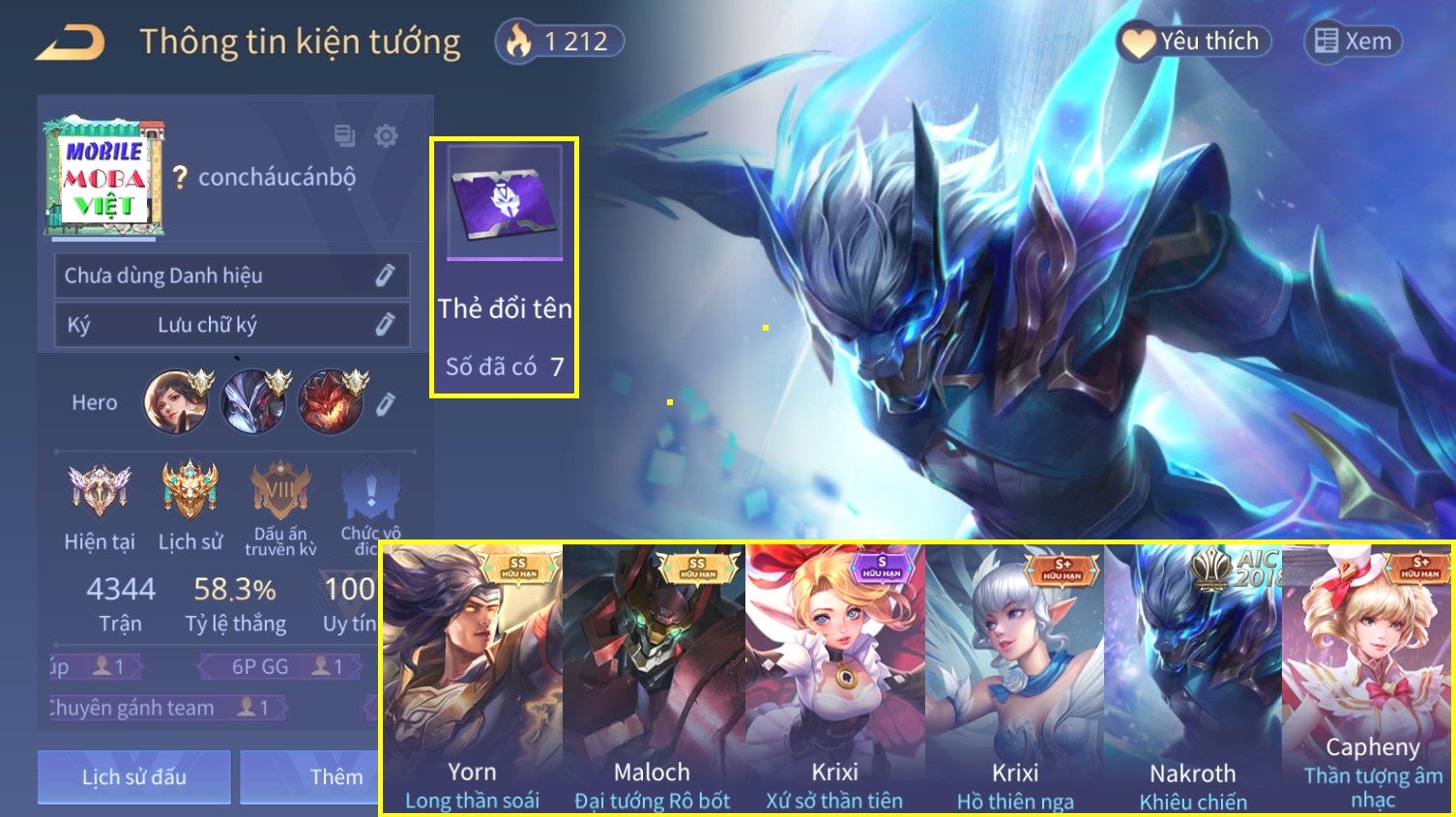 Nổi bật: Skin: Yorn Long Thần Soái×Maloch Đại Tướng Rô Bốt×Nakroth Khiêu Chiến×Krixi Xứ Sở Thần Tiên×Full Ngọc, Nhiều Skin Đẹp