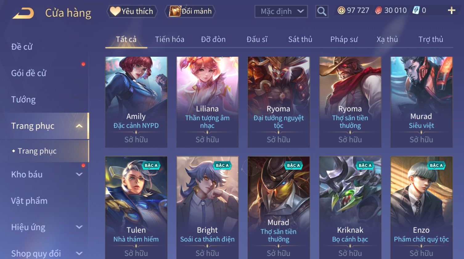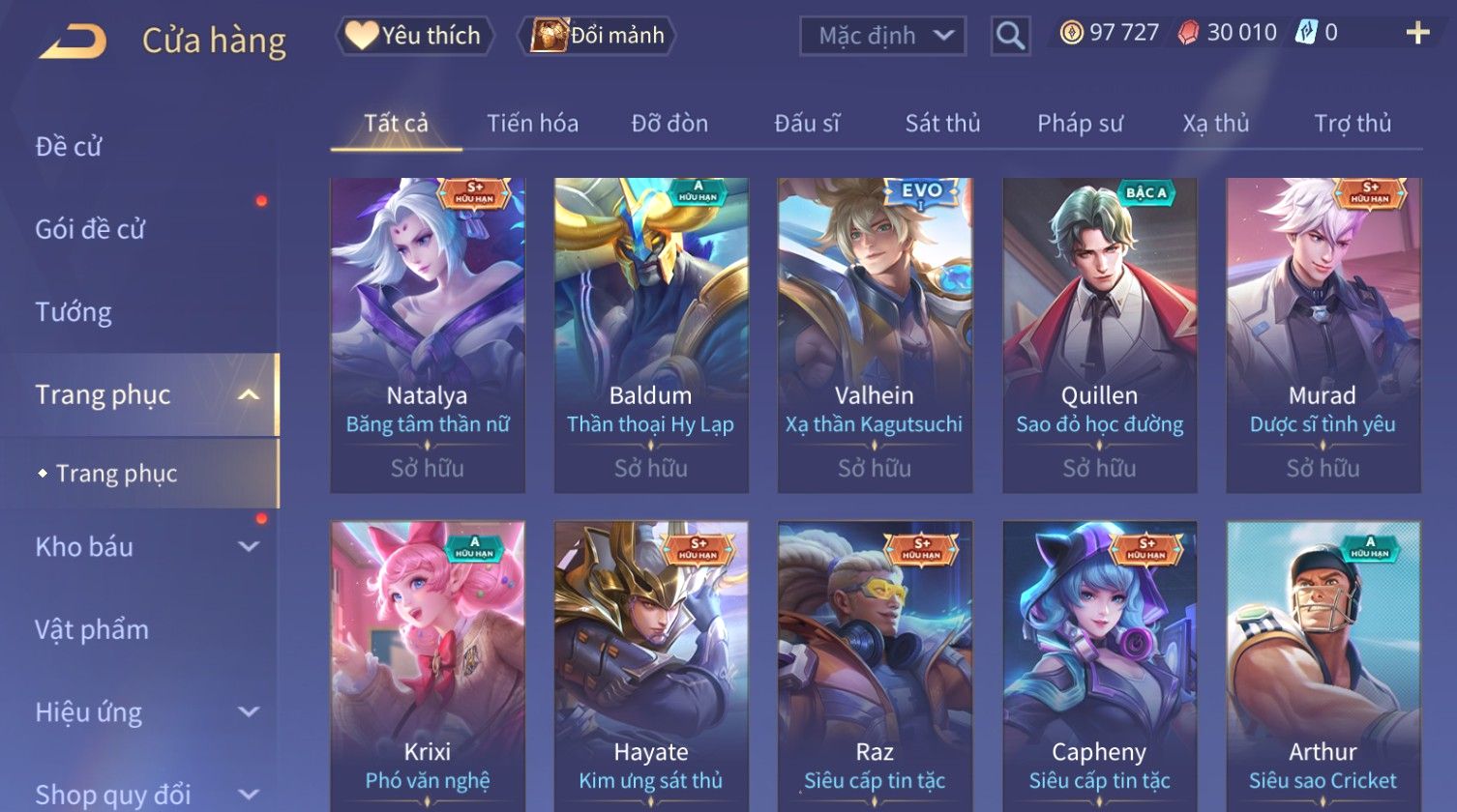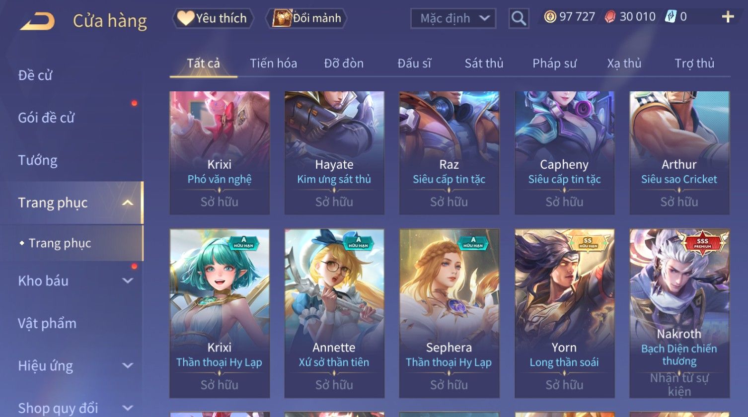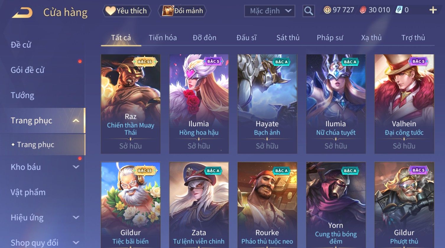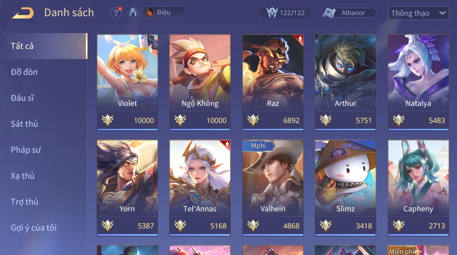 Nổi bật: Skin: Raz Chiến Thần Muay Thái×Ryoma Sumarai Huyền Thoại×Violet Tiệc Bãi Biển×Capheny Kimono×Ngộ Không Siêu Việt×Maloch Đại Tướng Rô Bốt×Yorn Long Thần Soái×Ngộ Không Nhóc Tì Bá Đạo×Murad Siêu Việt×Nakroth Siêu Việt×