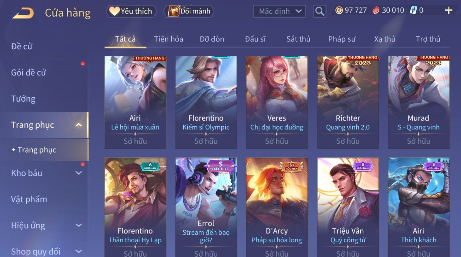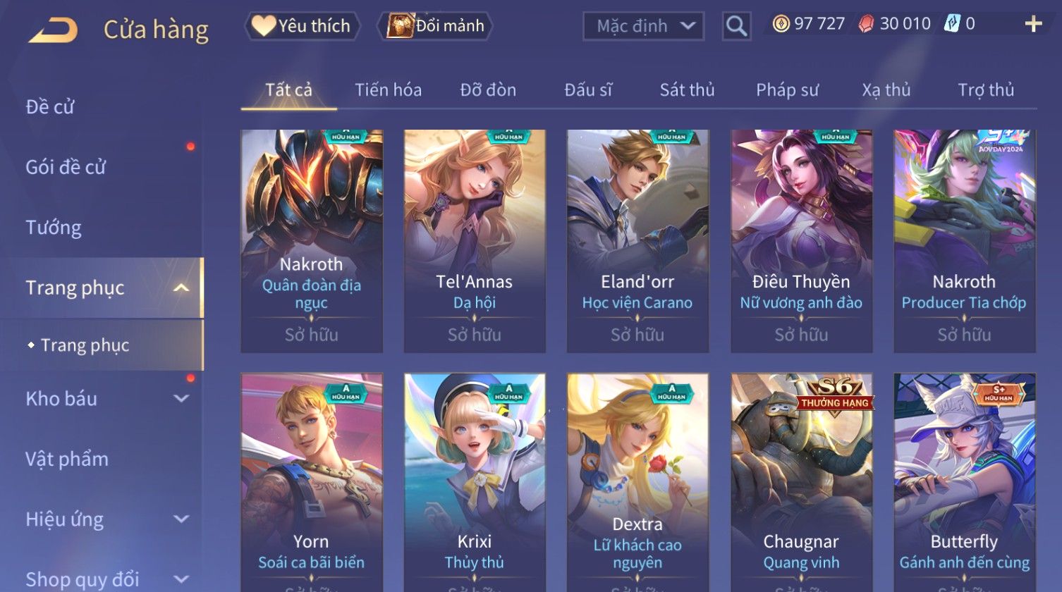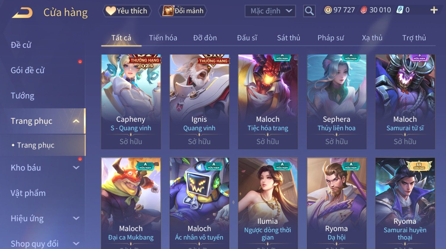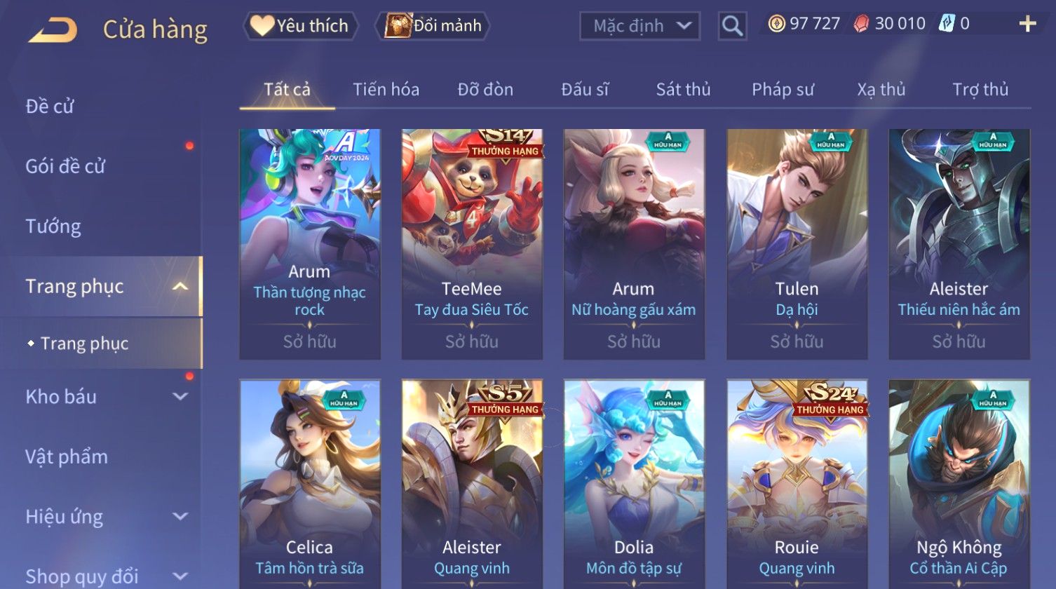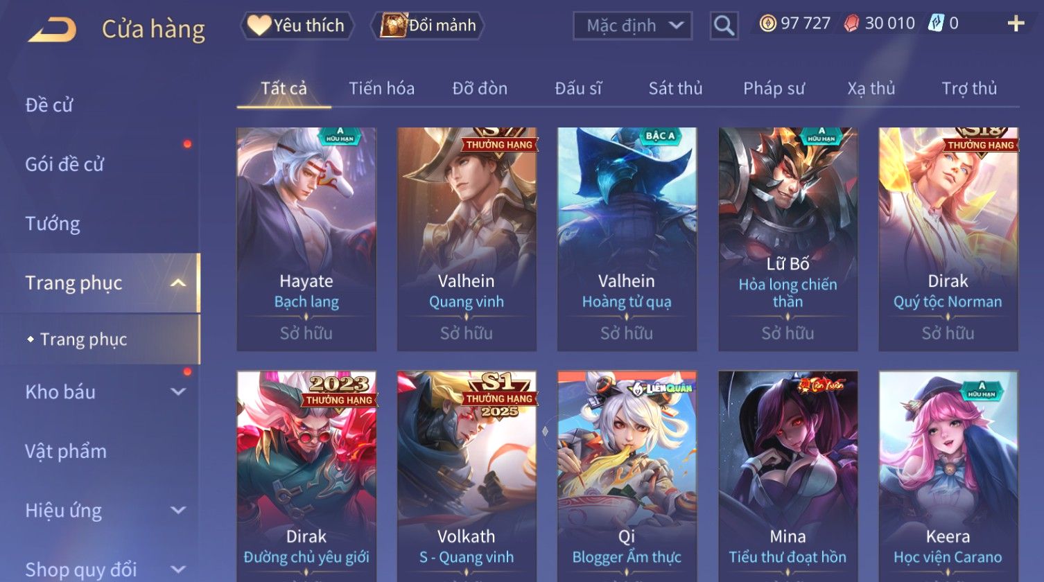 Nổi bật: Skin: Raz Chiến Thần Muay Thái×Ryoma Sumarai Huyền Thoại×Violet Tiệc Bãi Biển×Capheny Kimono×Ngộ Không Siêu Việt×Maloch Đại Tướng Rô Bốt×Yorn Long Thần Soái×Ngộ Không Nhóc Tì Bá Đạo×Murad Siêu Việt×Nakroth Siêu Việt×