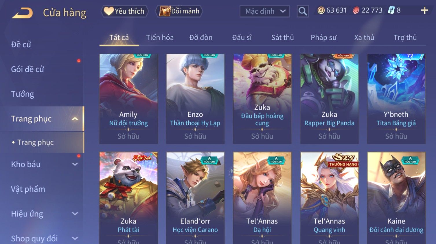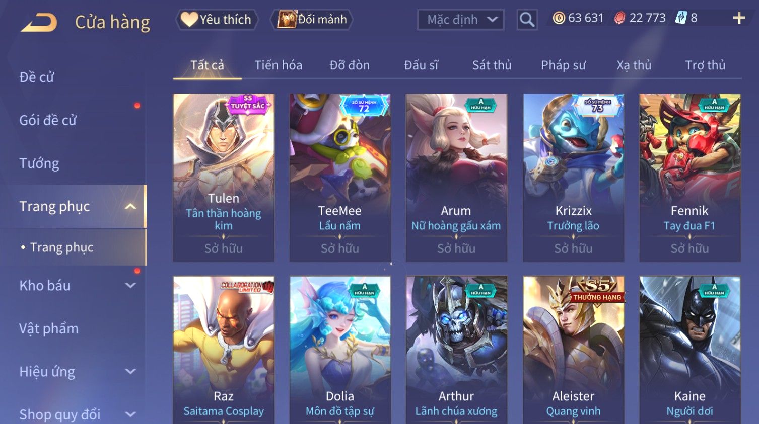 Nổi bật: Skin: Elsu Hỏa diệm chu tước×Raz Chiến Thần Muay Thái×Capheny Kimono×Tulen Tân Thần Thiên Hà×Yan Bích Hạc Phiên Vân×Full Ngọc, Nhiều Skin SS Đẹp