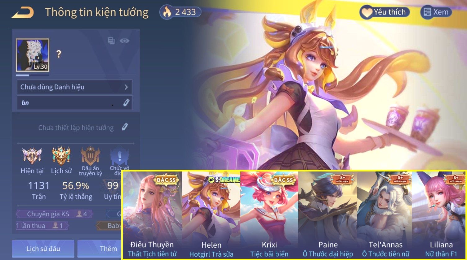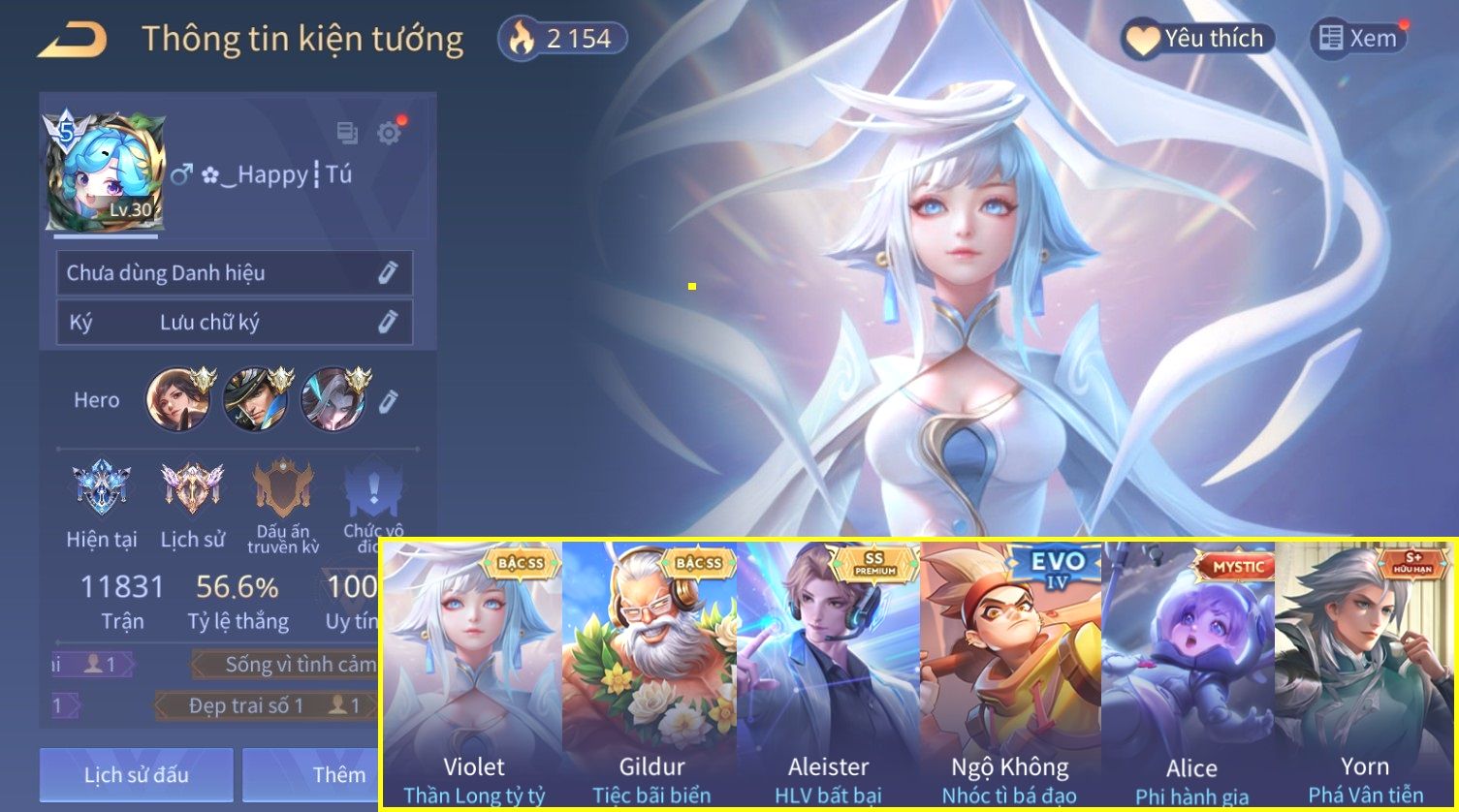 Nổi bật: Skin: Violet Thần Long Tỷ Tỷ×Gildur Tiệc Bãi Biển×Alice Phi Hành Gia×Ngộ Không Nhóc Tì Bá Đạo×Aleister HLV Bất Bại, Ngộ Không Bậc 4×