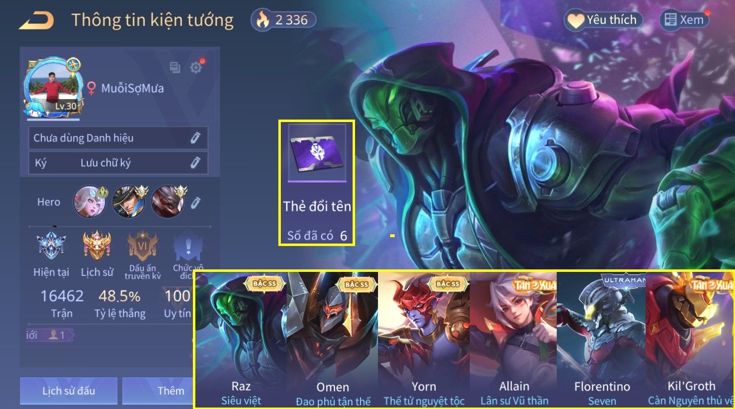 Nổi bật: Skin: Raz Siêu Việt×Omen Đao Phủ Tận Thế×Yorn Thế Tử Nguyệt Tộc×Florentino Seven×