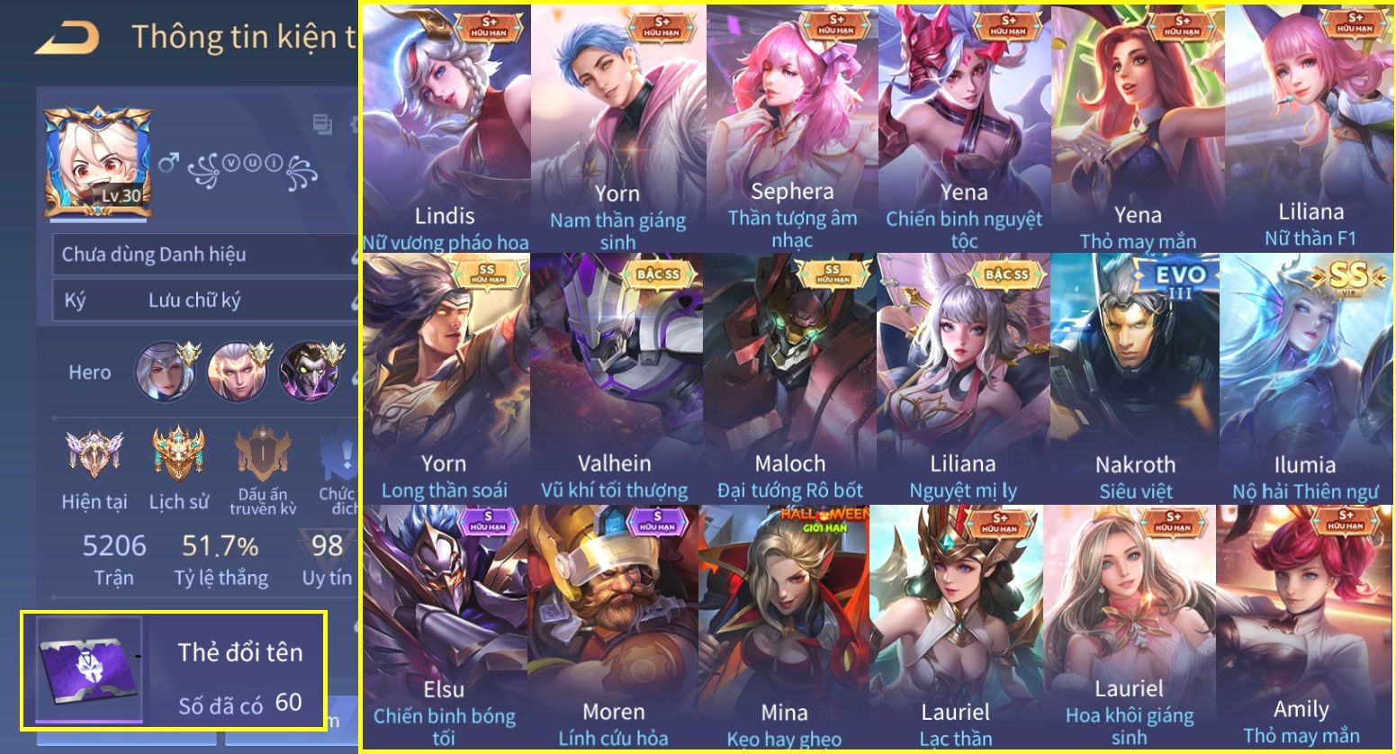 Nổi bật: Full Ngọc, Nhiều Skin SS Đẹp