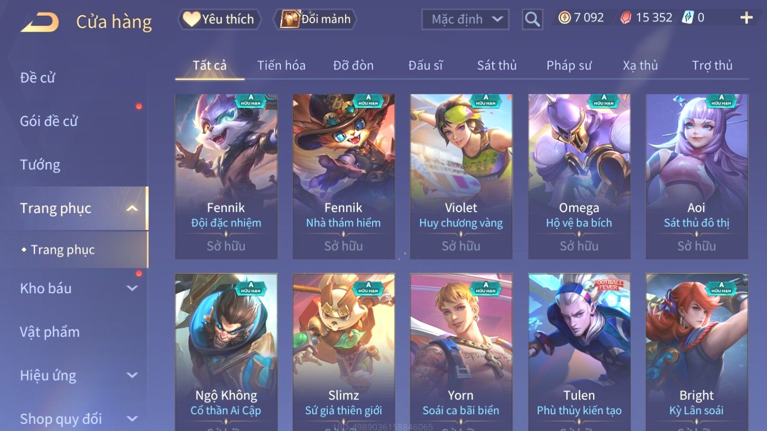 Trạng Thái: Nick có SĐT or Gmail Của Shop( Có Thể Thay Đổi)