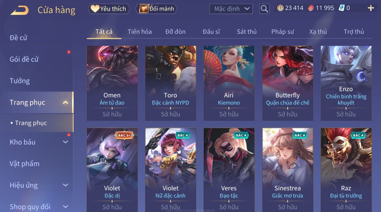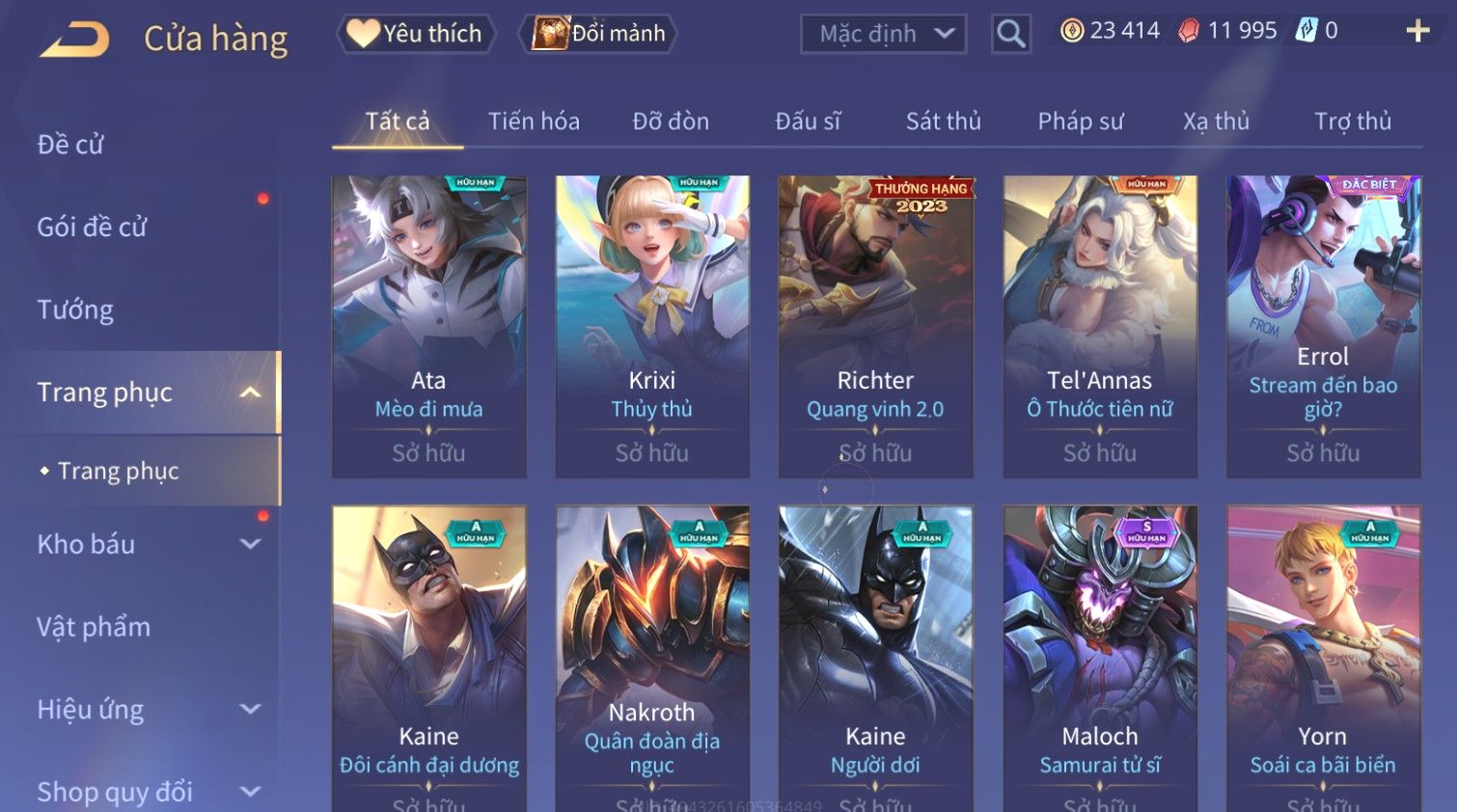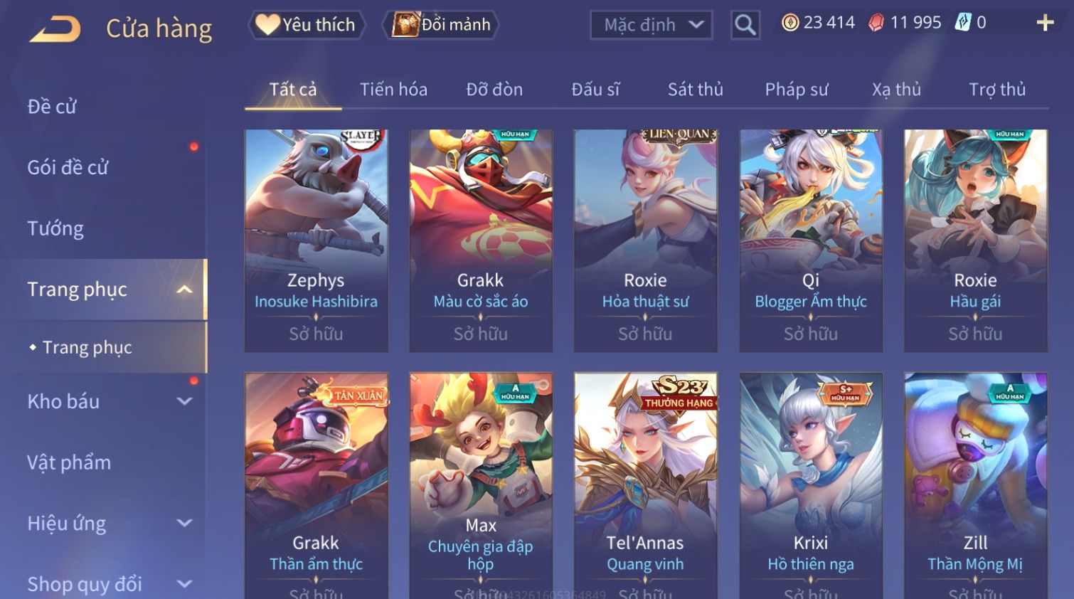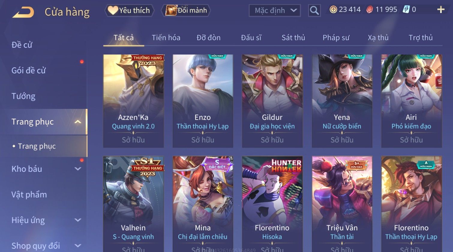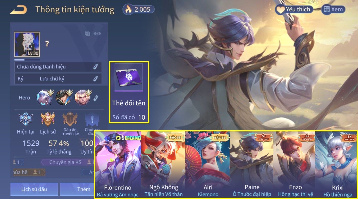 Nổi bật: Skin: Florentino Bá Vương Âm Nhạc×Ngộ Không Tân Niên Võ Thần×Airi Kiemono×Paine Ô Thước Đại Hiệp×Tel'Annas Ô Thước Tiên Nữ×Enzo Hồng Hạc Thị Vệ×