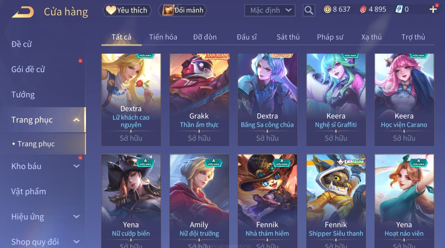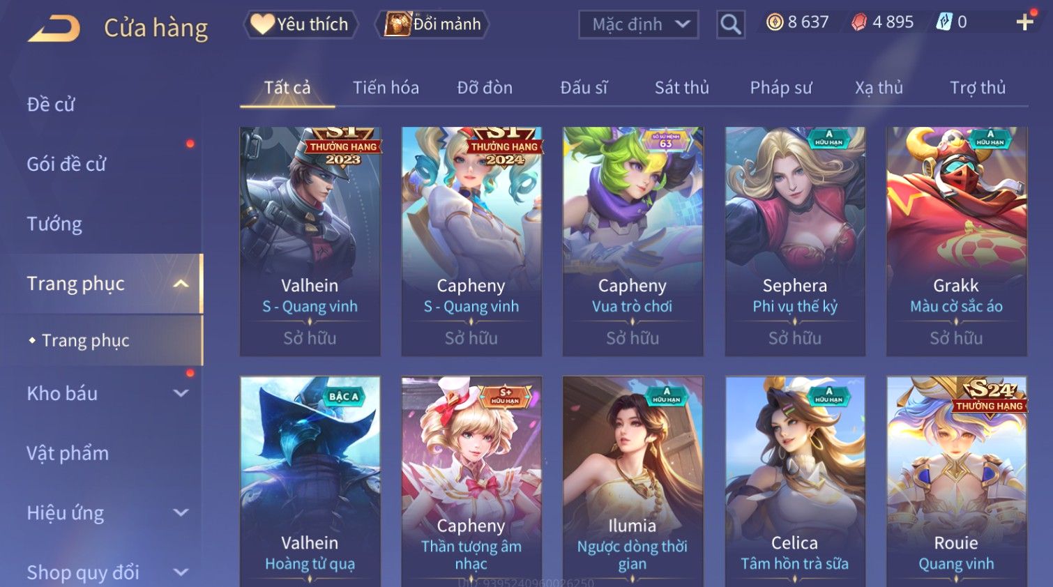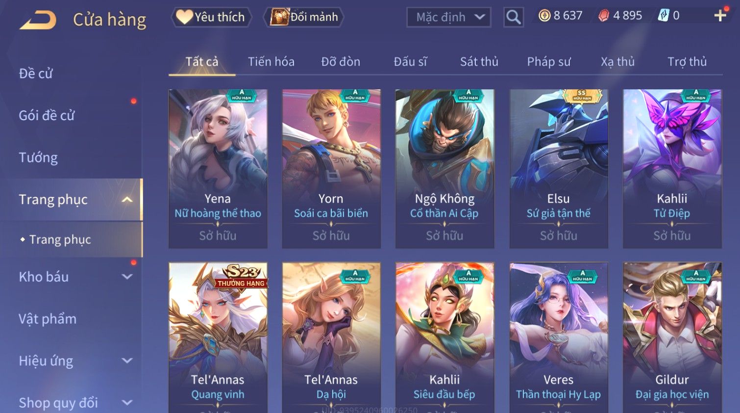 Nổi bật: Skin: Capheny Kimono×Elsu Sử Giả Tận Thế×Dextra Băng Sa Công Chúa×Veres Phù Thủy Trang Điểm×