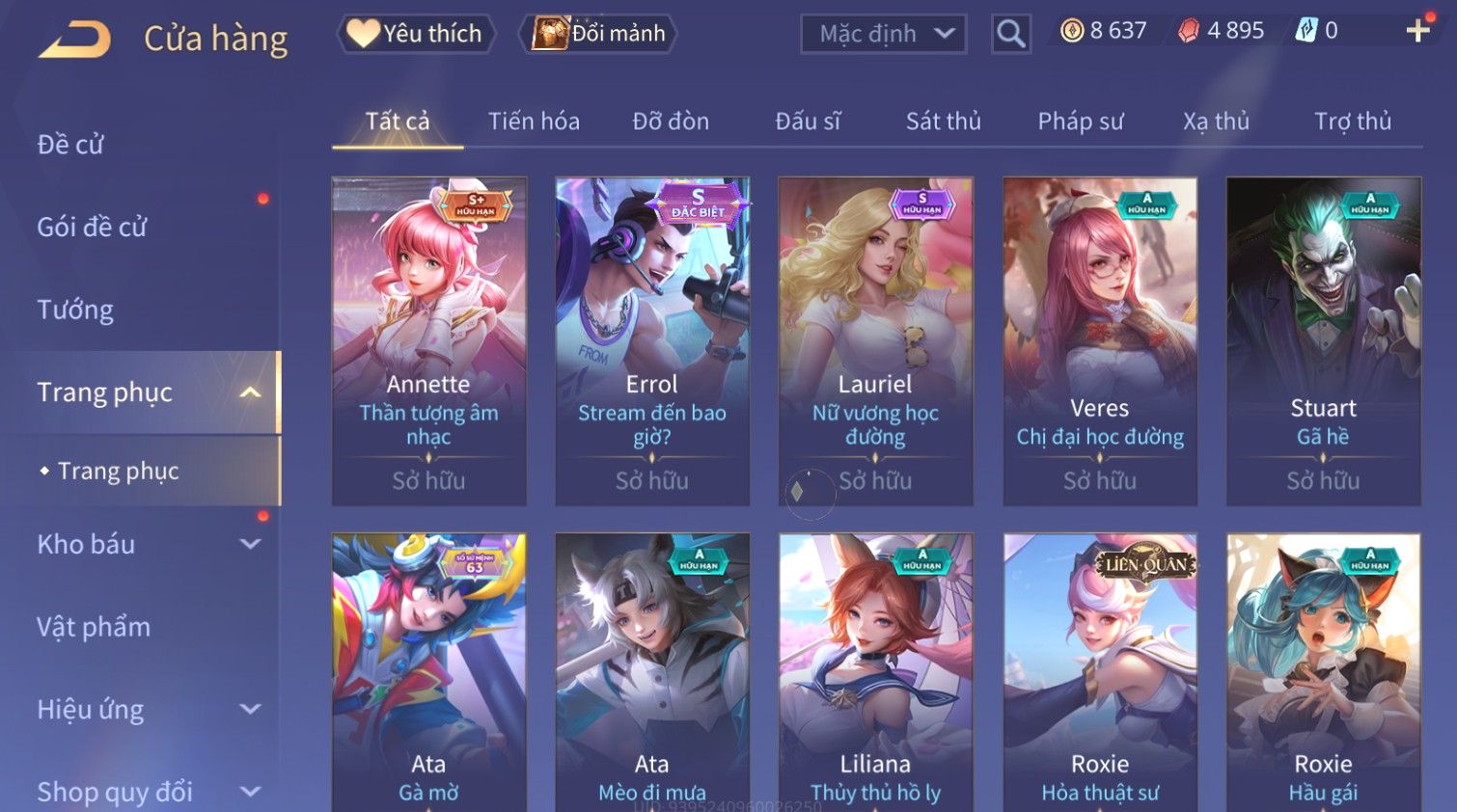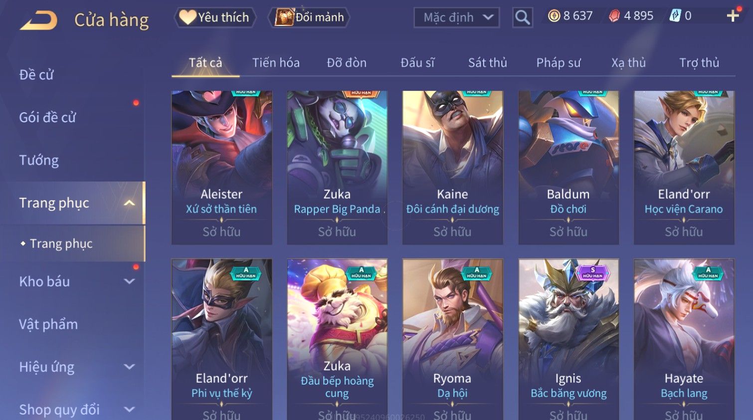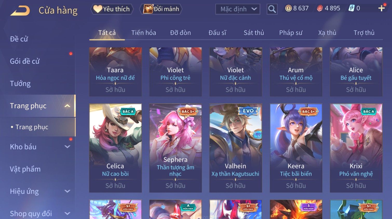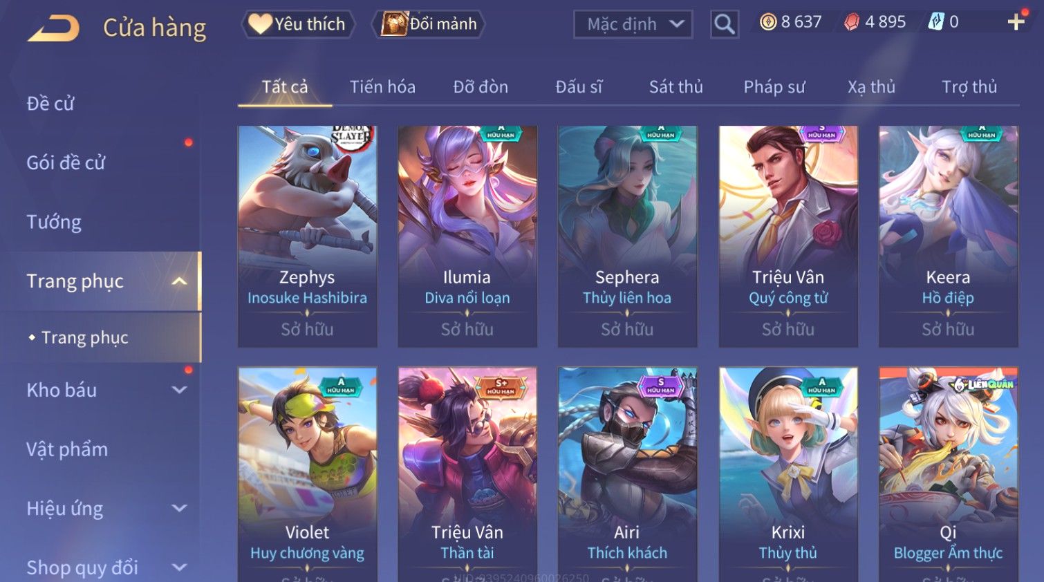 Nổi bật: Skin: Capheny Kimono×Elsu Sử Giả Tận Thế×Dextra Băng Sa Công Chúa×Veres Phù Thủy Trang Điểm×