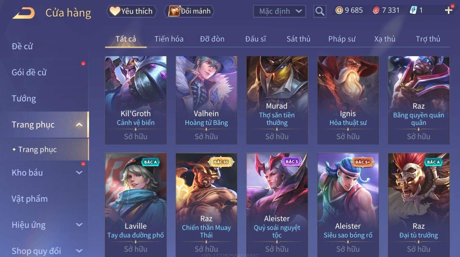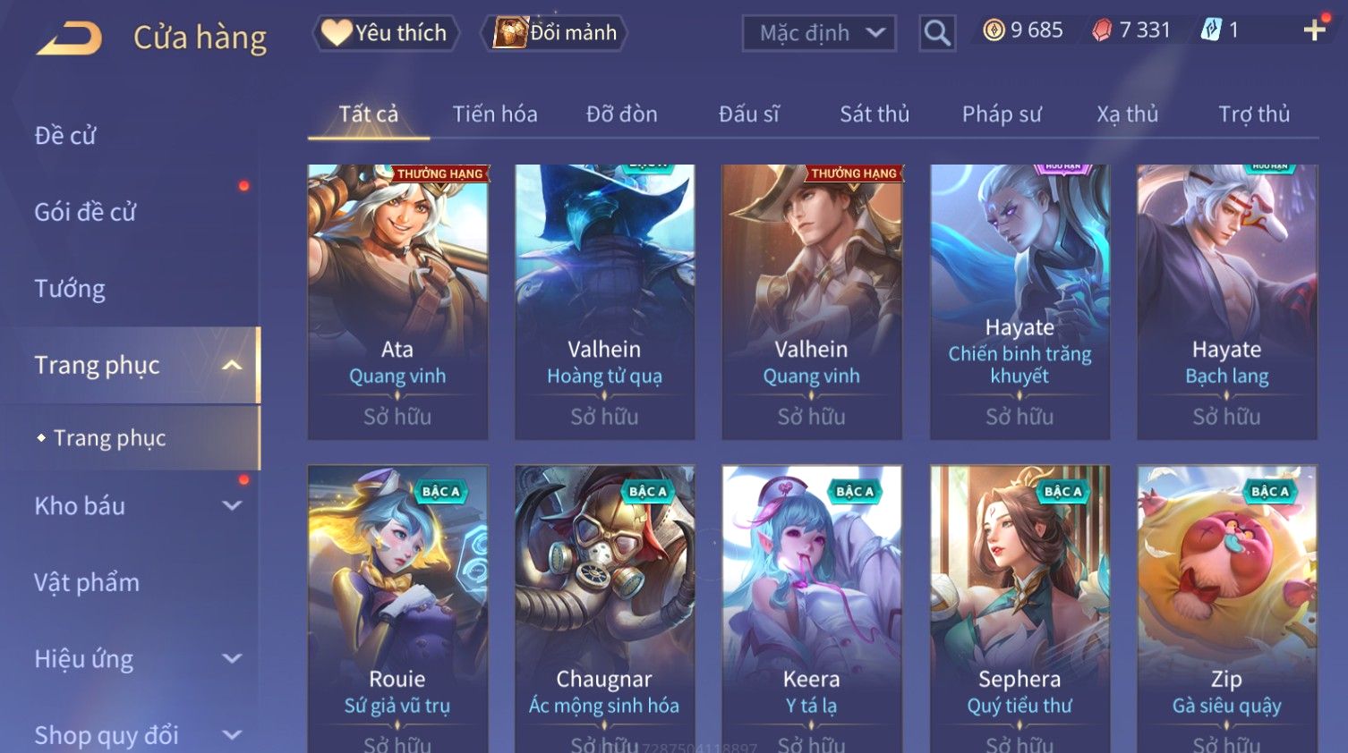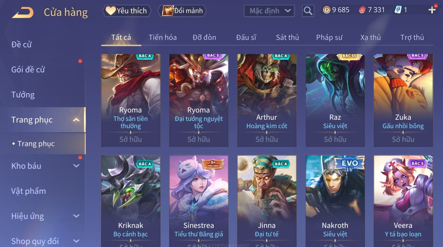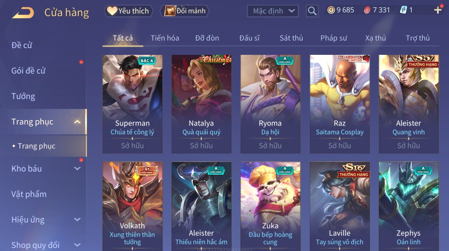 Nổi bật: Skin: Raz Chiến Thần Muay Thái×Nakroth Siêu Việt×Ngộ Không Nhóc Tì Bá Đạo×Elsu Sử Giả Tận Thế×Natalya Nghiệp Hỏa Yêu Hậu×Omen Đao Phủ Tận Thế×Raz Siêu Việt×