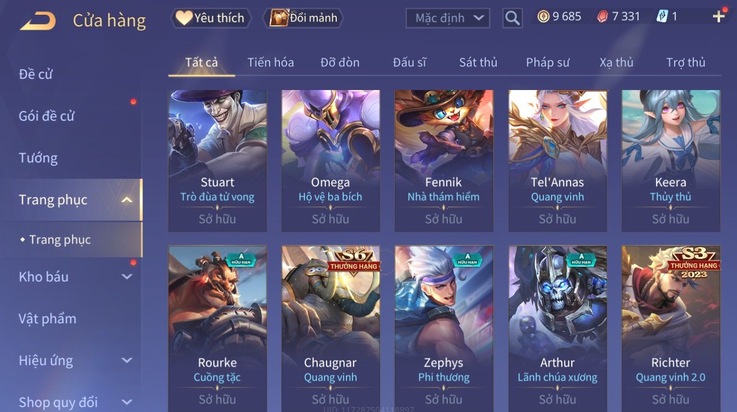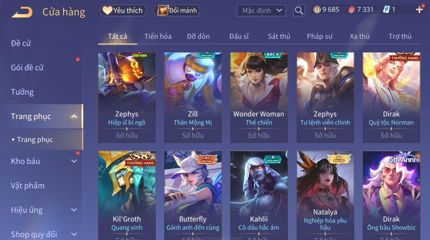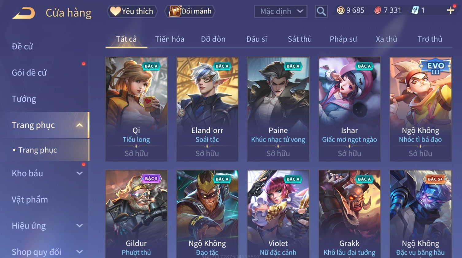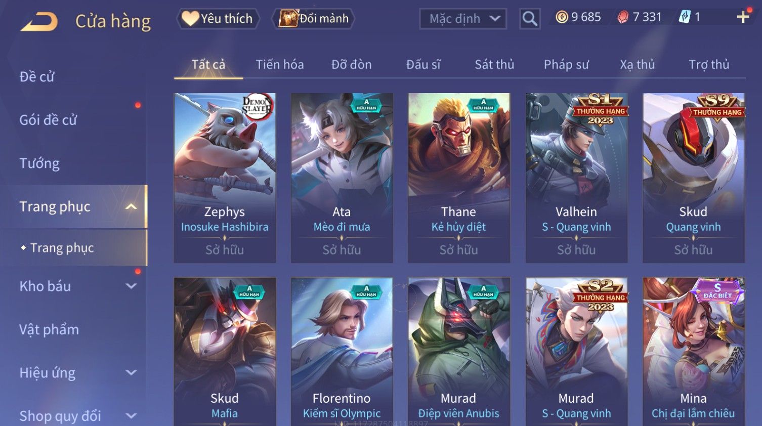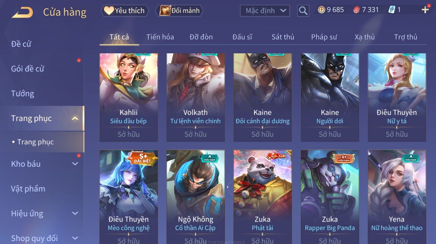 Nổi bật: Skin: Raz Chiến Thần Muay Thái×Nakroth Siêu Việt×Ngộ Không Nhóc Tì Bá Đạo×Elsu Sử Giả Tận Thế×Natalya Nghiệp Hỏa Yêu Hậu×Omen Đao Phủ Tận Thế×Raz Siêu Việt×