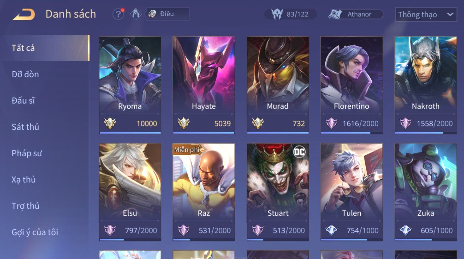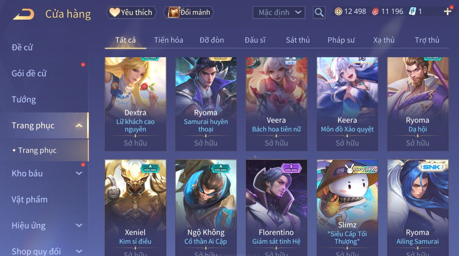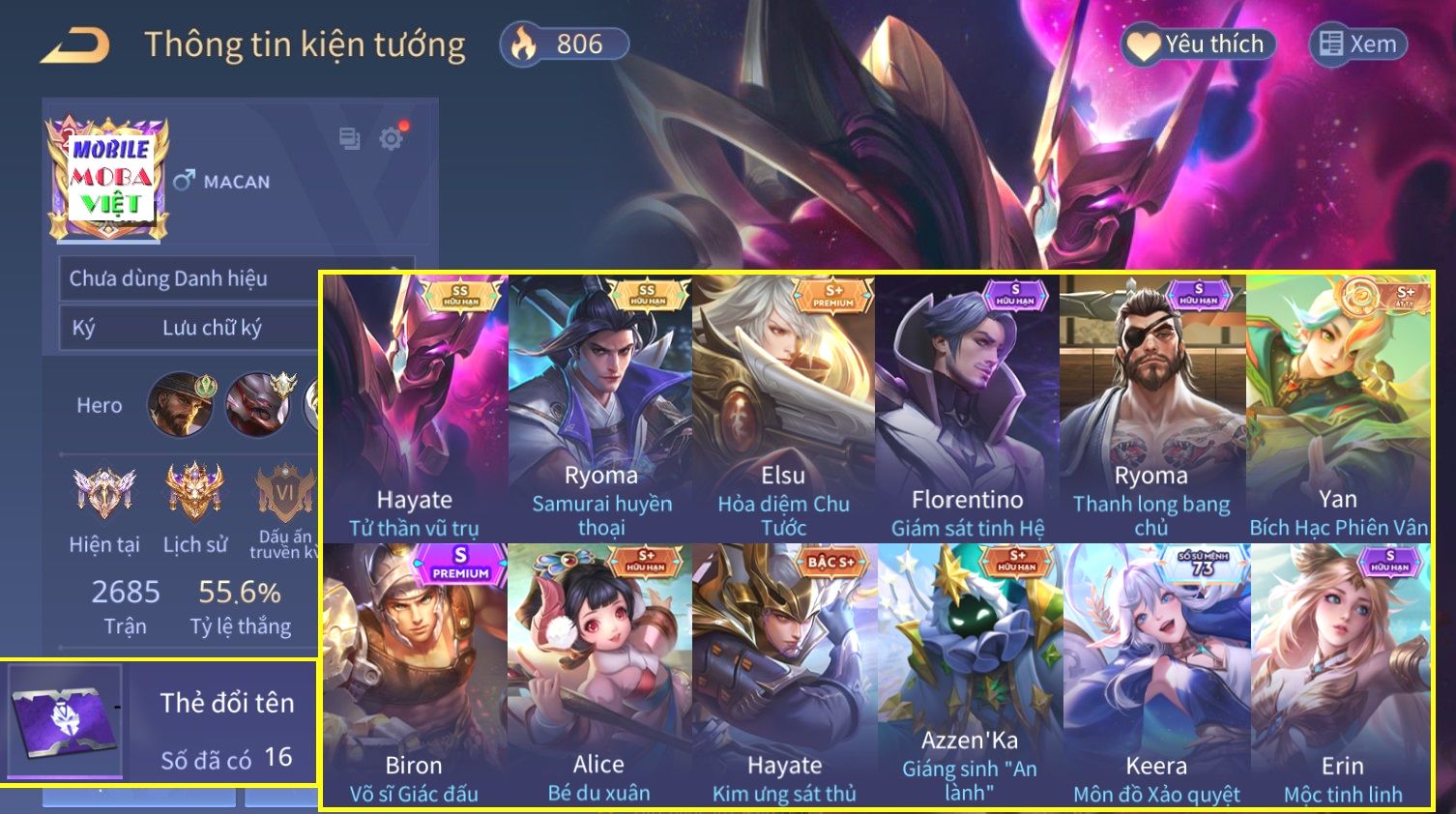 Nổi bật: Skin: Hayate Tử Thần Vũ Trụ×Ryoma Sumarai Huyền Thoại×Elsu Hỏa diệm chu tước×Florentino Giám Sát Tinh Hệ×Ryoma Thanh Long Bang Chủ×