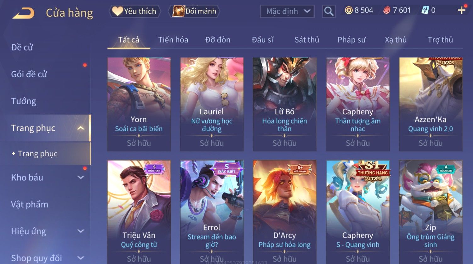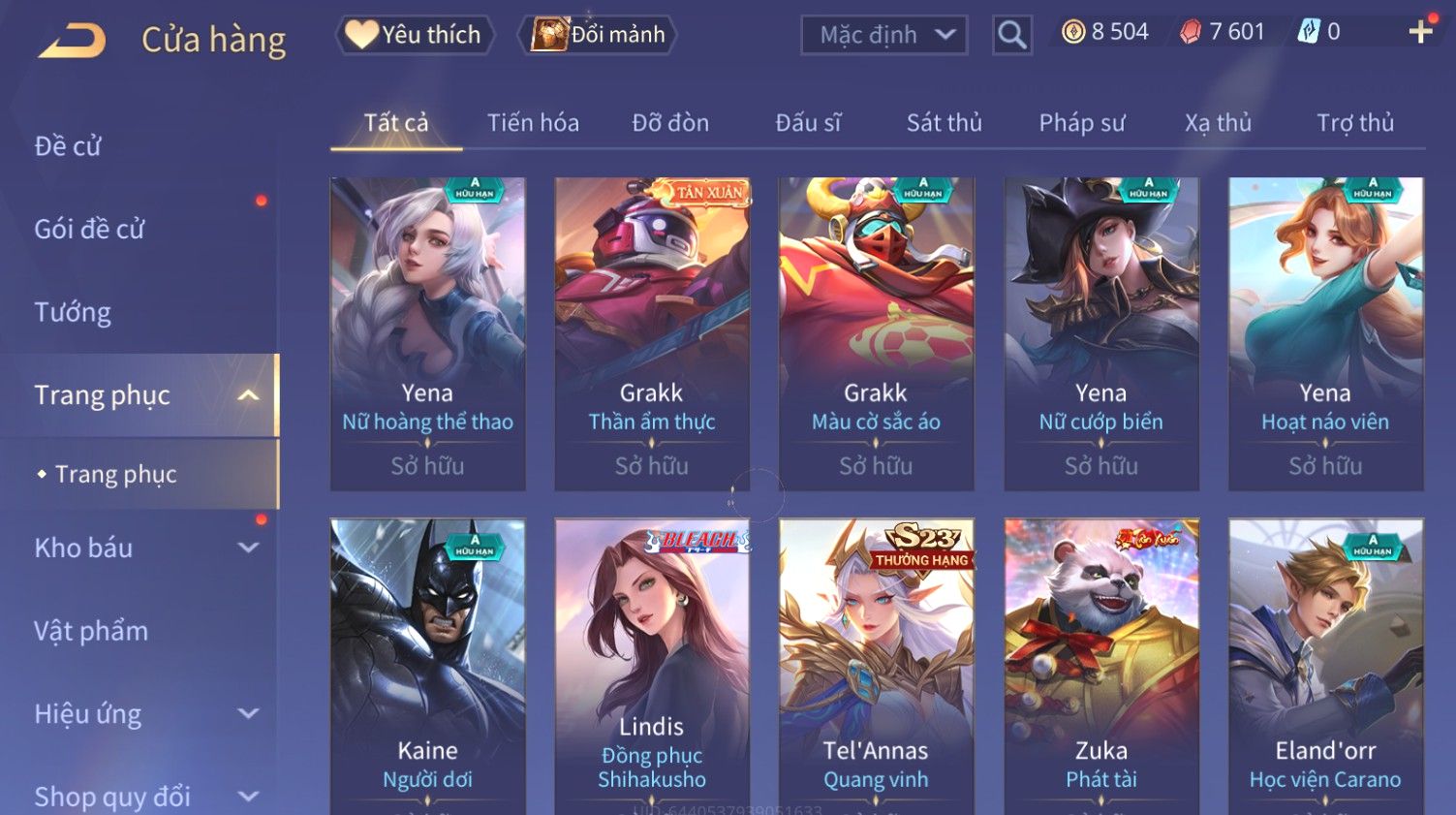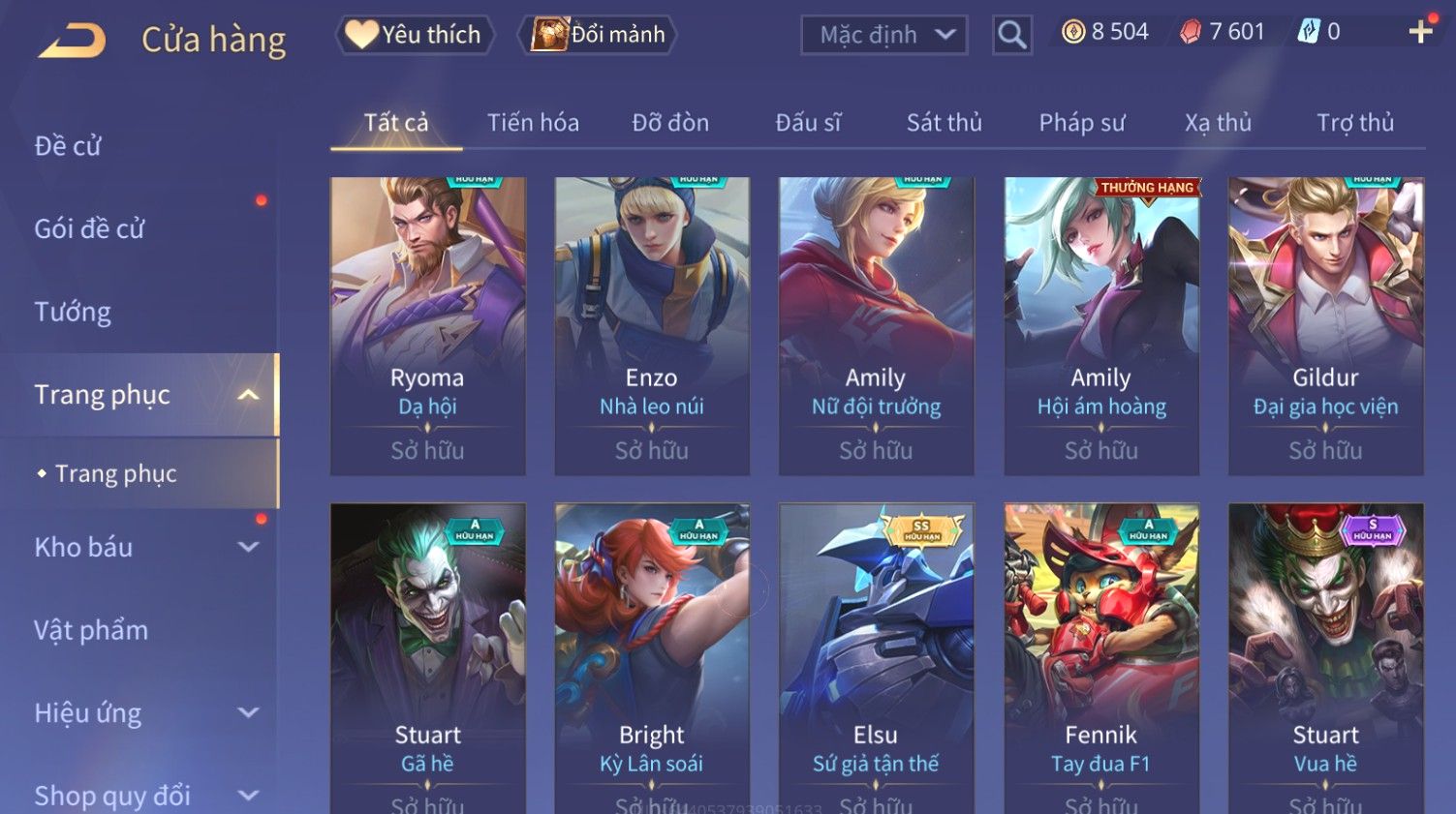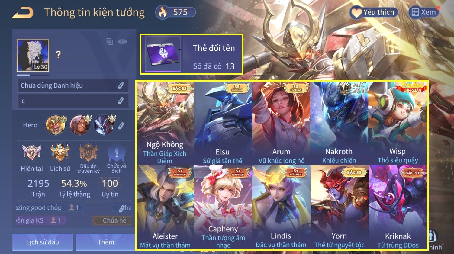 Nổi bật: Skin: Ngộ Không Thần Giáp Xích Diễm×Elsu Sử Giả Tận Thế×Arum Vũ Khúc Long Hổ×Nakroth Khiêu Chiến×Wisp Thỏ Siêu Quậy×