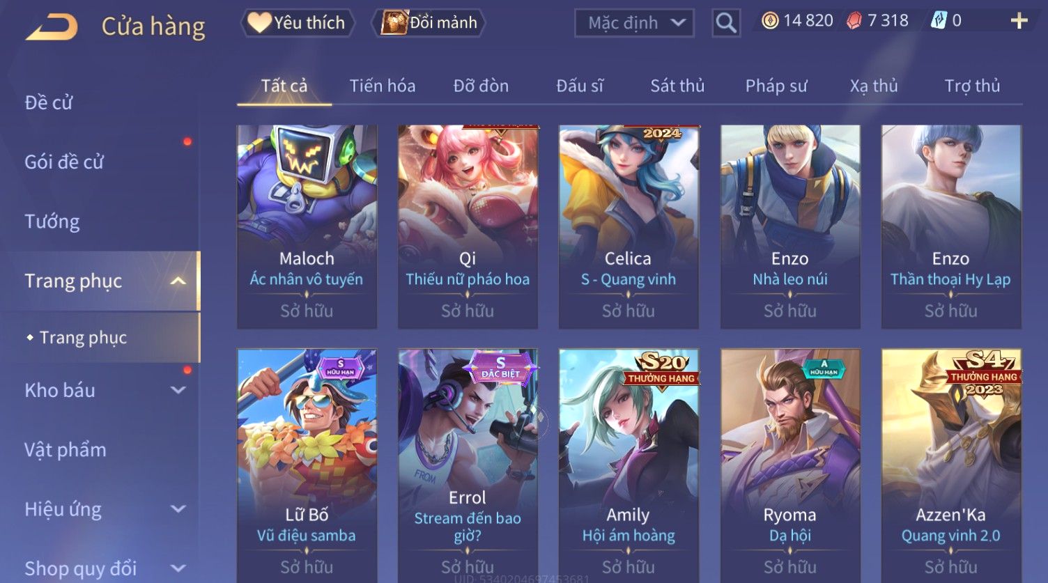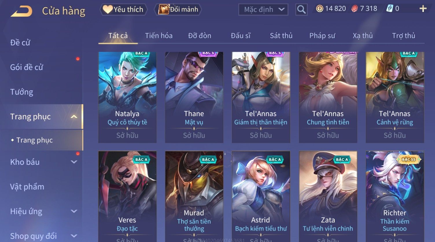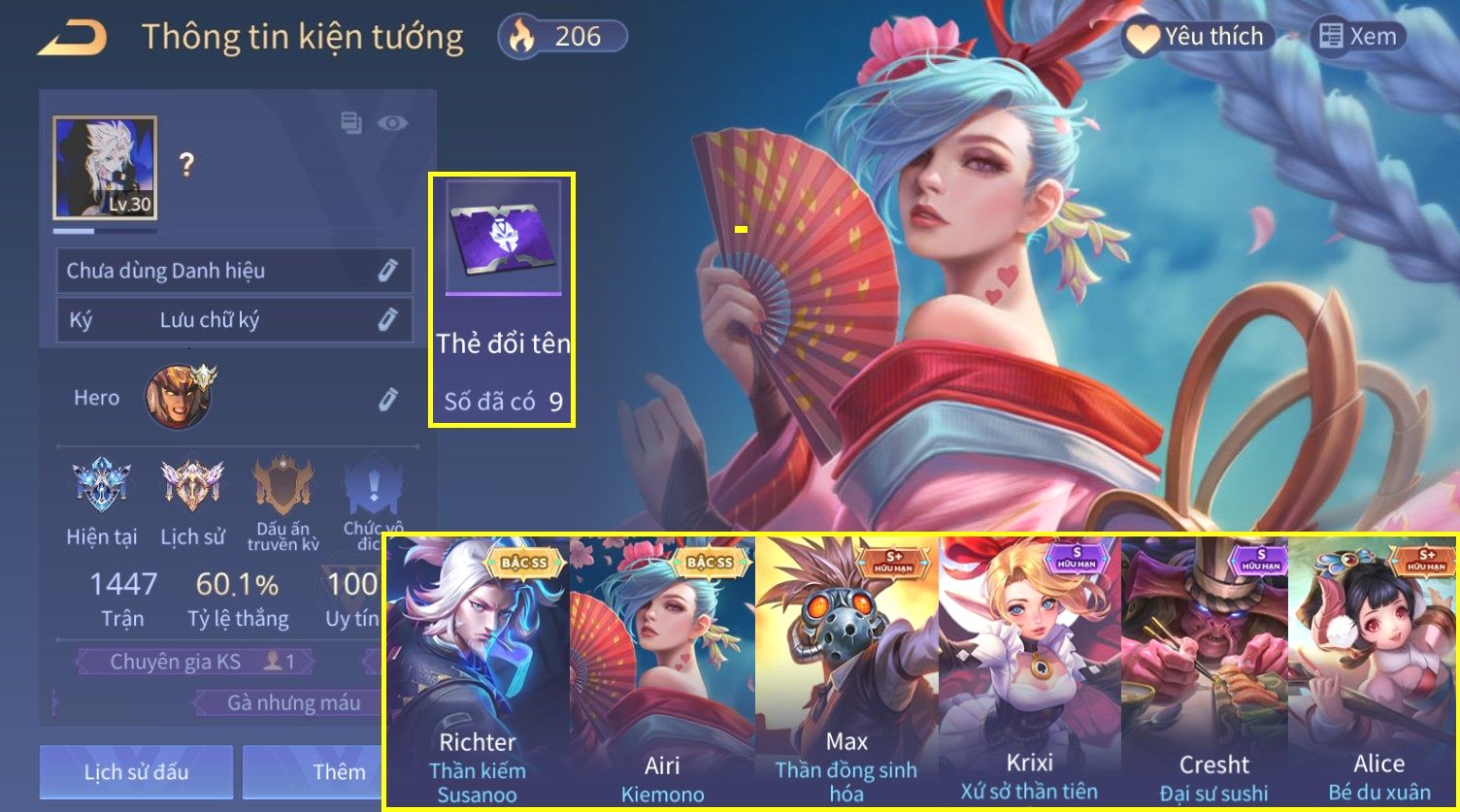 Nổi bật: Skin: Richter Thần Kiếm Susanoo×Airi Kiemono×Full Ngọc, Nhiều Skin Đẹp