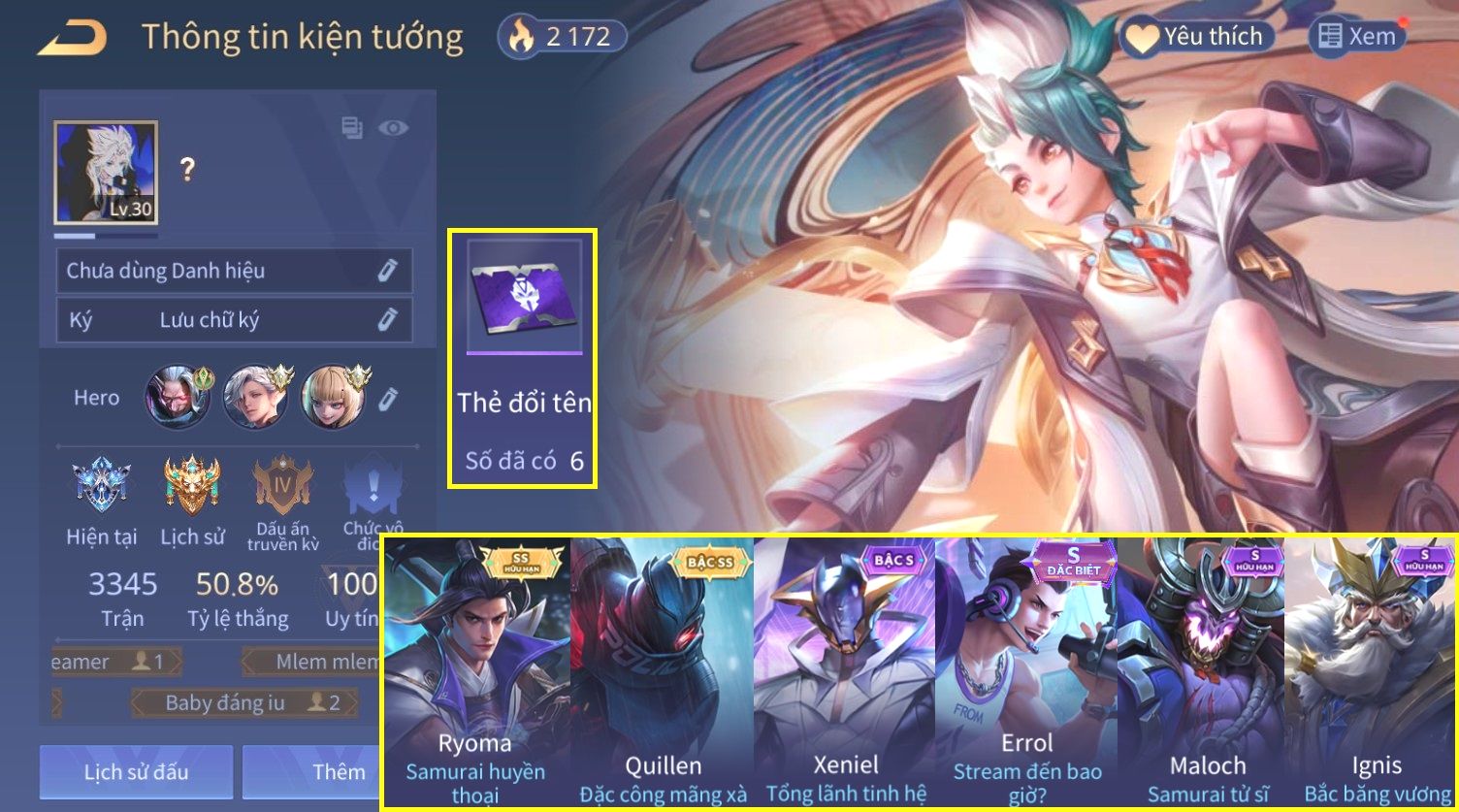 Nổi bật: Skin: Ryoma Sumarai Huyền Thoại×Quillen Đặc Công Mãng Xà×Nhiều Skin Đẹp Gần Ful Ngọc