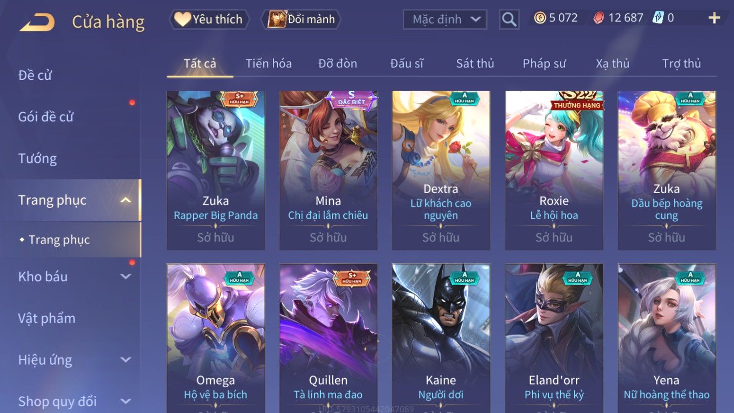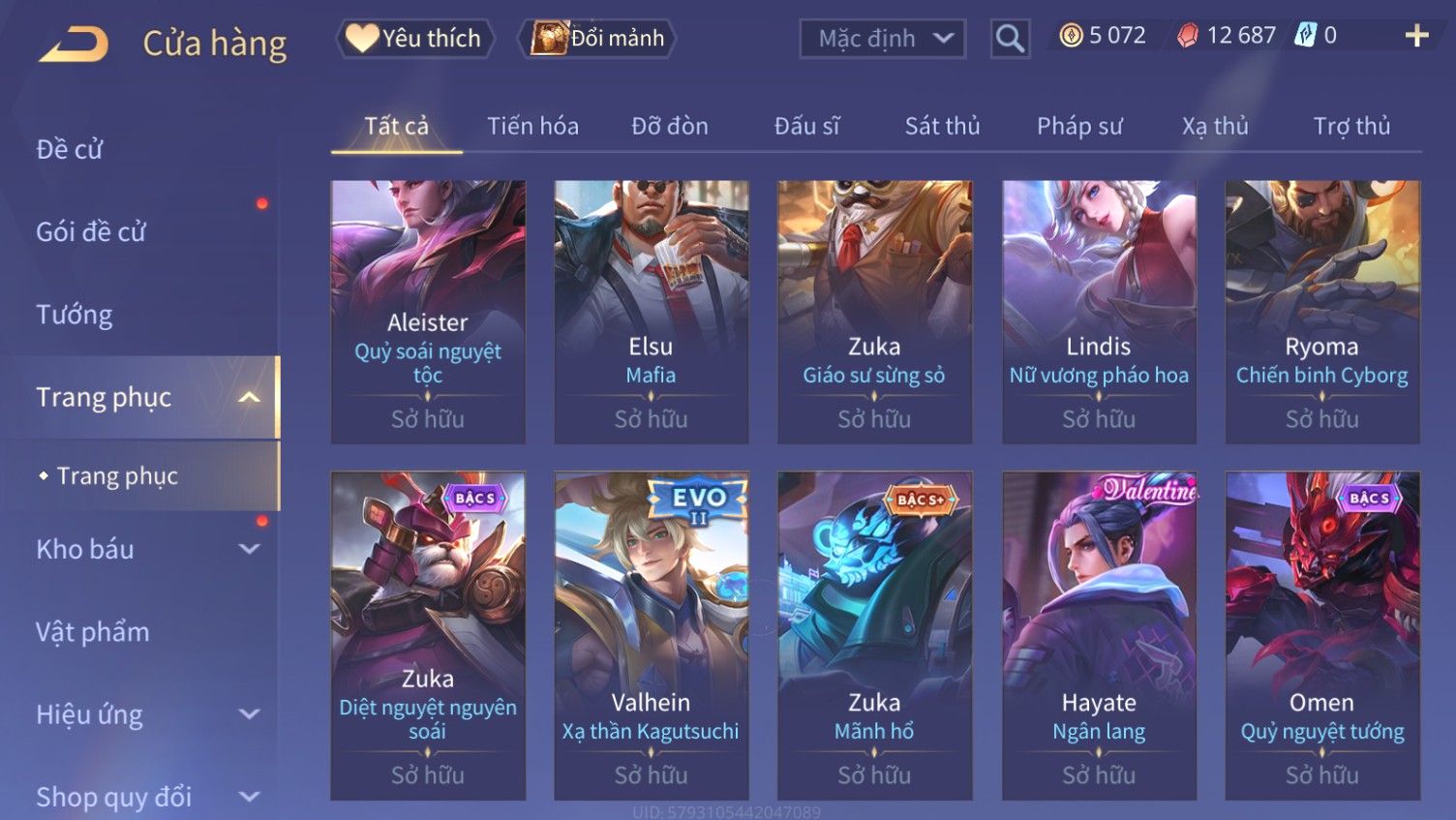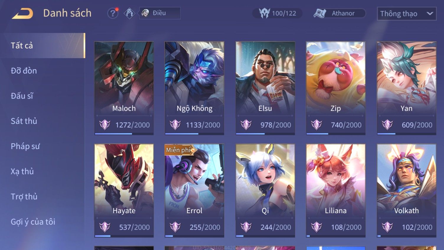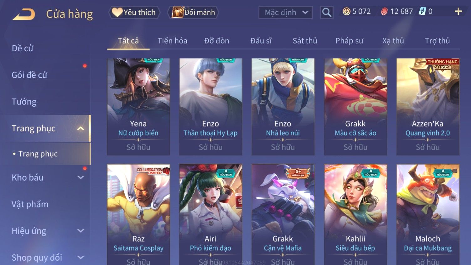Nổi bật: Skin: Raz Chiến Thần Muay Thái×Quillen Đặc Công Mãng Xà×Maloch Đại Tướng Rô Bốt×Valhein Đệ Nhất Thần Thám×Omen Đao Phủ Tận Thế×Yorn Long Thần Soái×Tulen Tiêu Dao Vũ Thần×Ngộ Không Siêu Việt×Florentino Bá Vương Âm Nhạc×Full Ngọc, Nhiều Skin SS Đẹp