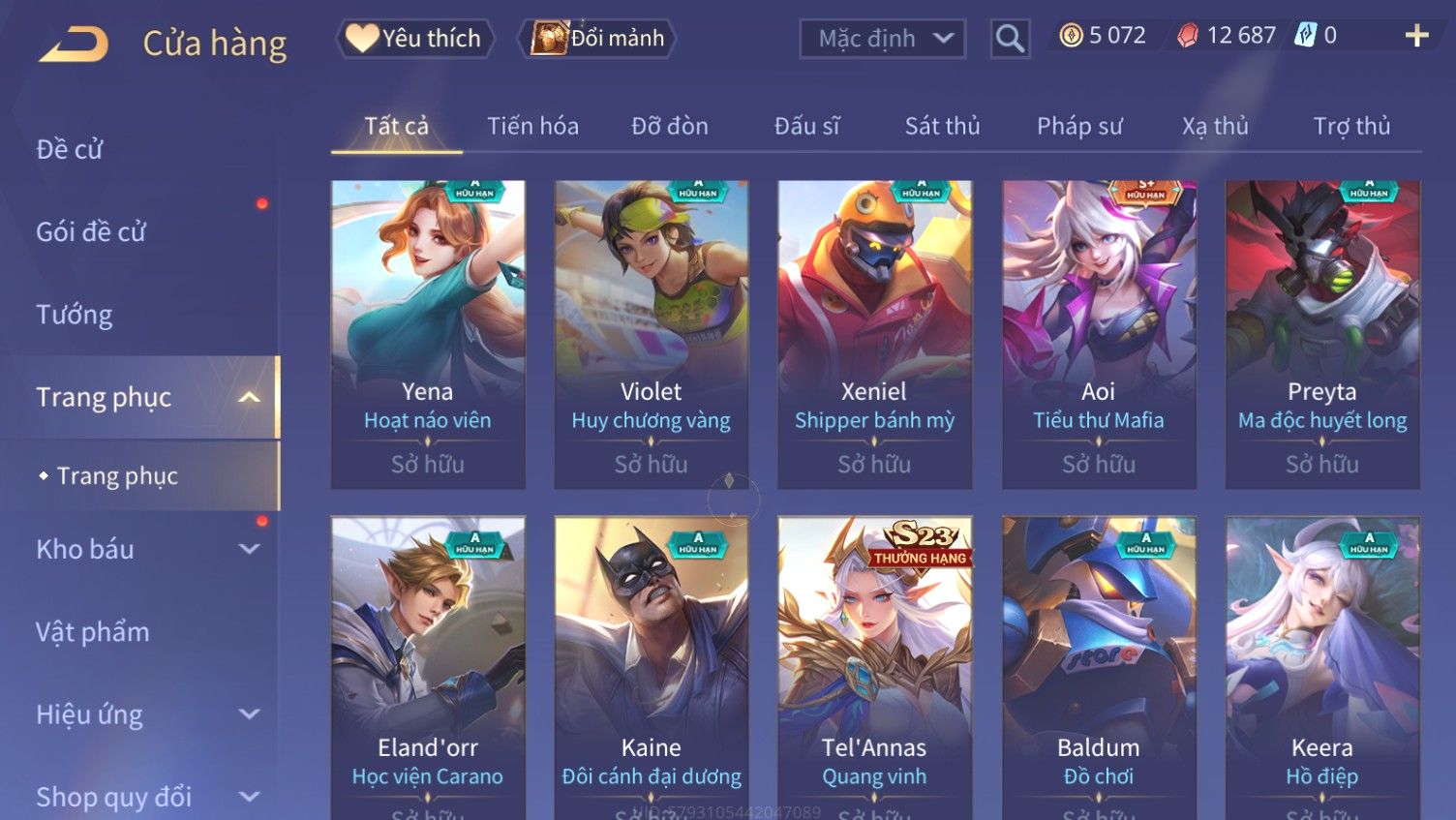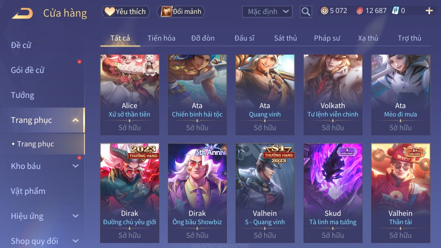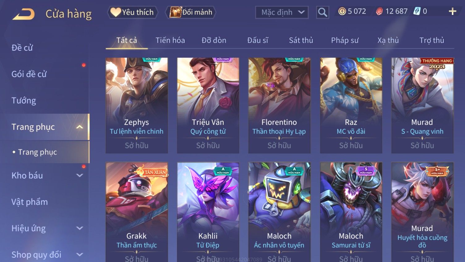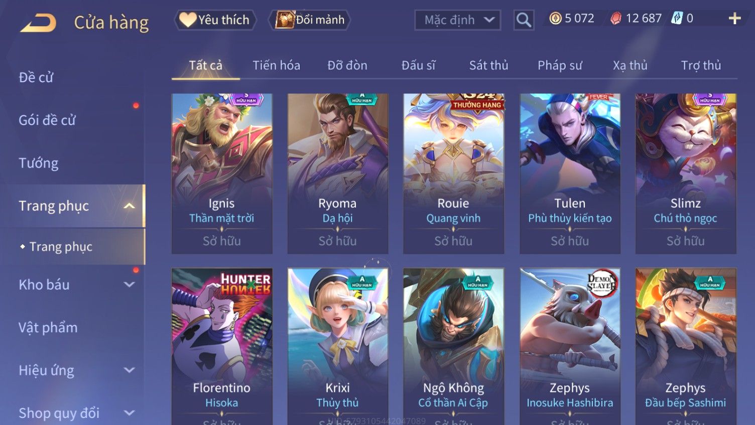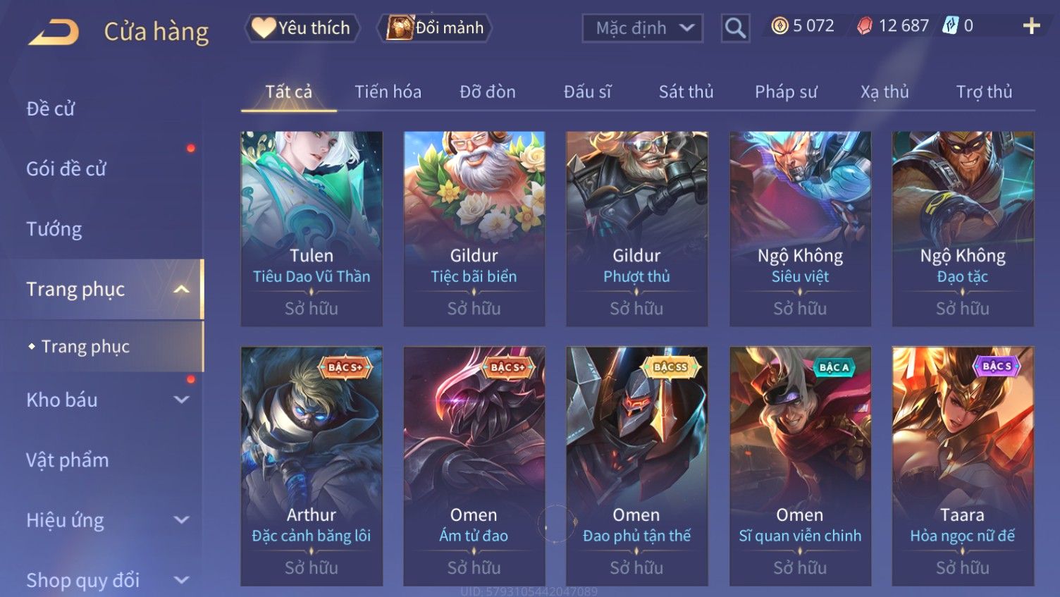 Nổi bật: Skin: Raz Chiến Thần Muay Thái×Quillen Đặc Công Mãng Xà×Maloch Đại Tướng Rô Bốt×Valhein Đệ Nhất Thần Thám×Omen Đao Phủ Tận Thế×Yorn Long Thần Soái×Tulen Tiêu Dao Vũ Thần×Ngộ Không Siêu Việt×Florentino Bá Vương Âm Nhạc×Full Ngọc, Nhiều Skin SS Đẹp