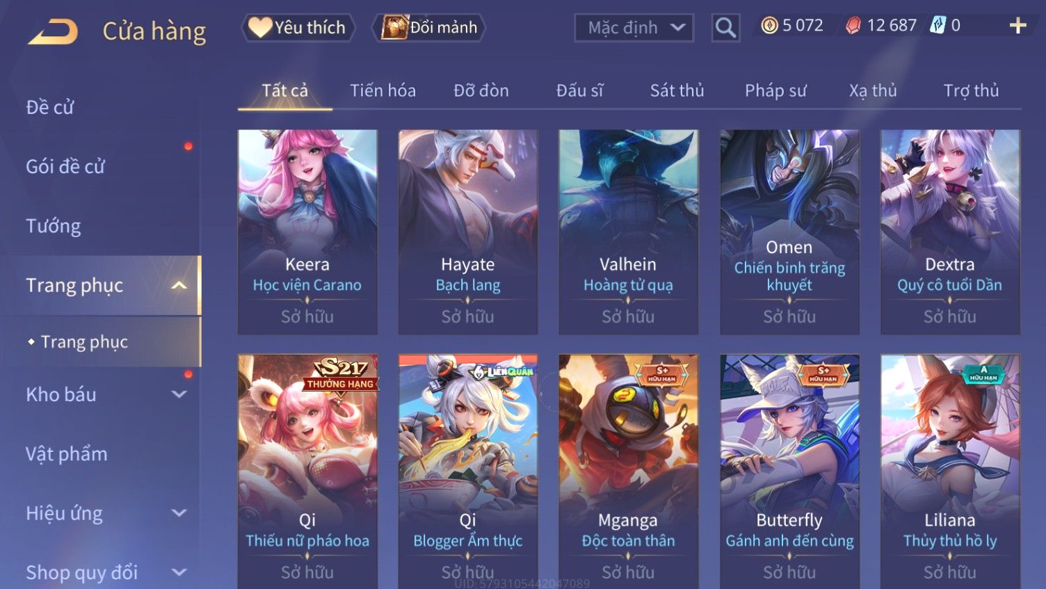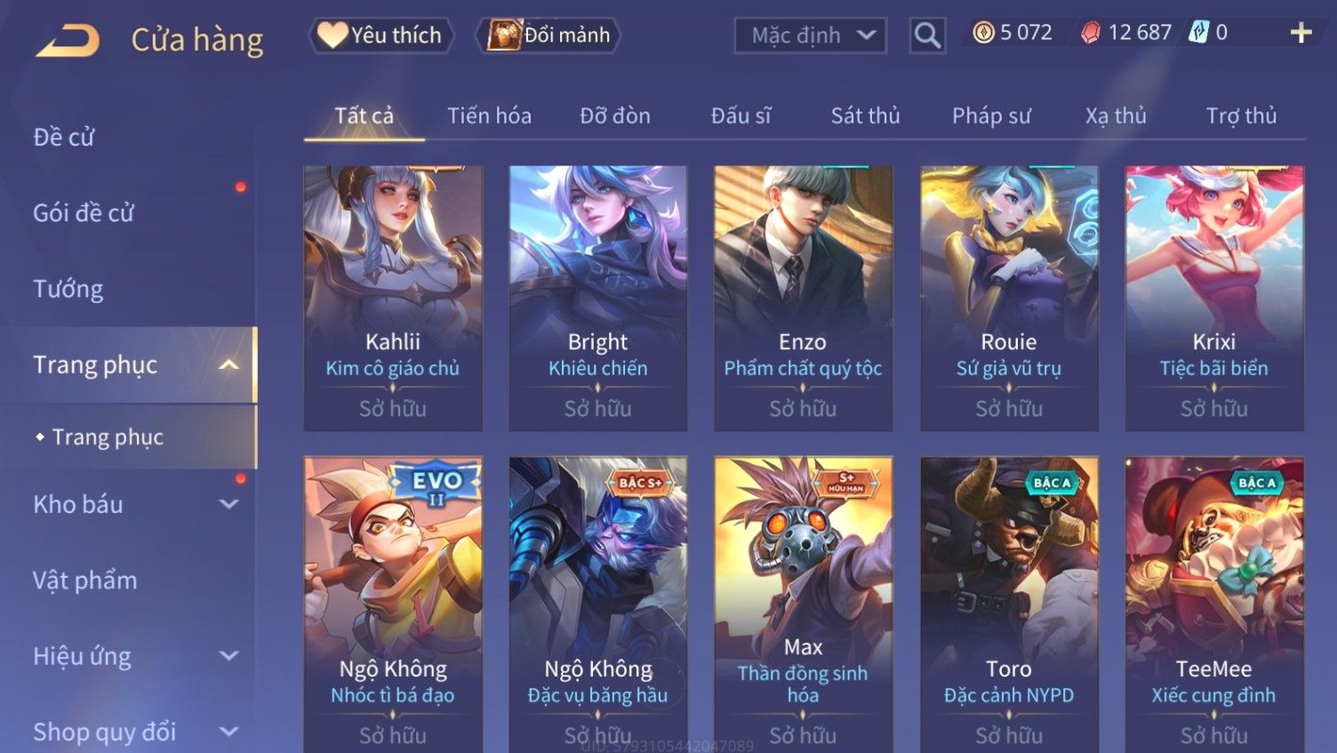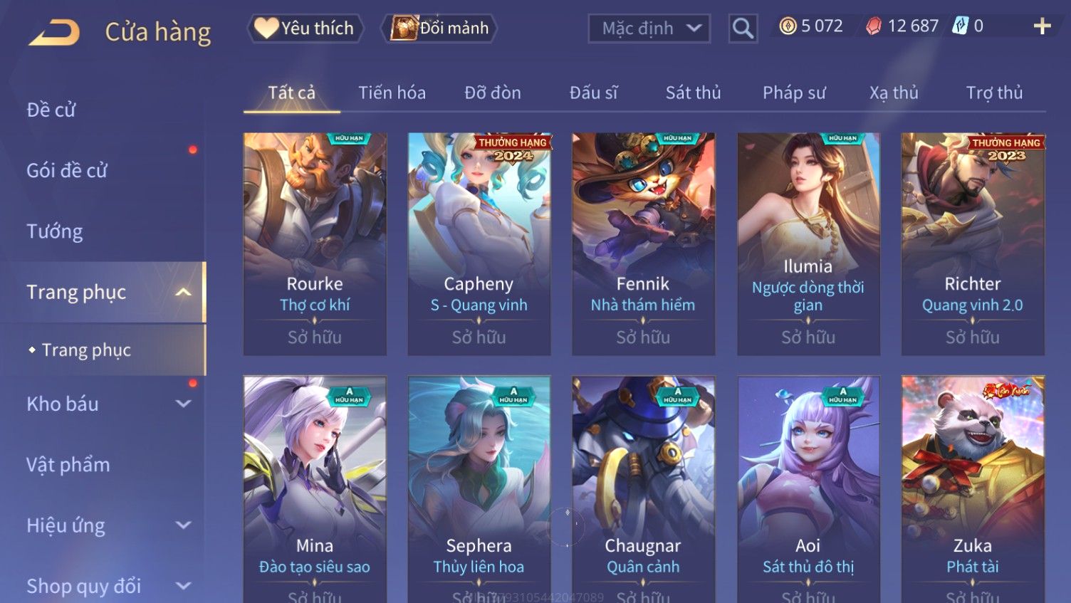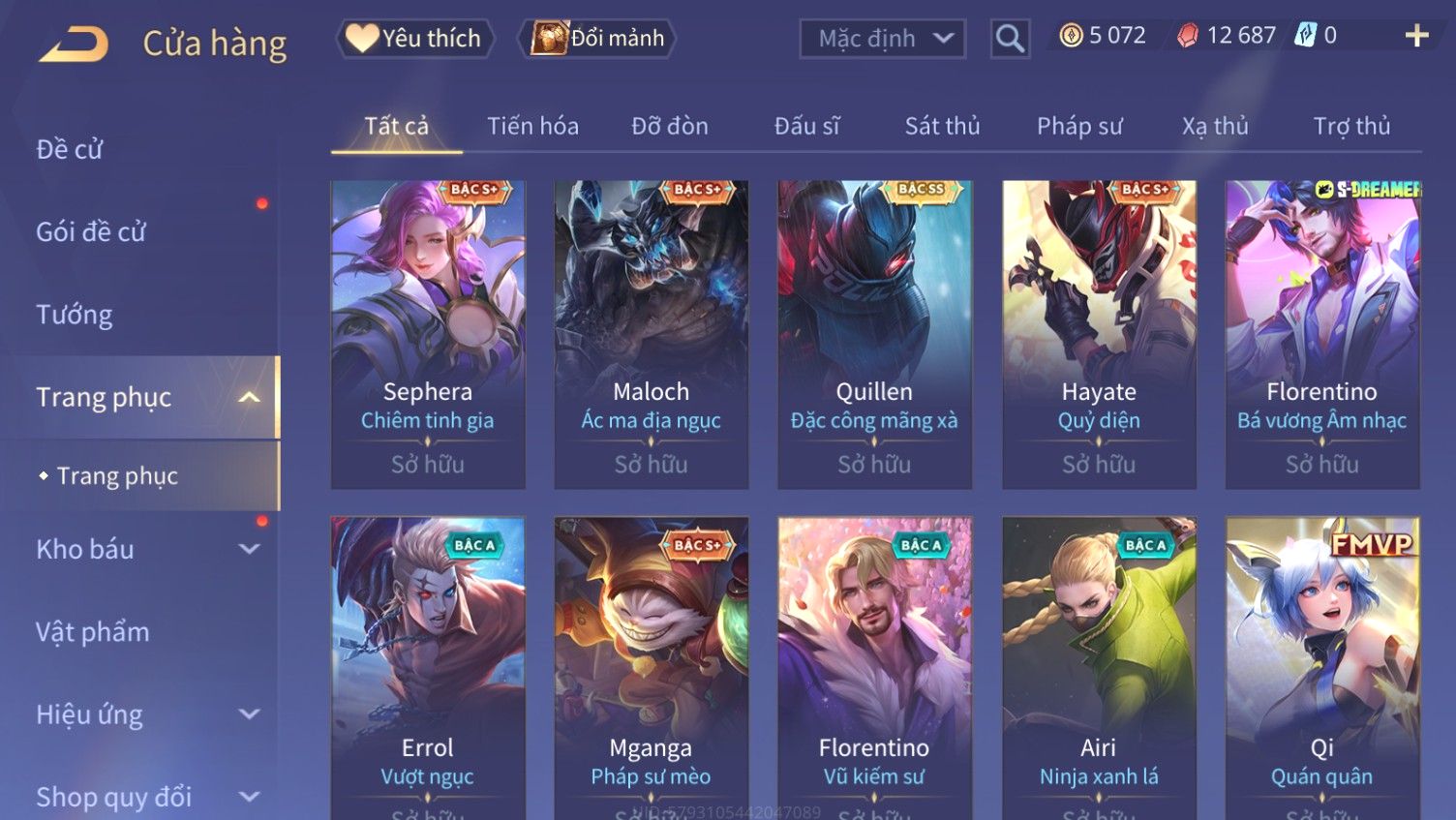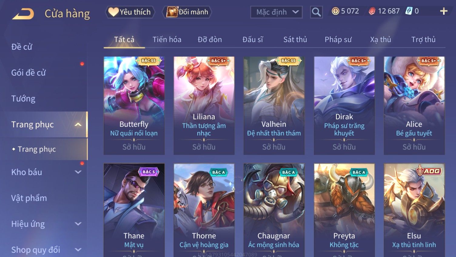 Nổi bật: Skin: Raz Chiến Thần Muay Thái×Quillen Đặc Công Mãng Xà×Maloch Đại Tướng Rô Bốt×Valhein Đệ Nhất Thần Thám×Omen Đao Phủ Tận Thế×Yorn Long Thần Soái×Tulen Tiêu Dao Vũ Thần×Ngộ Không Siêu Việt×Florentino Bá Vương Âm Nhạc×Full Ngọc, Nhiều Skin SS Đẹp
