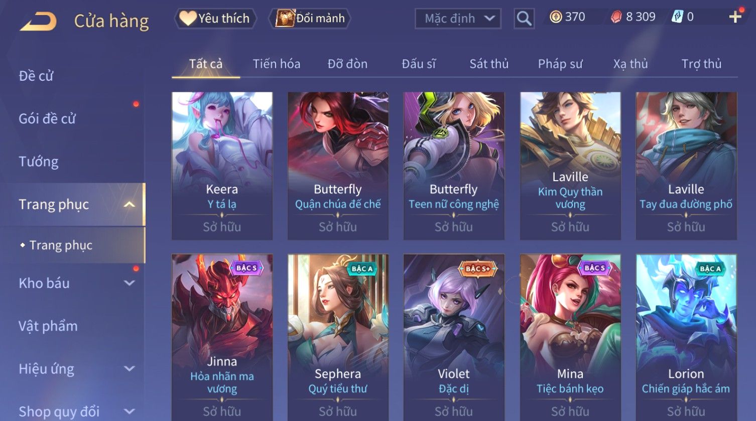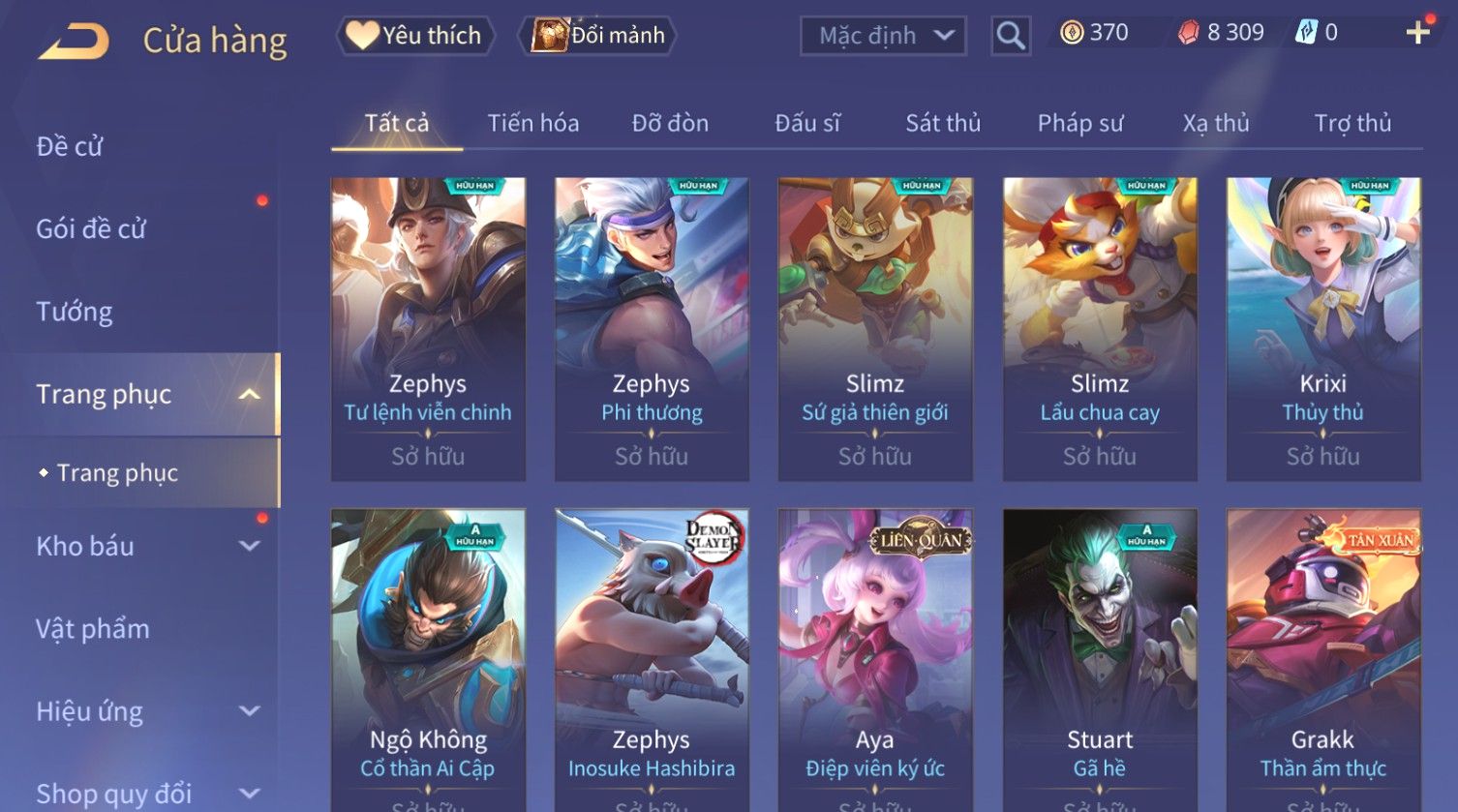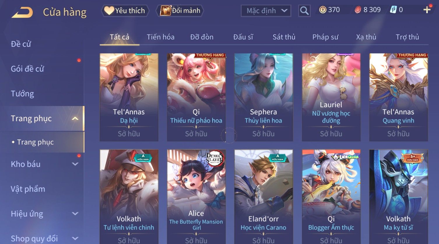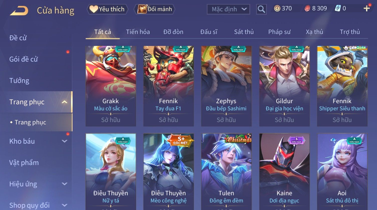 Nổi bật: Skin: Capheny Kimono×Quillen Đặc Công Mãng Xà×Airi Kiemono×Liliana Nguyệt Mị Ly×Florentino Giám Sát Tinh Hệ×Ryoma Thanh Long Bang Chủ×Zata Sứ Giả Tinh Hệ×Full Ngọc, Nhiều Skin SS Đẹp