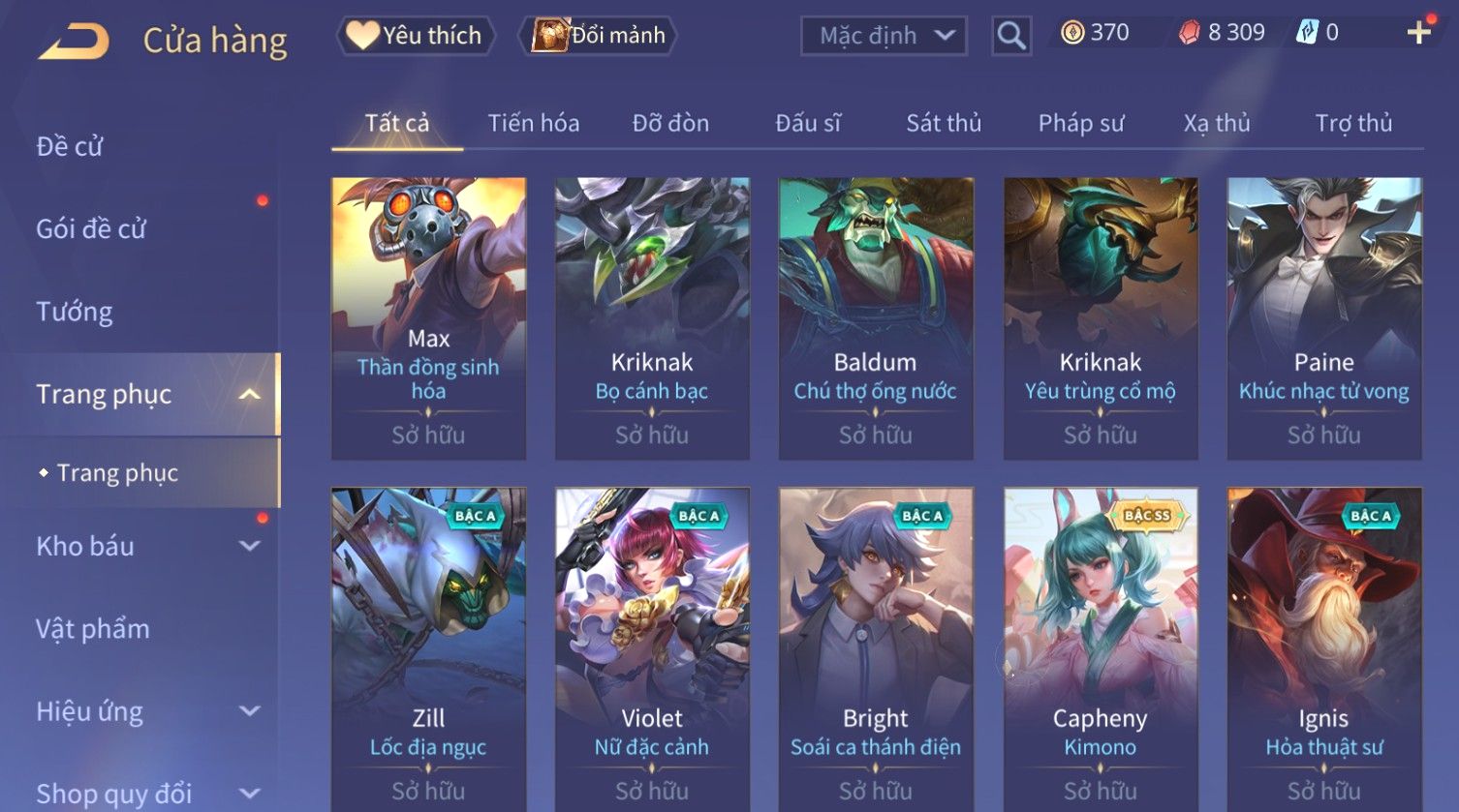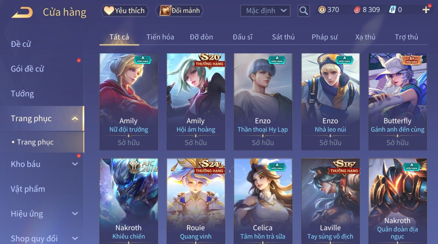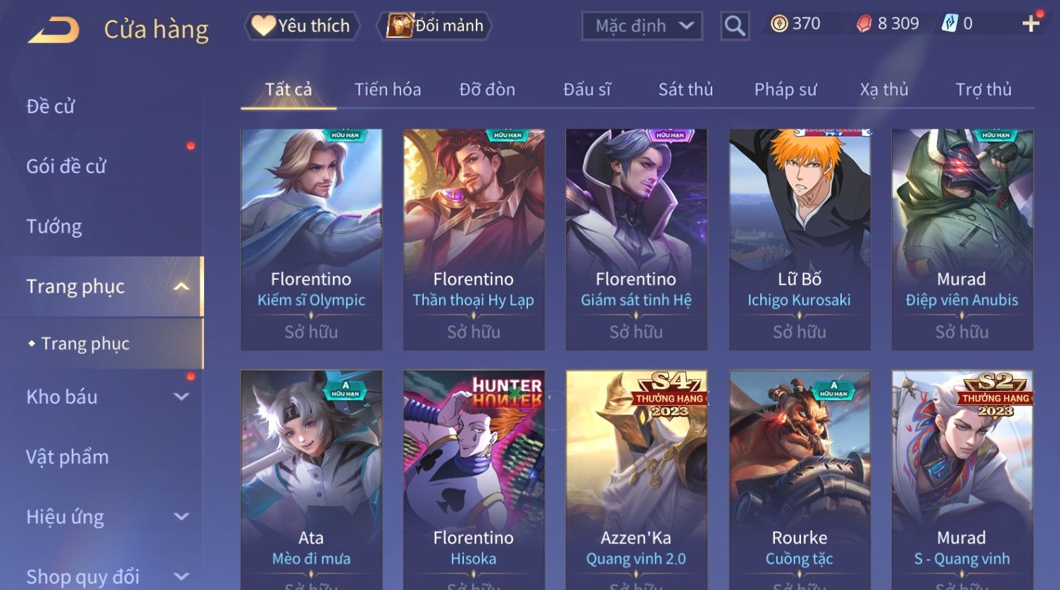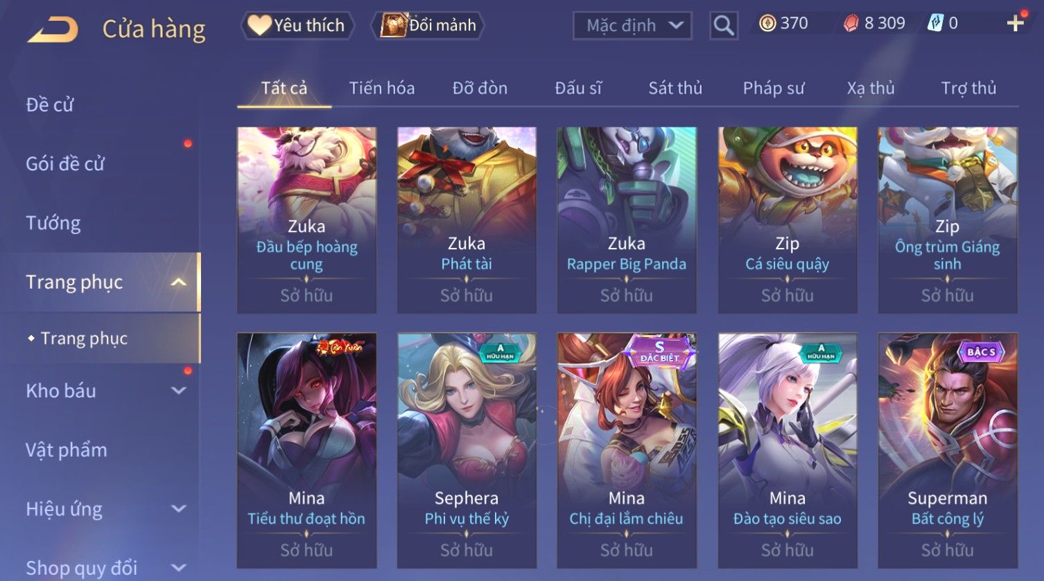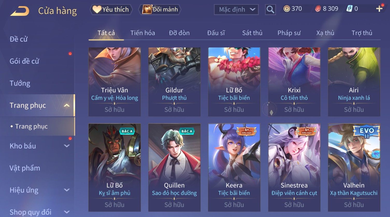 Nổi bật: Skin: Capheny Kimono×Quillen Đặc Công Mãng Xà×Airi Kiemono×Liliana Nguyệt Mị Ly×Florentino Giám Sát Tinh Hệ×Ryoma Thanh Long Bang Chủ×Zata Sứ Giả Tinh Hệ×Full Ngọc, Nhiều Skin SS Đẹp