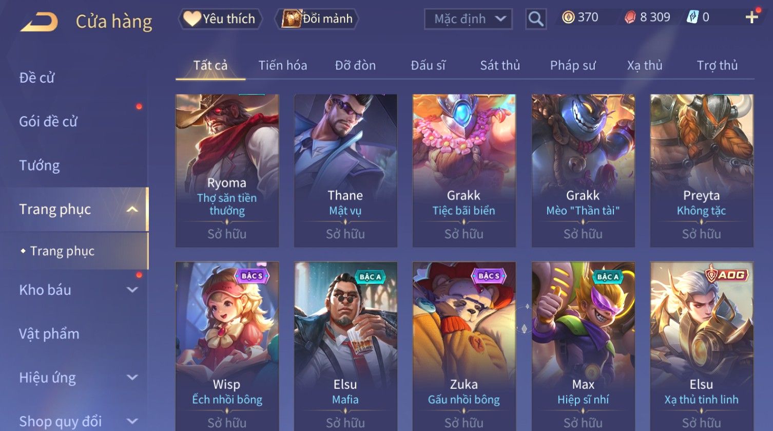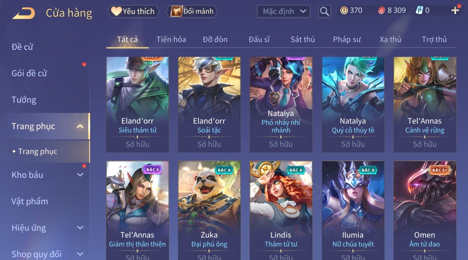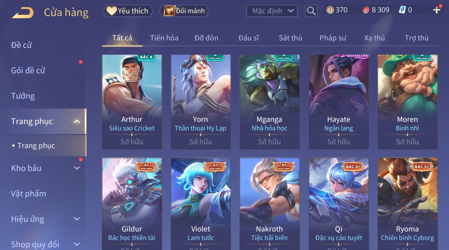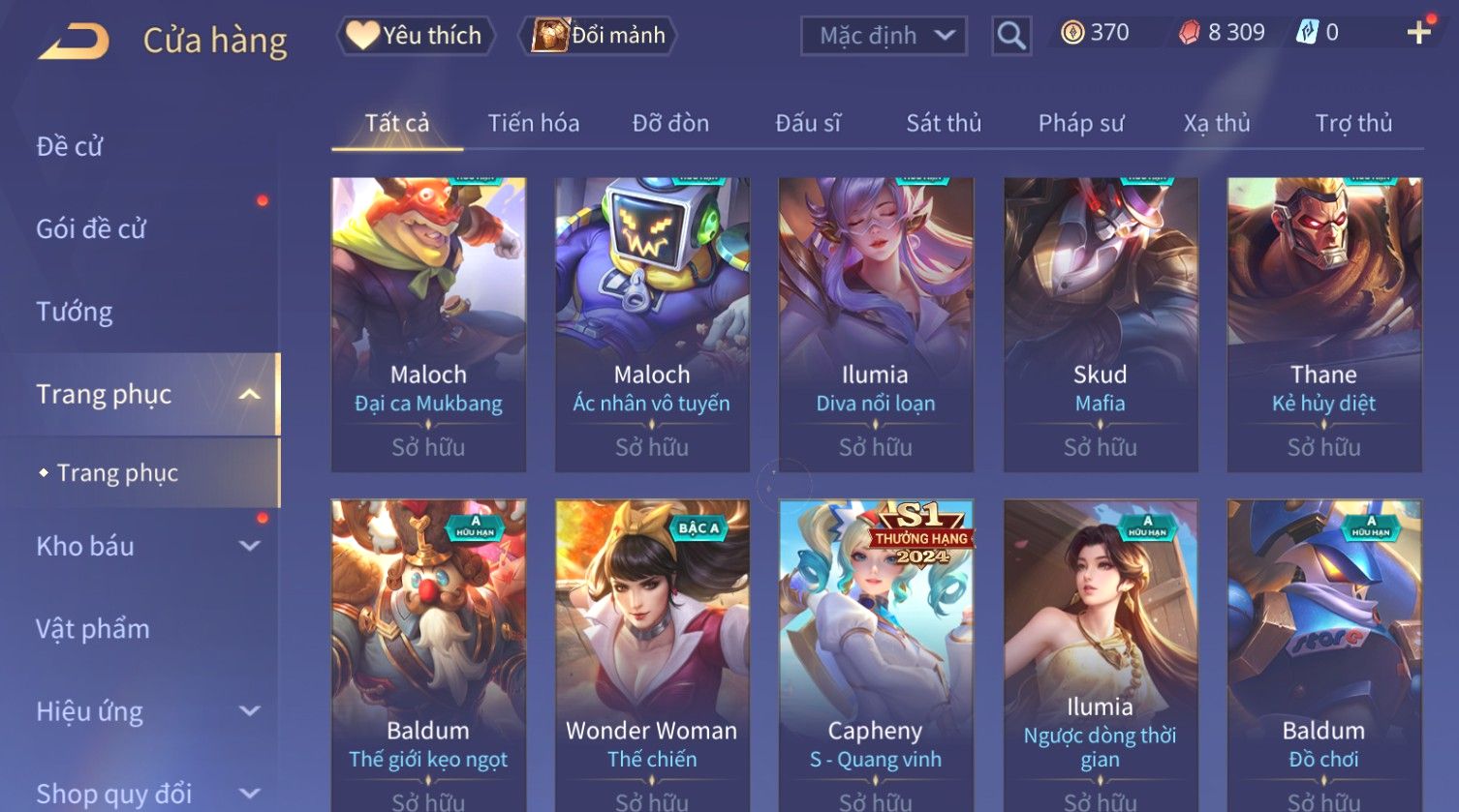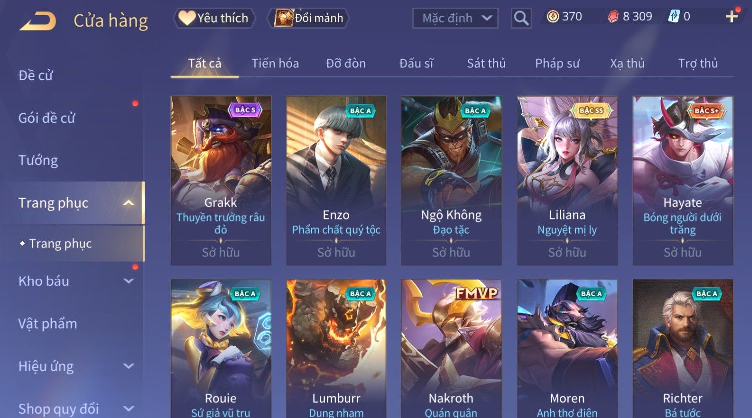 Nổi bật: Skin: Capheny Kimono×Quillen Đặc Công Mãng Xà×Airi Kiemono×Liliana Nguyệt Mị Ly×Florentino Giám Sát Tinh Hệ×Ryoma Thanh Long Bang Chủ×Zata Sứ Giả Tinh Hệ×Full Ngọc, Nhiều Skin SS Đẹp