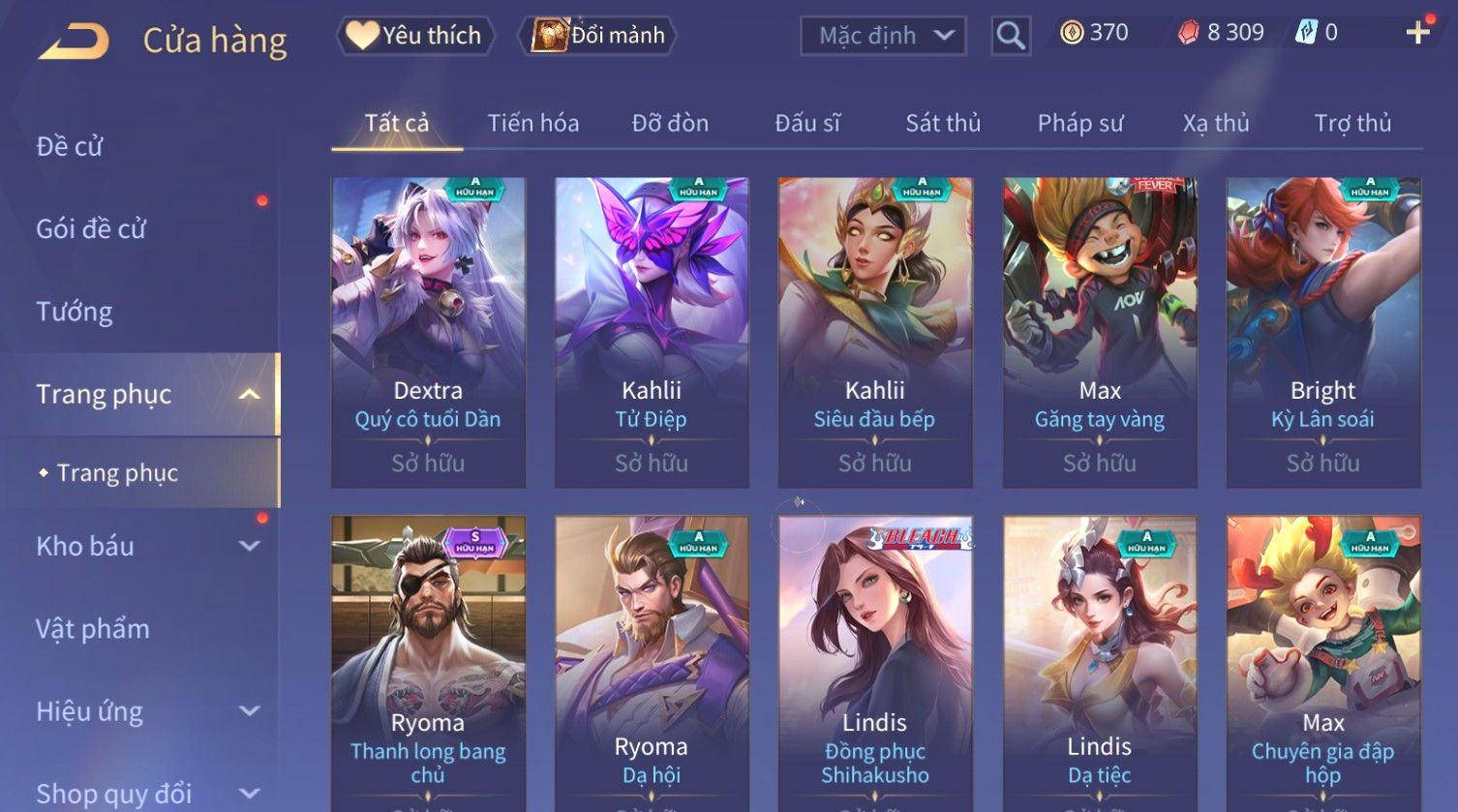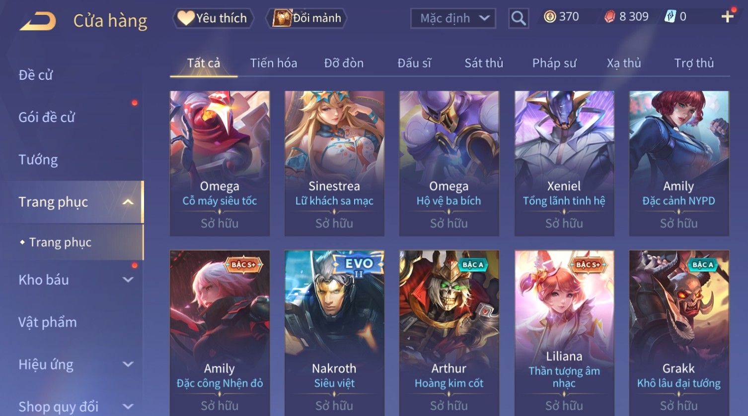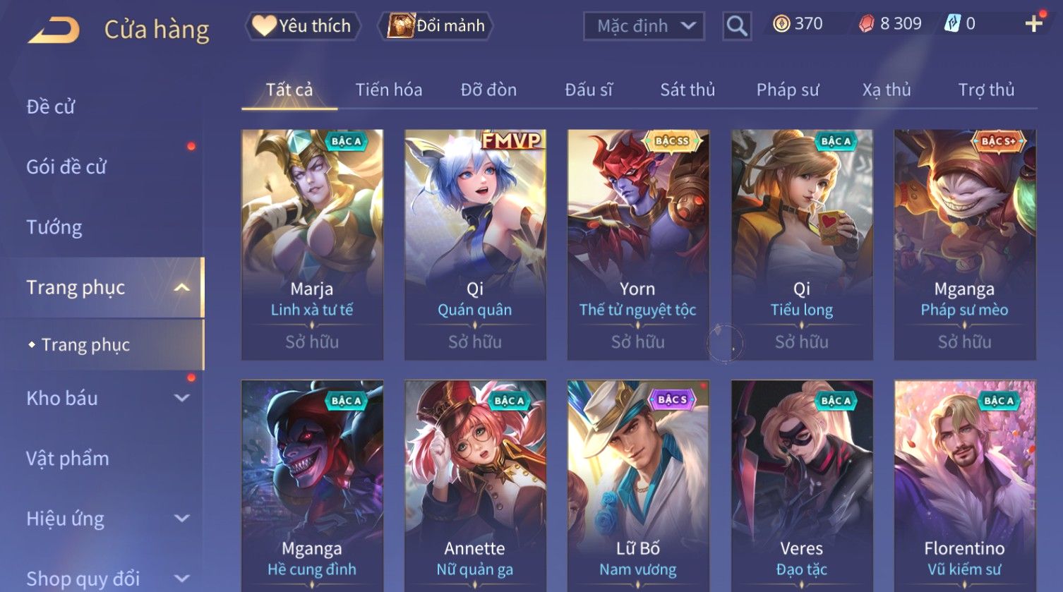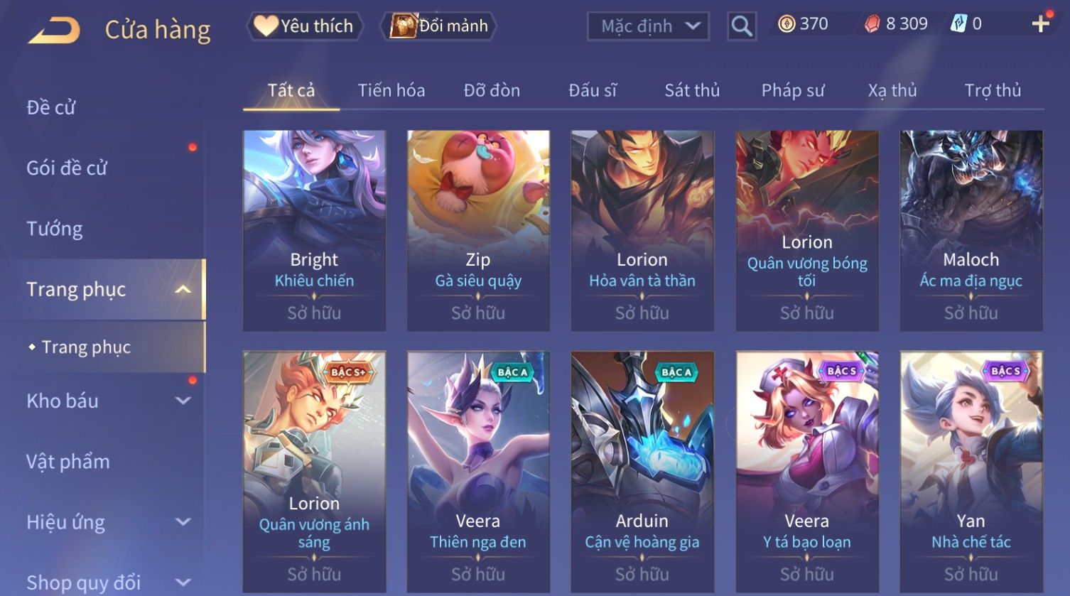 Nổi bật: Skin: Capheny Kimono×Quillen Đặc Công Mãng Xà×Airi Kiemono×Liliana Nguyệt Mị Ly×Florentino Giám Sát Tinh Hệ×Ryoma Thanh Long Bang Chủ×Zata Sứ Giả Tinh Hệ×Full Ngọc, Nhiều Skin SS Đẹp