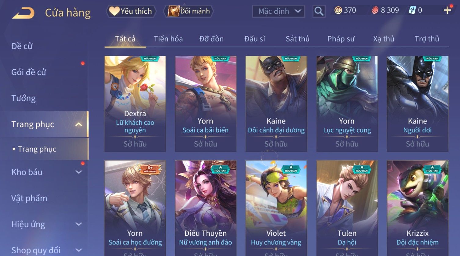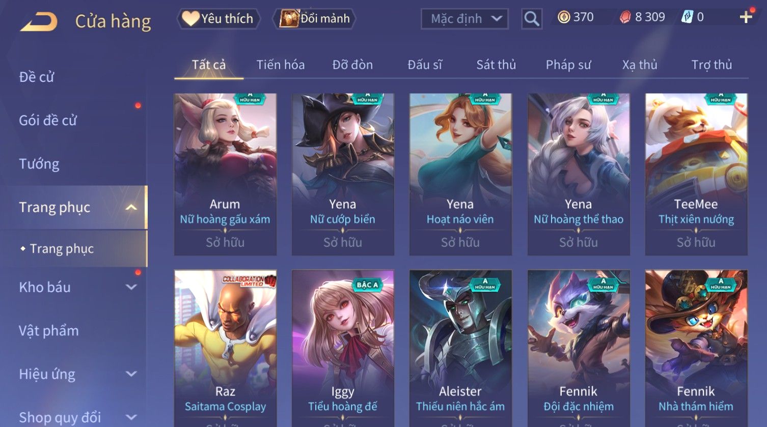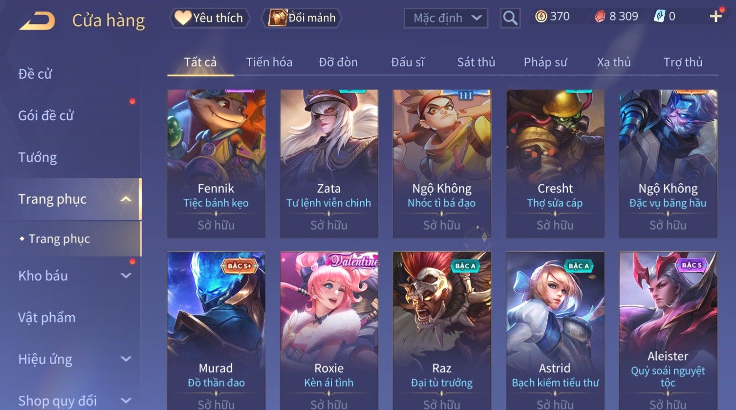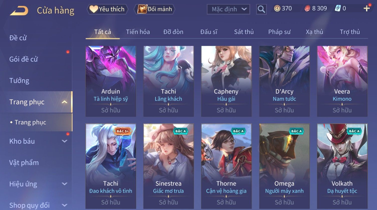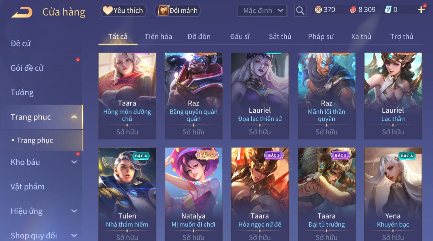 Nổi bật: Skin: Capheny Kimono×Quillen Đặc Công Mãng Xà×Airi Kiemono×Liliana Nguyệt Mị Ly×Florentino Giám Sát Tinh Hệ×Ryoma Thanh Long Bang Chủ×Zata Sứ Giả Tinh Hệ×Full Ngọc, Nhiều Skin SS Đẹp