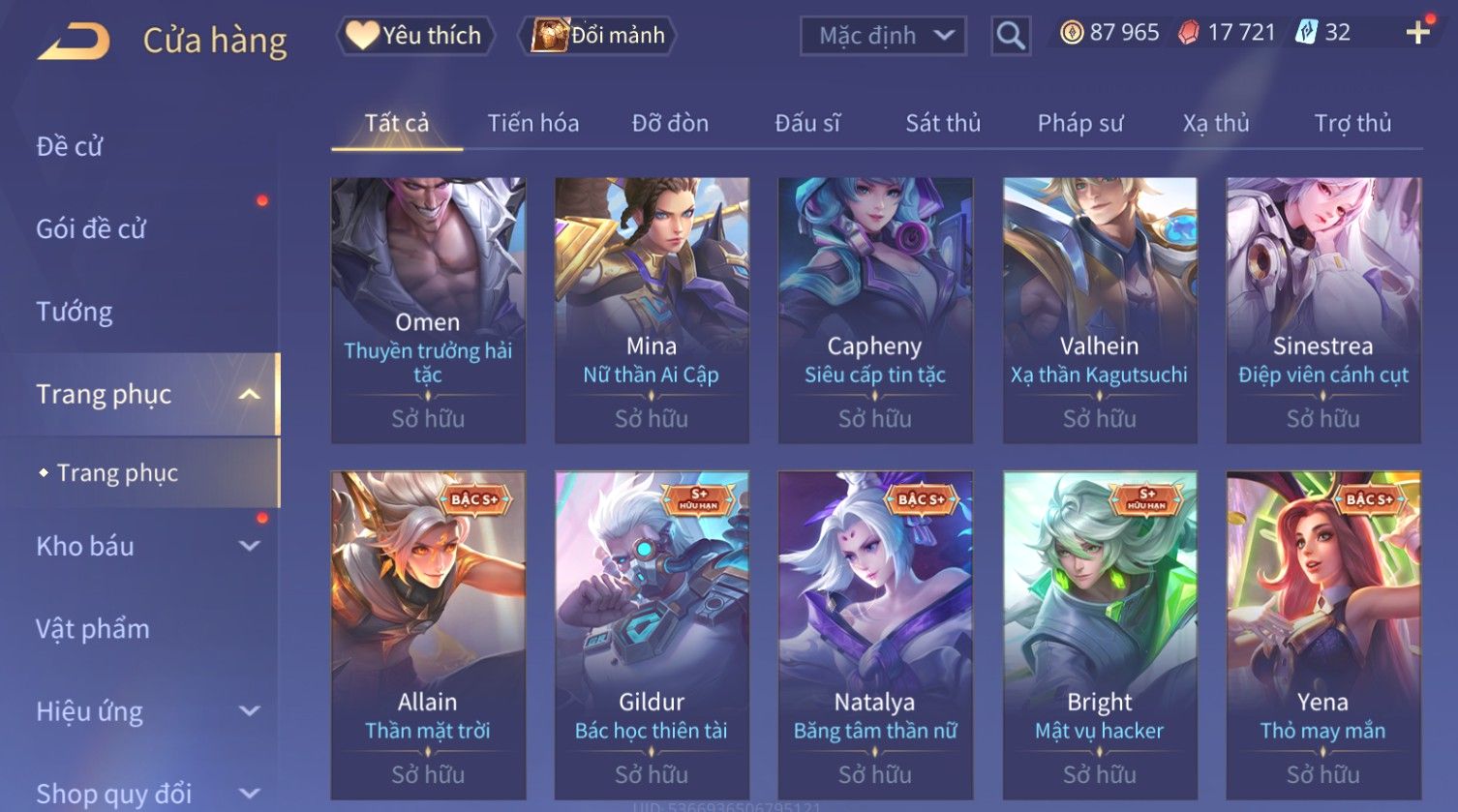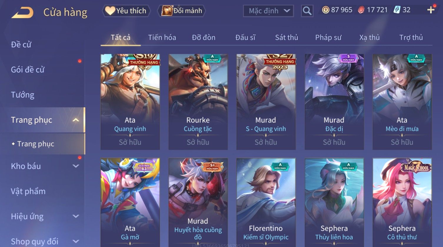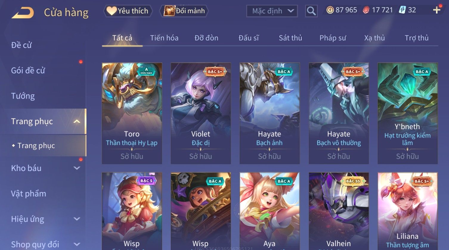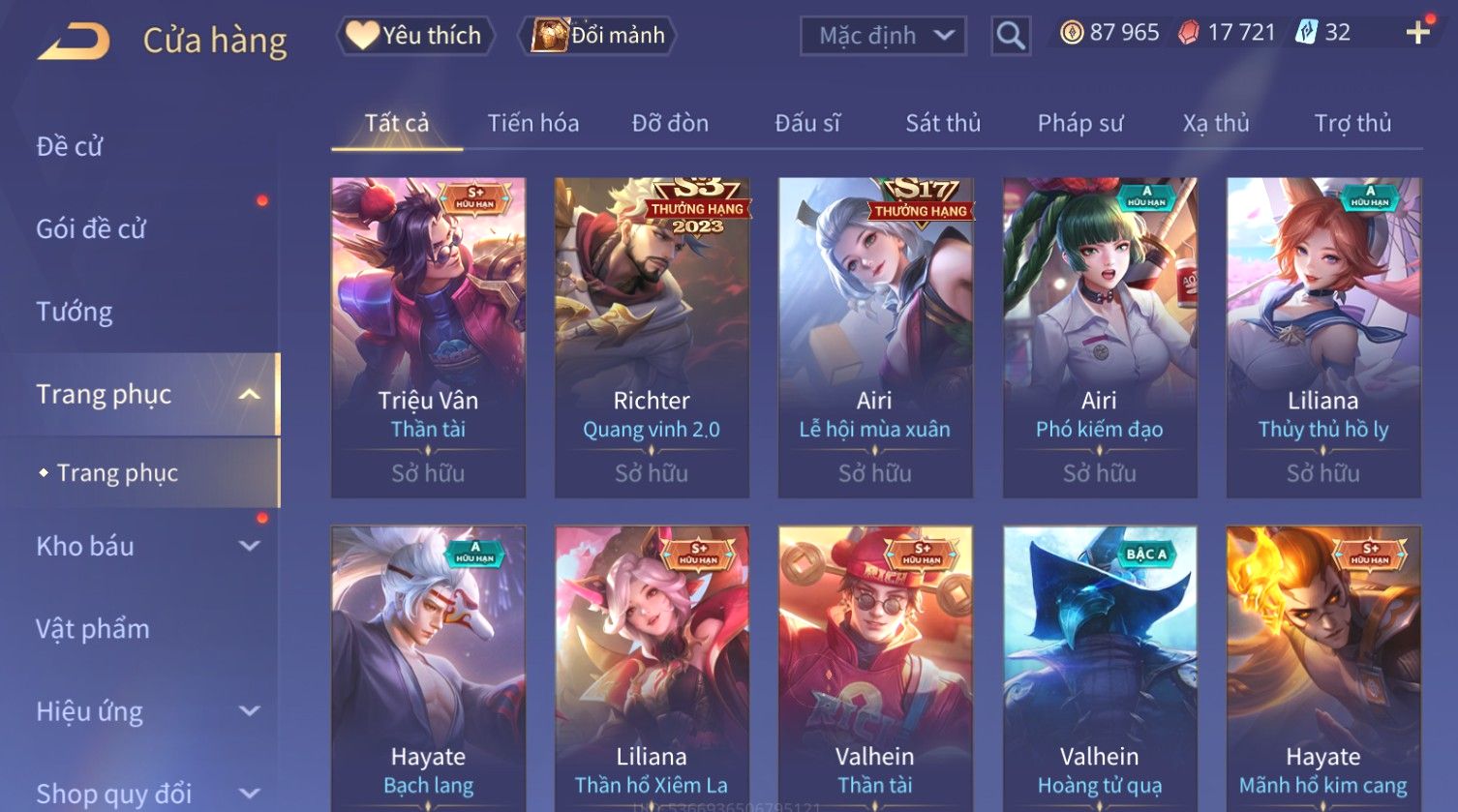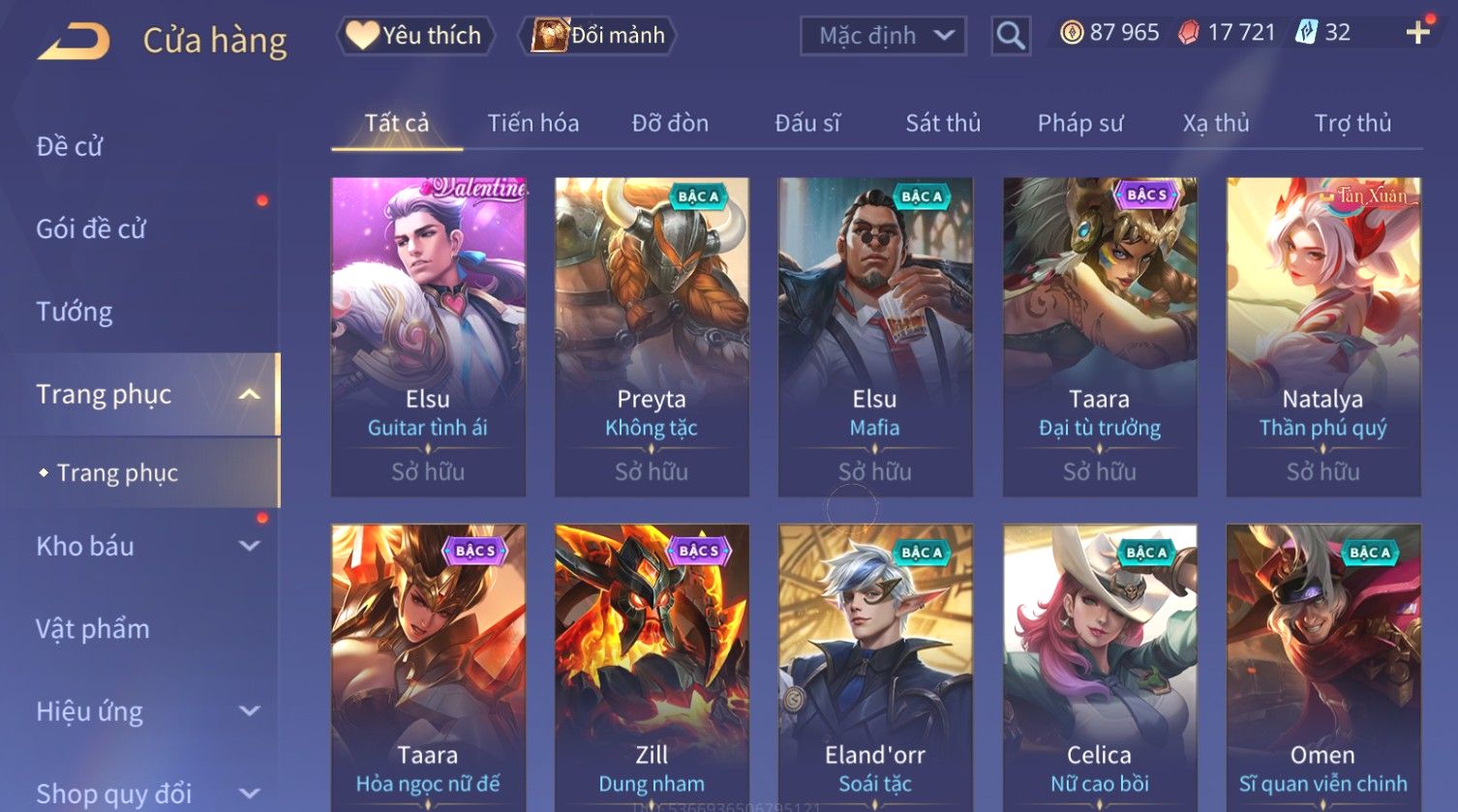 Nổi bật: Skin: Capheny Kimono×Airi Kiemono×Raz Siêu Việt×Ngộ Không Siêu Việt×Omen Đao Phủ Tận Thế×Elsu Trấn Thiên Phi Hồ×Lauriel Phi Thiên×Valhein Vũ Khí Tối Thượng×Tel'Annas Vũ Khúc Yêu Hồ×Richter Thần Kiếm Susanoo×Grakk Đi Vào Lòng Đất×Hayate Mãnh Hổ Kim Cang×Elsu Guitar Tình Ái×Full Ngọc, Nhiều Skin SS Đẹp