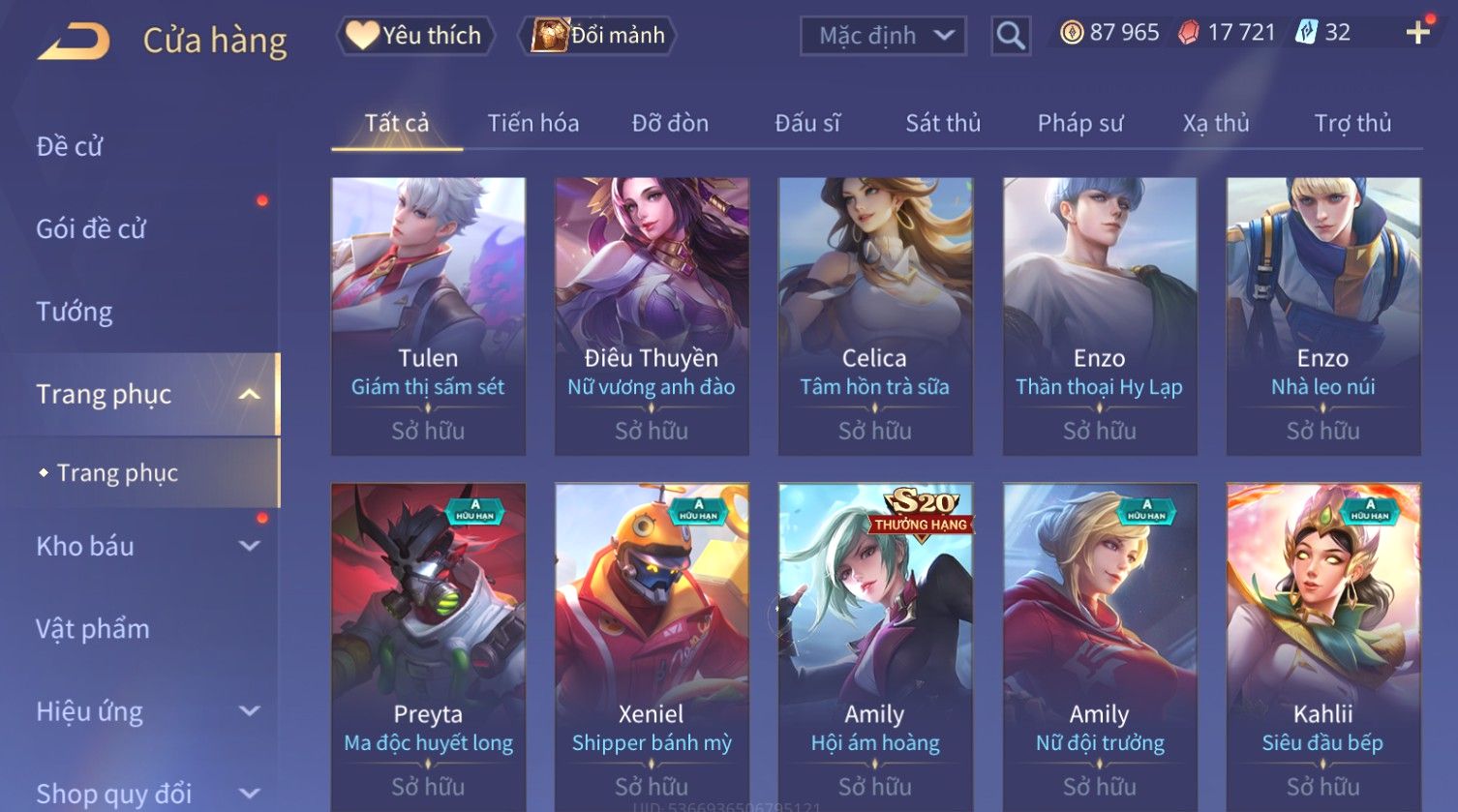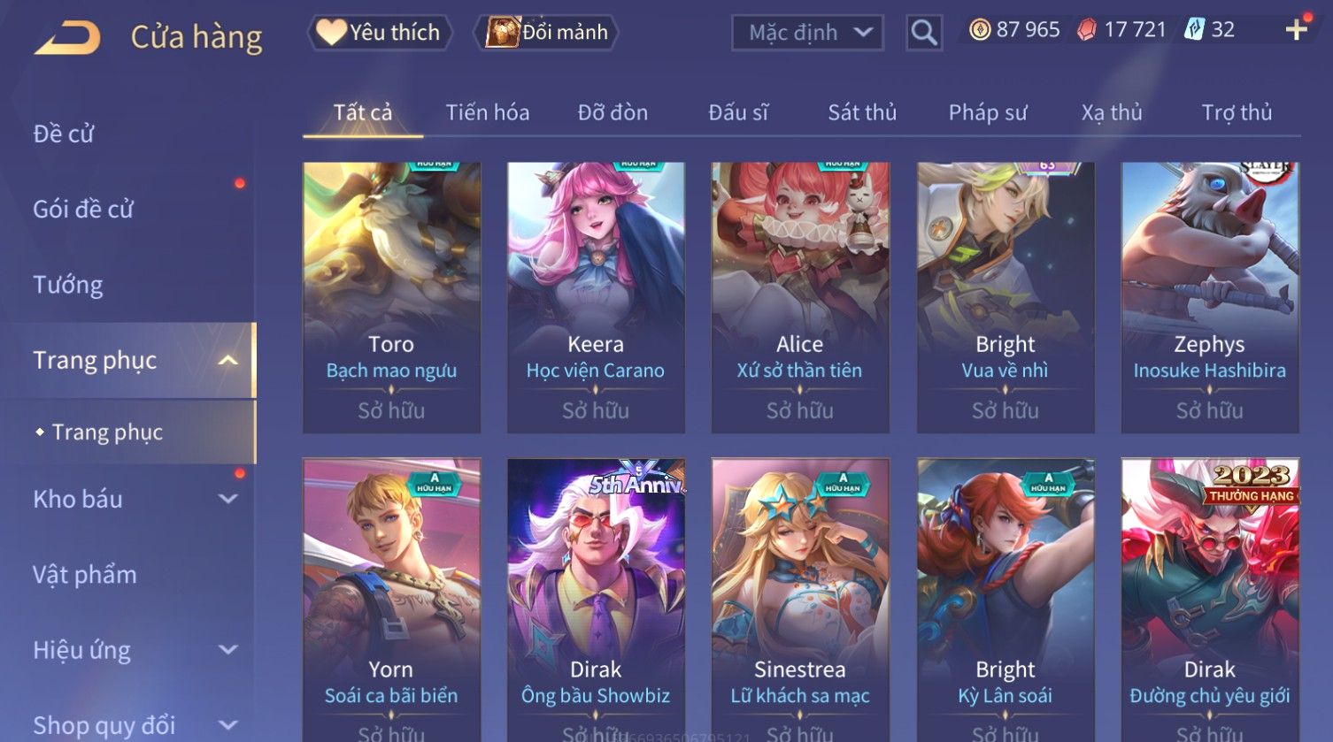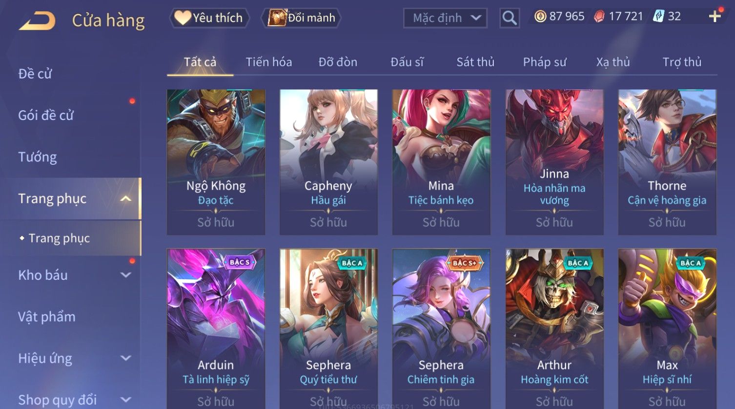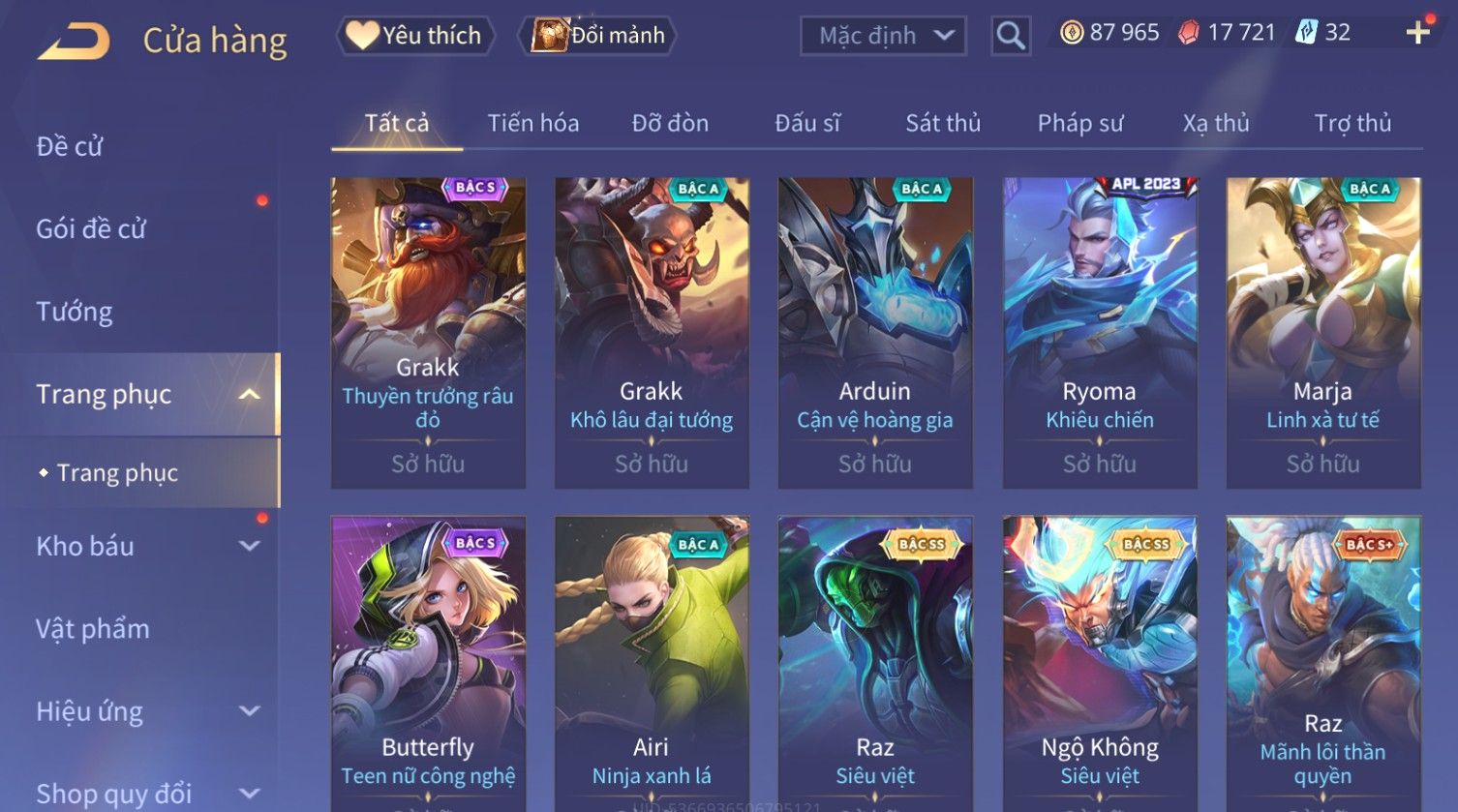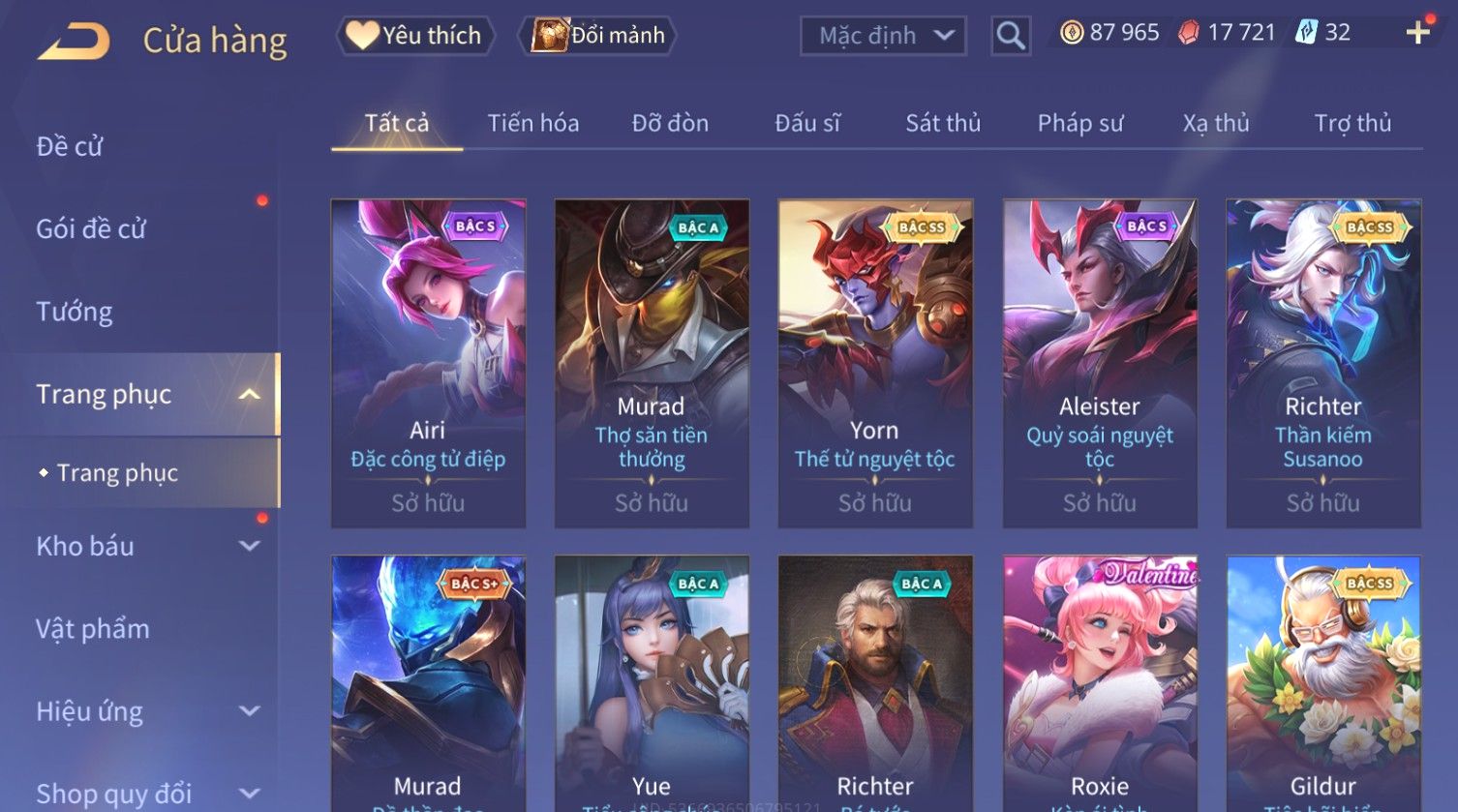Nổi bật: Skin: Capheny Kimono×Airi Kiemono×Raz Siêu Việt×Ngộ Không Siêu Việt×Omen Đao Phủ Tận Thế×Elsu Trấn Thiên Phi Hồ×Lauriel Phi Thiên×Valhein Vũ Khí Tối Thượng×Tel'Annas Vũ Khúc Yêu Hồ×Richter Thần Kiếm Susanoo×Grakk Đi Vào Lòng Đất×Hayate Mãnh Hổ Kim Cang×Elsu Guitar Tình Ái×Full Ngọc, Nhiều Skin SS Đẹp