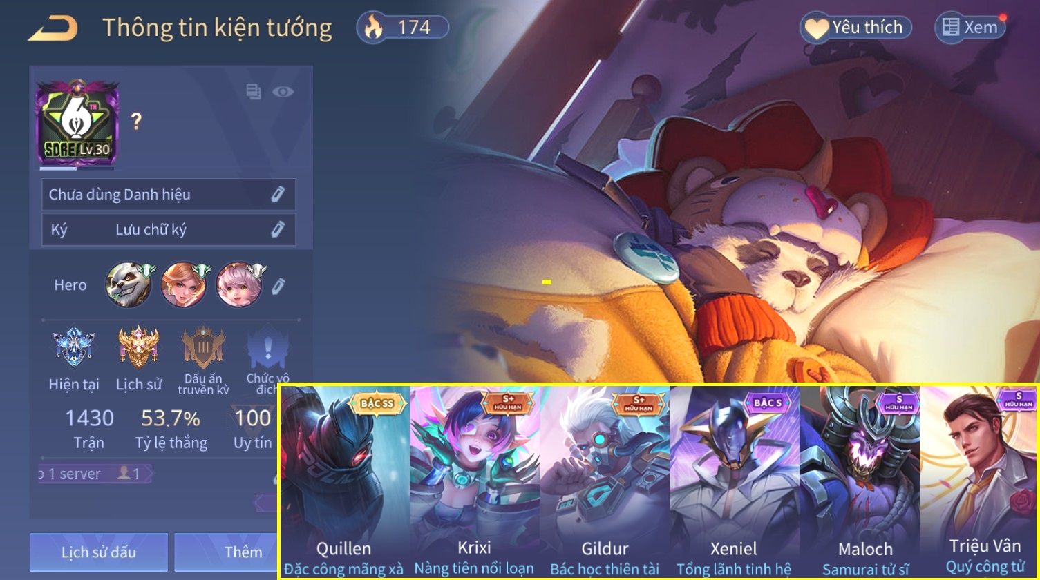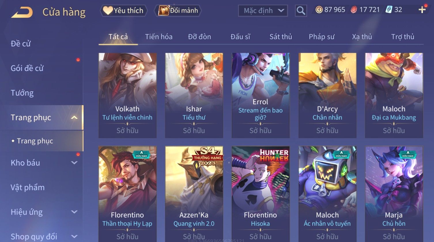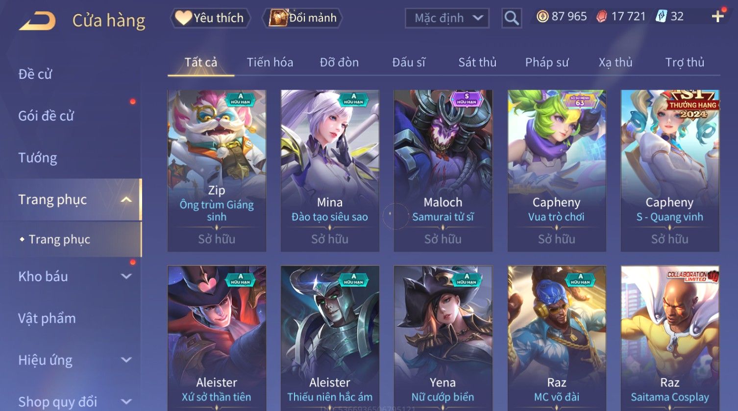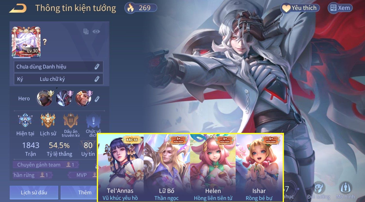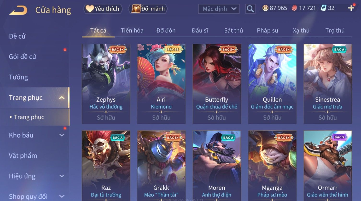 Nổi bật: Skin: Capheny Kimono×Airi Kiemono×Raz Siêu Việt×Ngộ Không Siêu Việt×Omen Đao Phủ Tận Thế×Elsu Trấn Thiên Phi Hồ×Lauriel Phi Thiên×Valhein Vũ Khí Tối Thượng×Tel'Annas Vũ Khúc Yêu Hồ×Richter Thần Kiếm Susanoo×Grakk Đi Vào Lòng Đất×Hayate Mãnh Hổ Kim Cang×Elsu Guitar Tình Ái×Full Ngọc, Nhiều Skin SS Đẹp