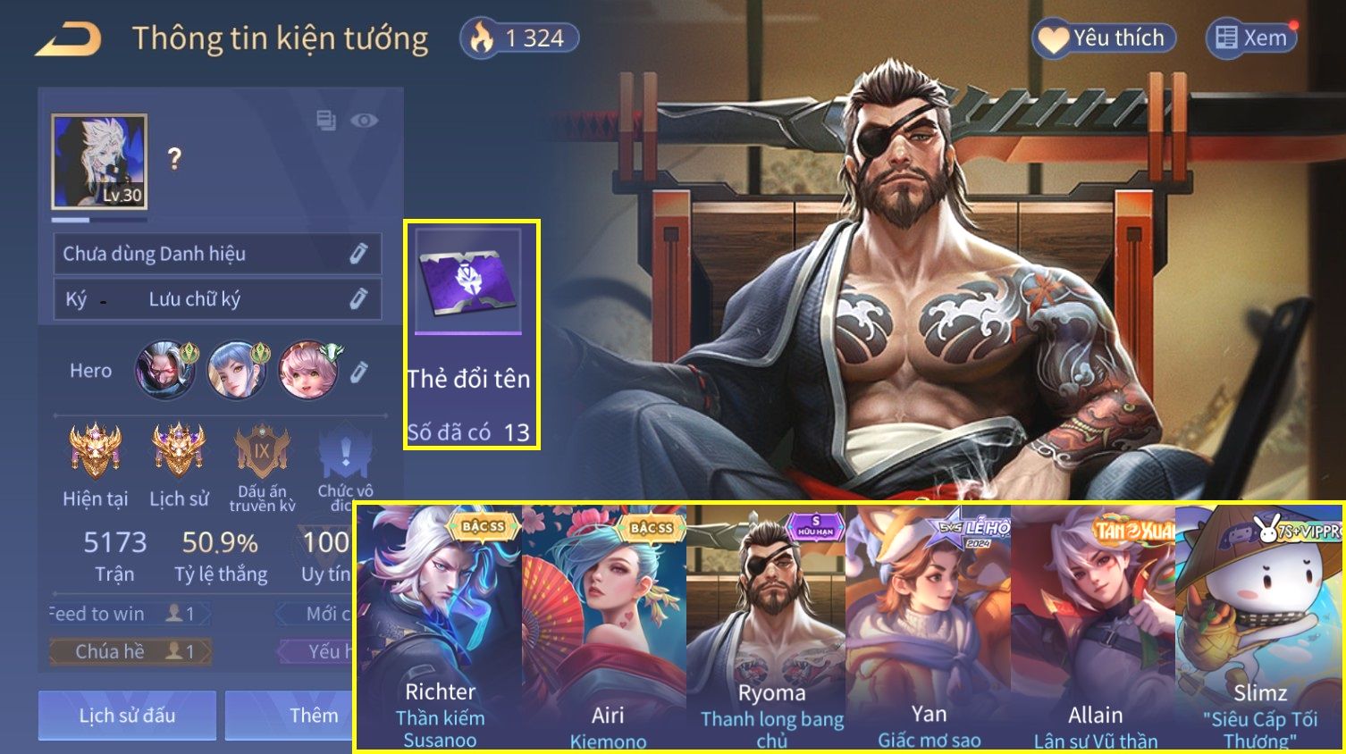 Nổi bật: Full Ngọc, Nhiều Skin Đẹp