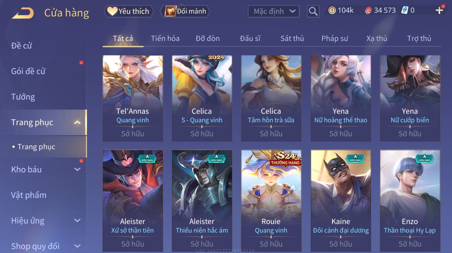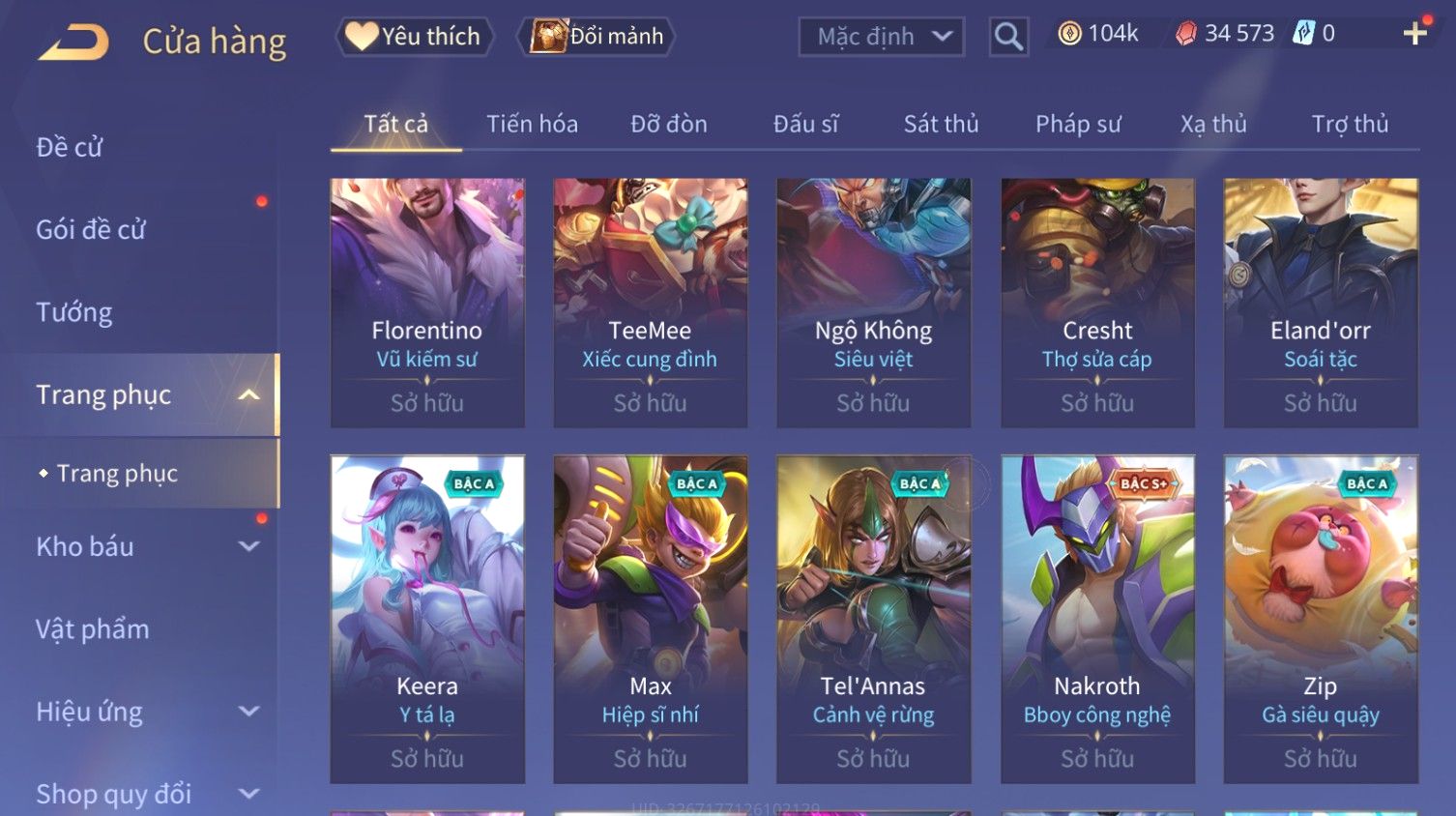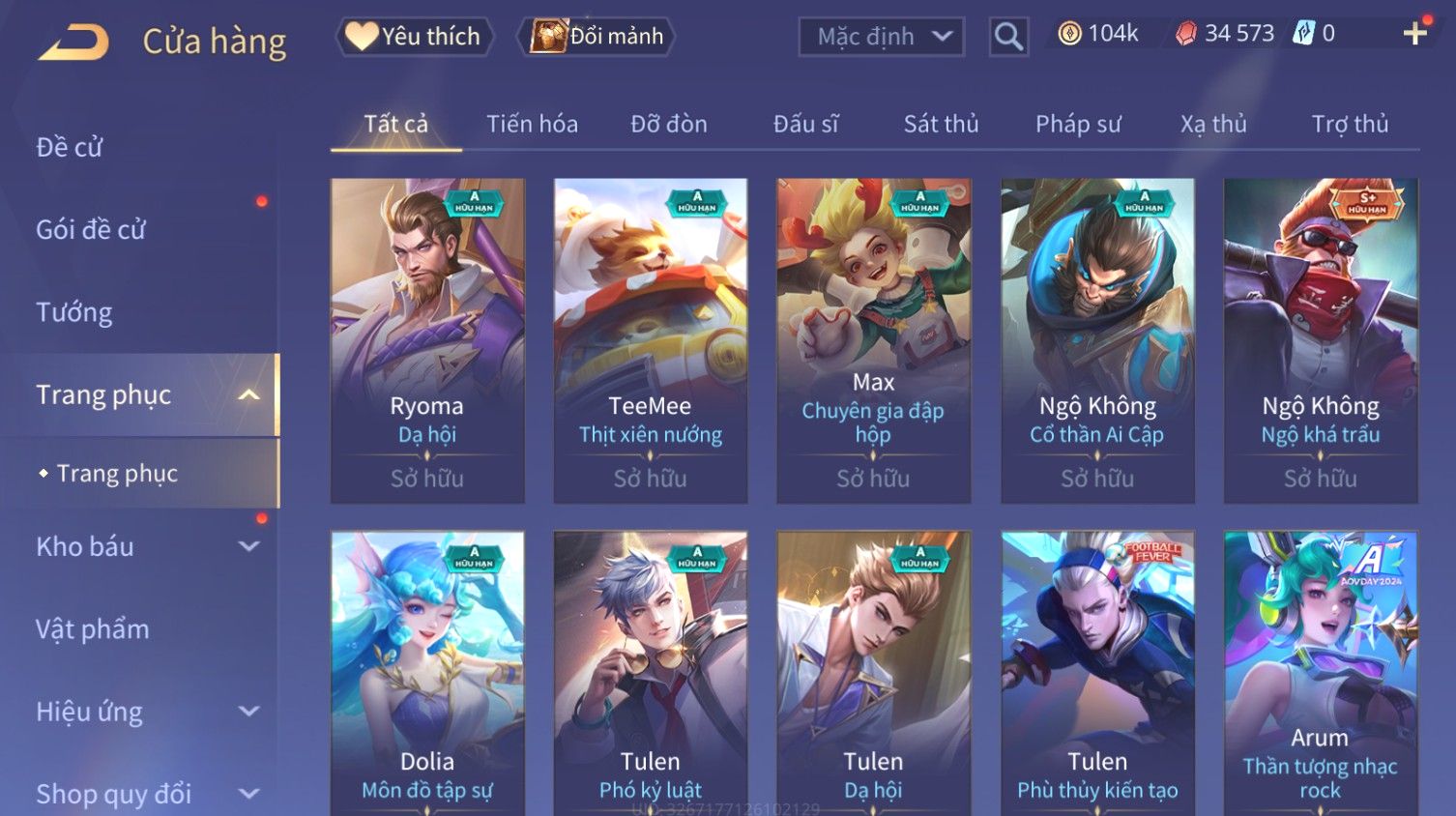 Nổi bật: Full Ngọc, Nhiều Skin SS Đẹp