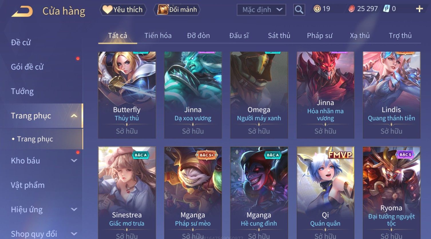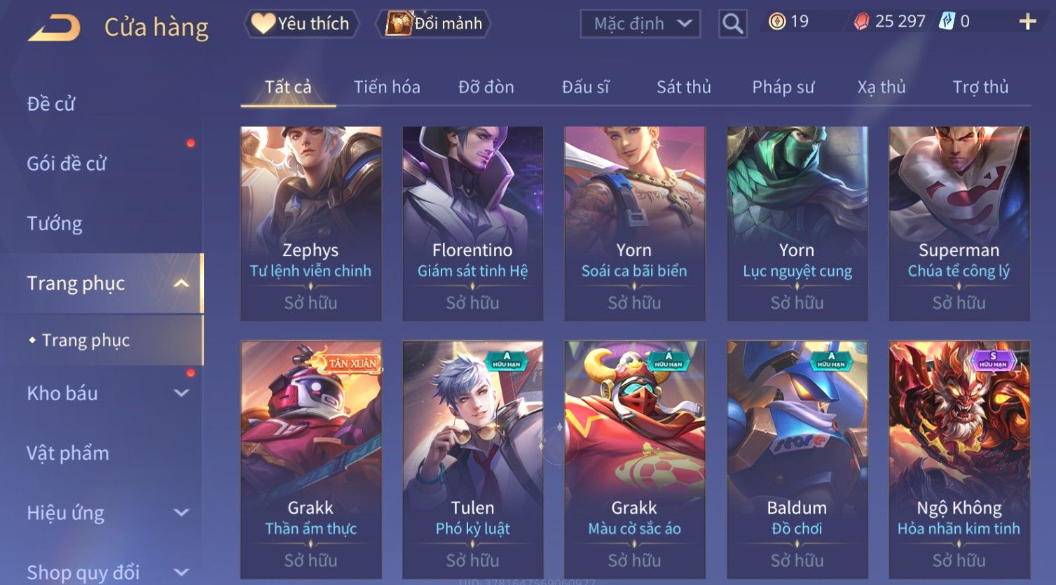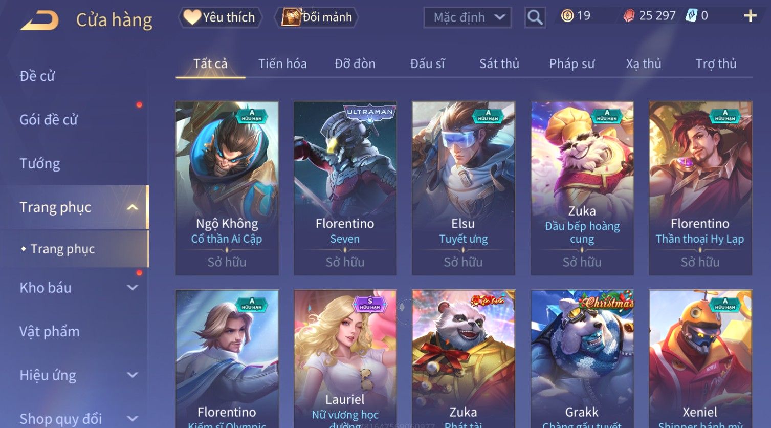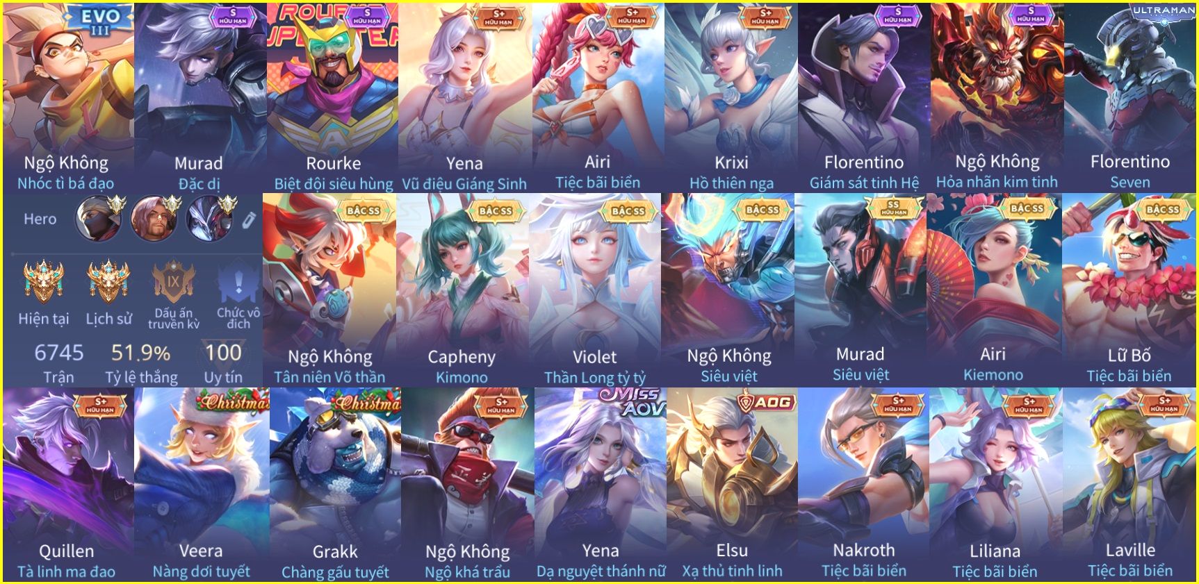 Nổi bật: Skin: Ngộ Không Tân Niên Võ Thần×Capheny Kimono×Violet Thần Long Tỷ Tỷ×Airi Kiemono×Florentino Giám Sát Tinh Hệ×Florentino Seven×Full Ngọc, Nhiều Skin Đẹp