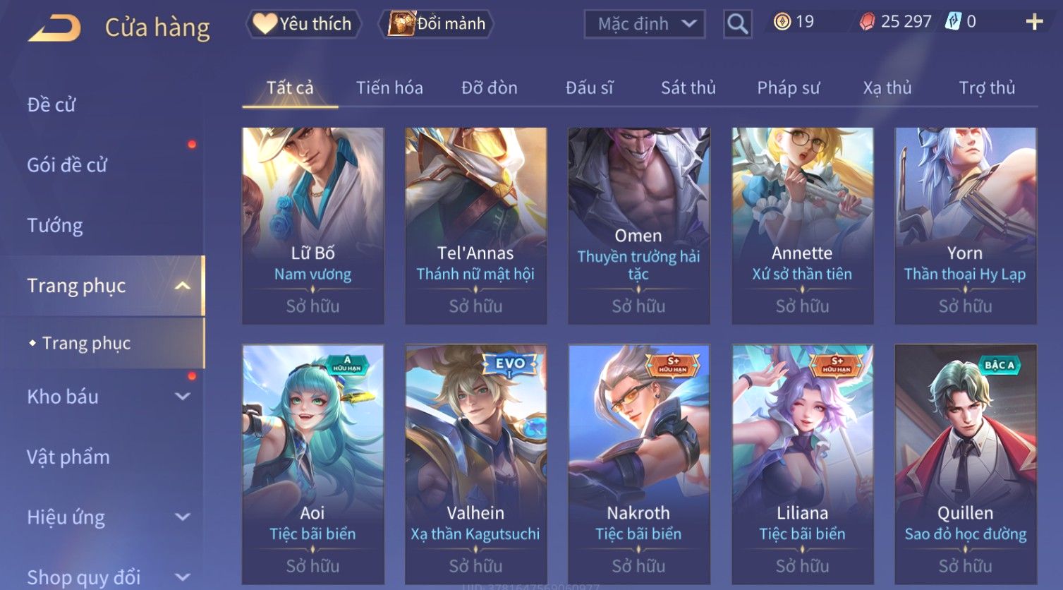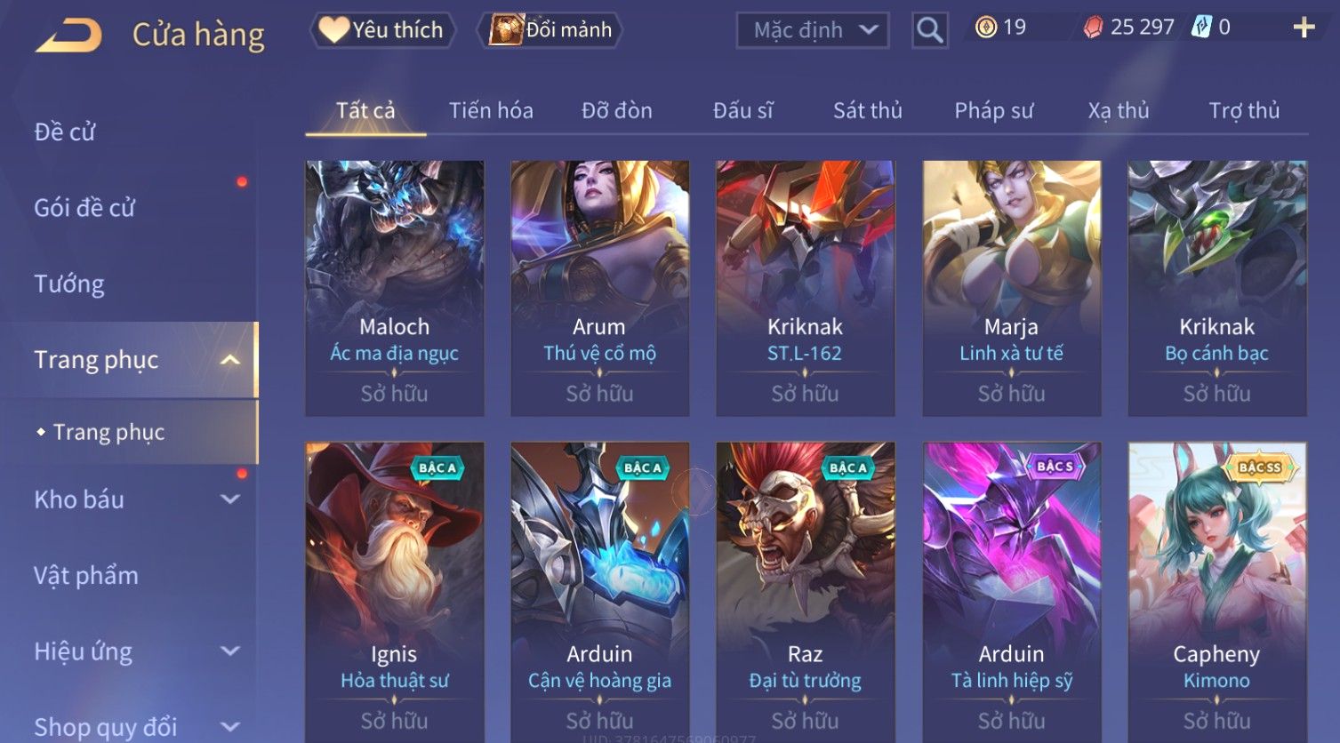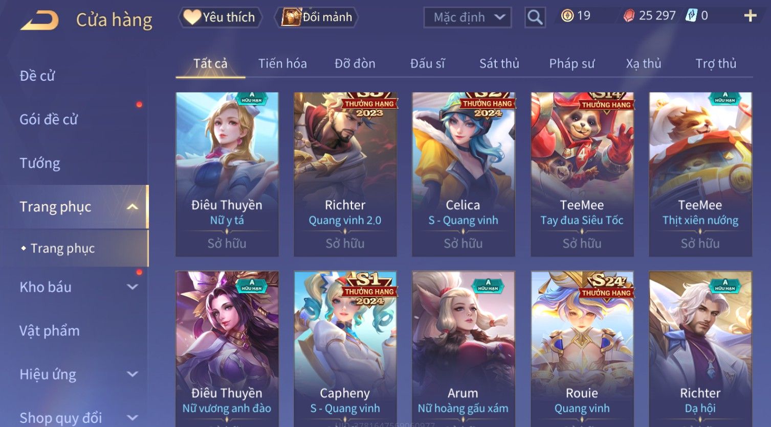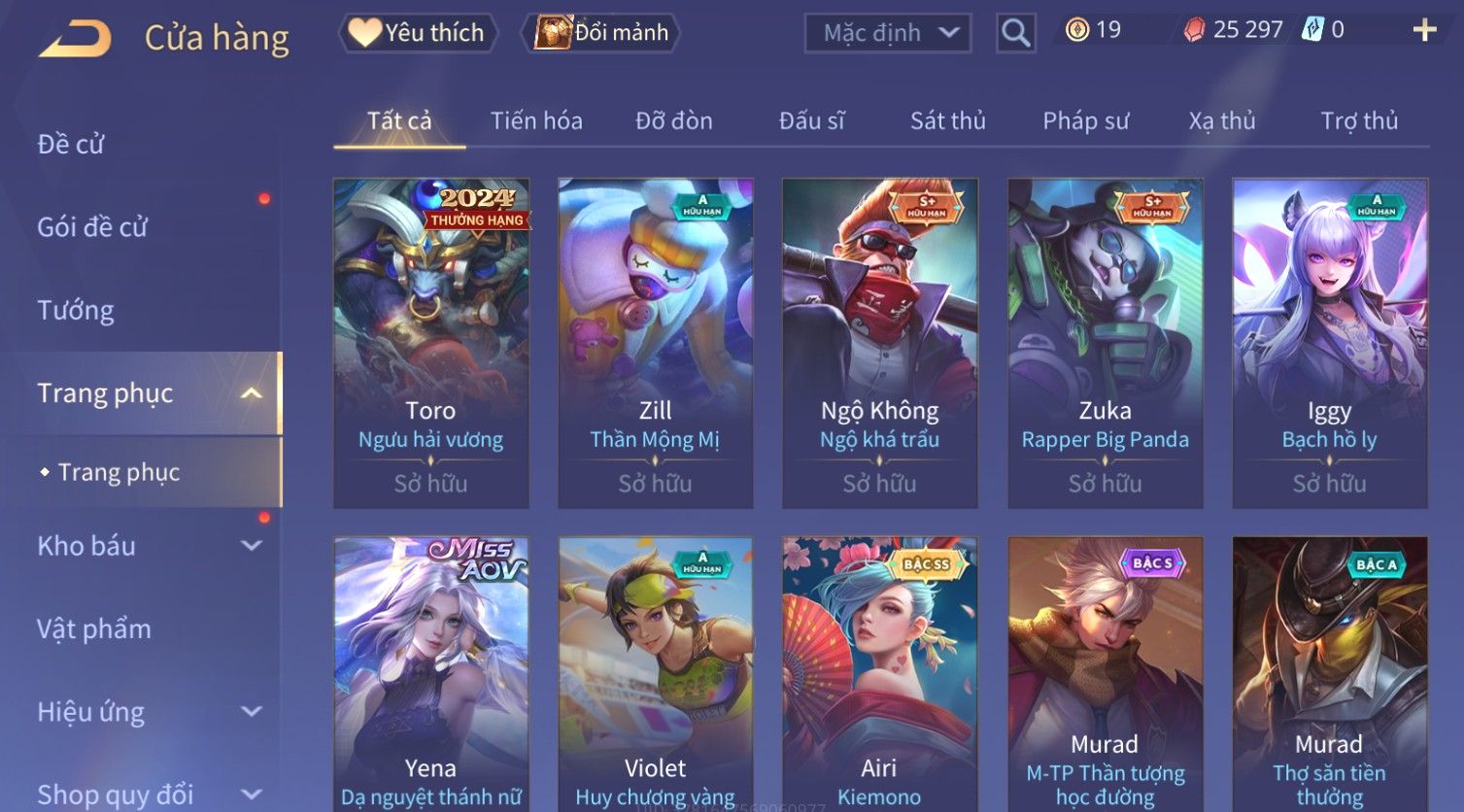 Nổi bật: Skin: Ngộ Không Tân Niên Võ Thần×Capheny Kimono×Violet Thần Long Tỷ Tỷ×Airi Kiemono×Florentino Giám Sát Tinh Hệ×Florentino Seven×Full Ngọc, Nhiều Skin Đẹp