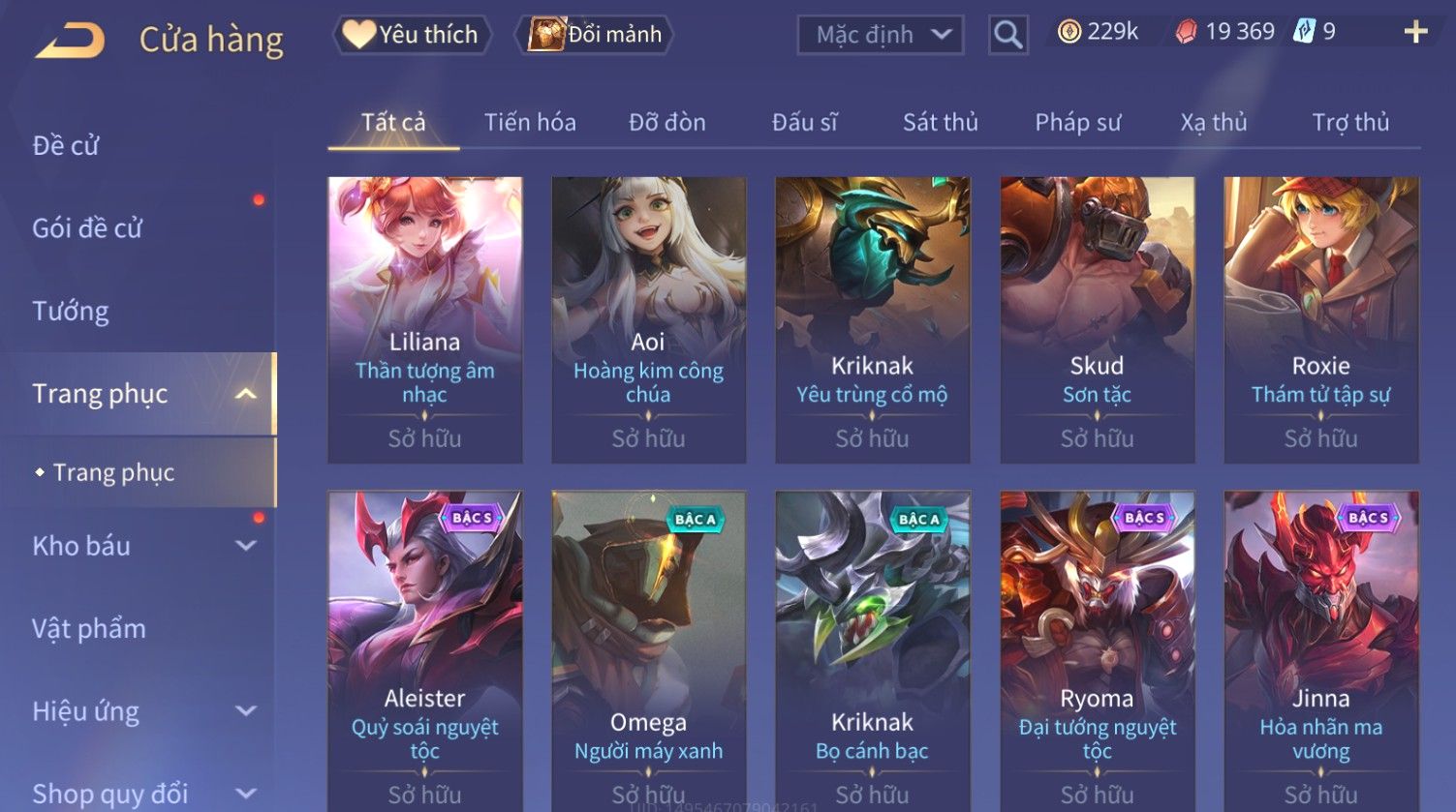 Nổi bật: Full Ngọc, Nhiều Skin SS Đẹp