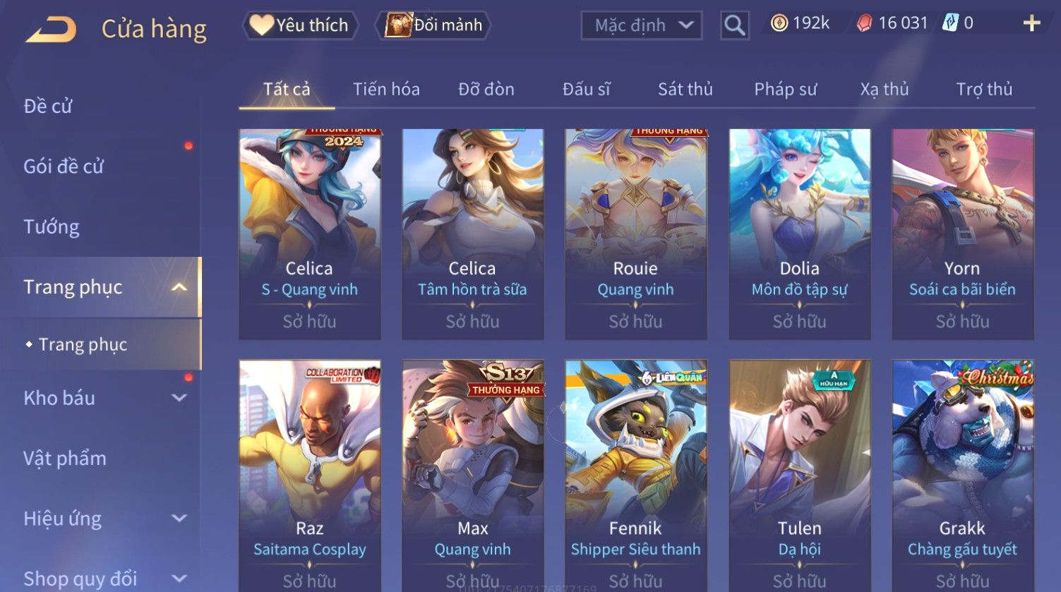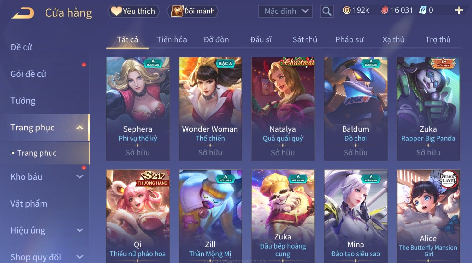 Nổi bật: Full Ngọc, Nhiều Skin SS Đẹp
