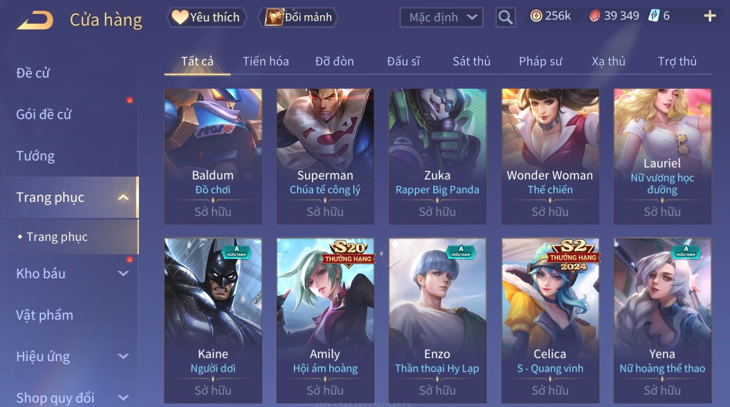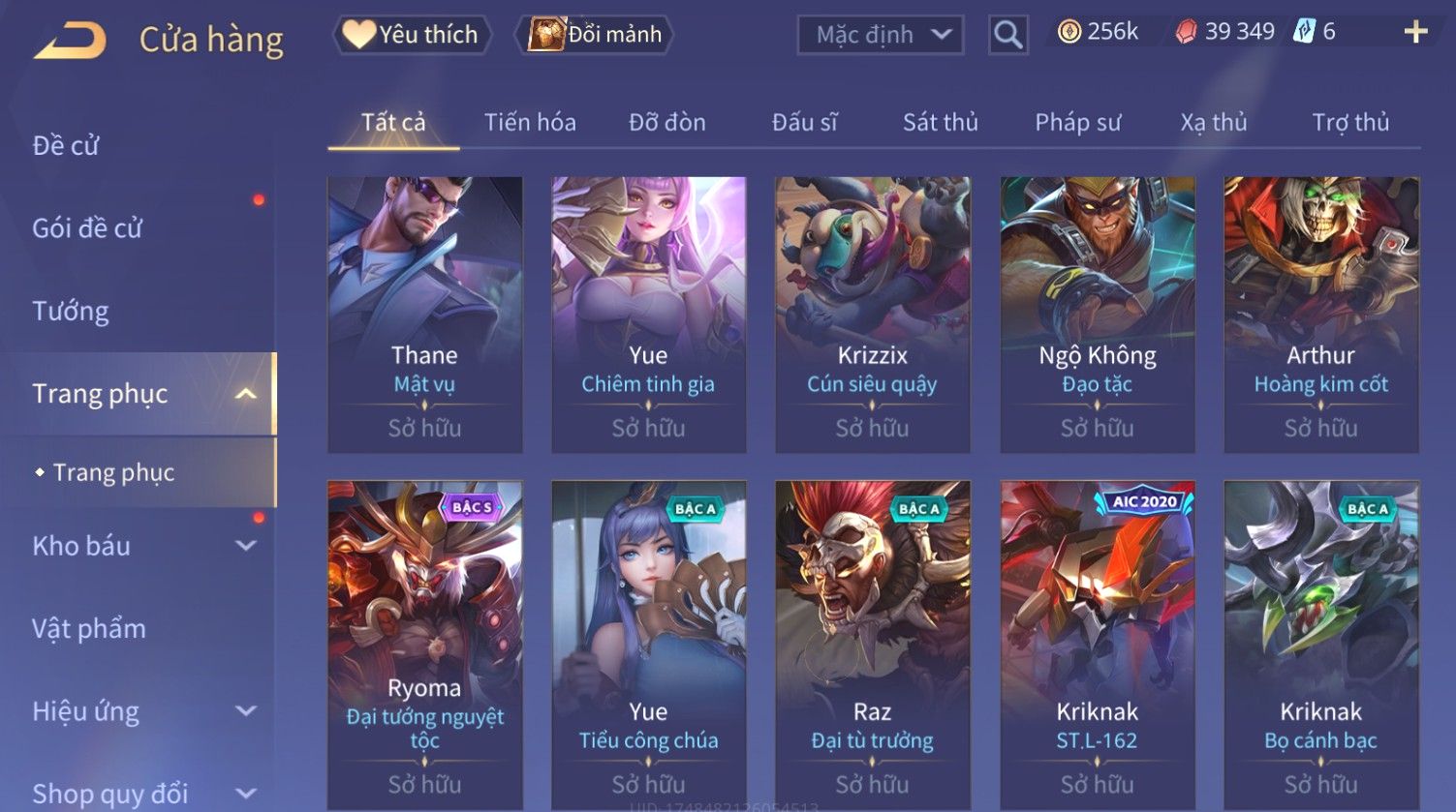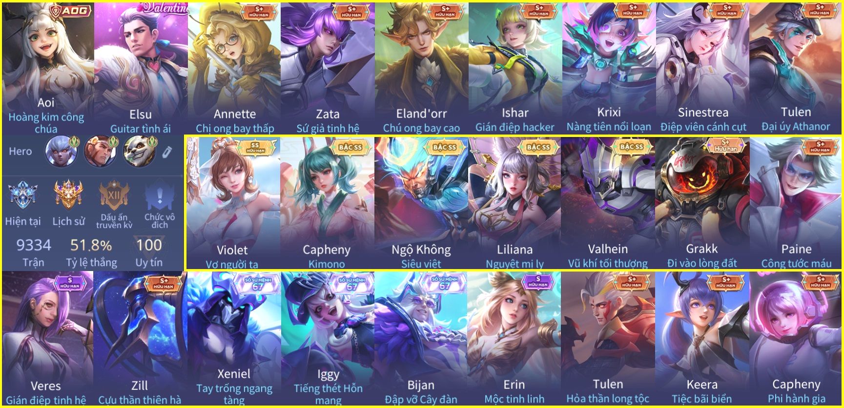 Nổi bật: Skin: Violet Vợ Người Ta×Capheny Kimono×Ngộ Không Siêu Việt×Liliana Nguyệt Mị Ly×Valhein Vũ Khí Tối Thượng×Grakk Đi Vào Lòng Đất×Elsu Guitar Tình Ái×Veres Gián Điệp Tinh Hệ×Full Ngọc, Nhiều Skin Đẹp