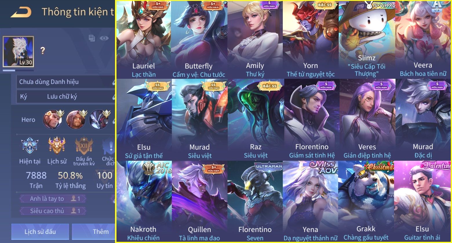 Nổi bật: Skin: Elsu Sử Giả Tận Thế×Murad Siêu Việt×Raz Siêu Việt×Florentino Giám Sát Tinh Hệ×Veres Gián Điệp Tinh Hệ×Elsu Guitar Tình Ái×Full Ngọc, Nhiều Skin Đẹp