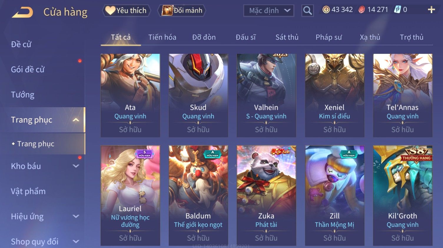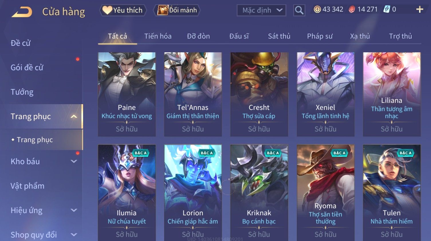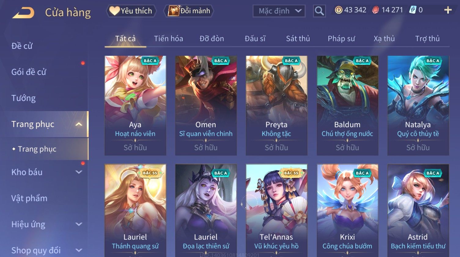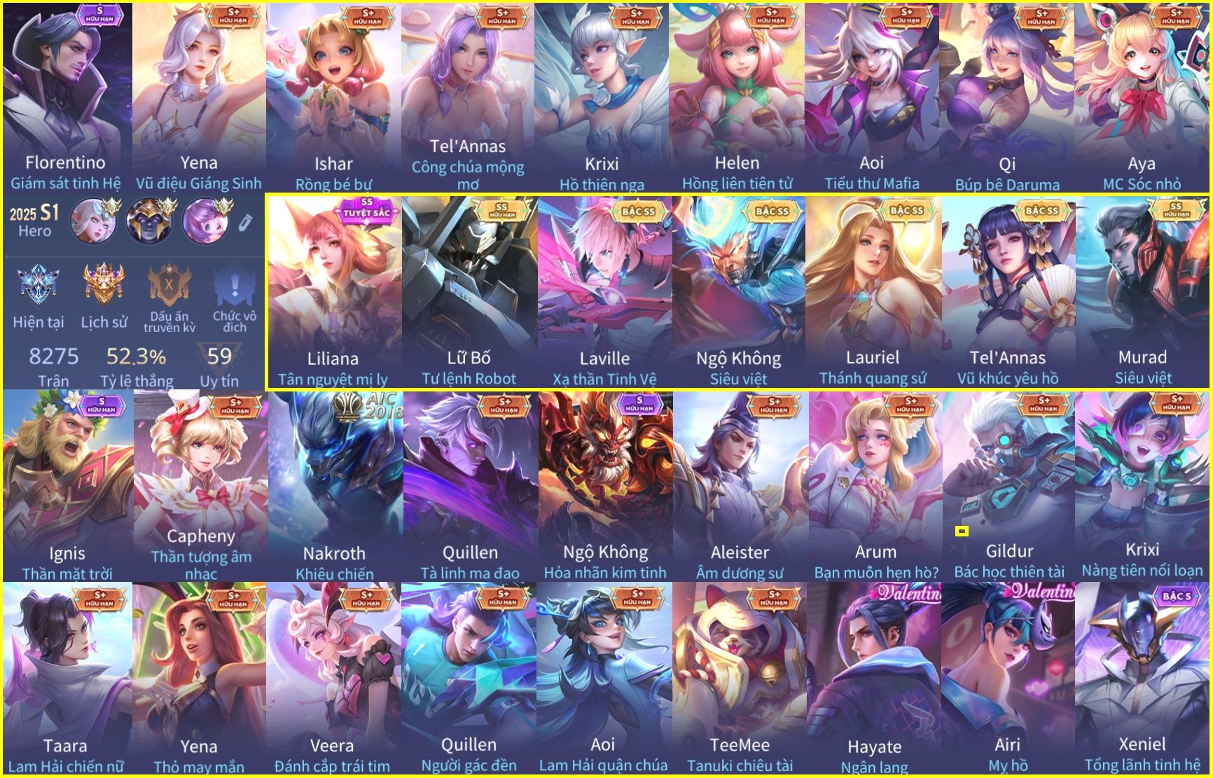 Nổi bật: Skin: Liliana Tân Nguyệt Mị Ly×Lữ Bố Tư Lệnh Robot×Laville Xạ thần Tinh Vệ×Lauriel Thánh Quang Sứ×Tel'Annas Vũ Khúc Yêu Hồ×Murad Siêu Việt×Ngộ Không Siêu Việt×Florentino Giám Sát Tinh Hệ×Full Ngọc, Nhiều Skin SS Đẹp