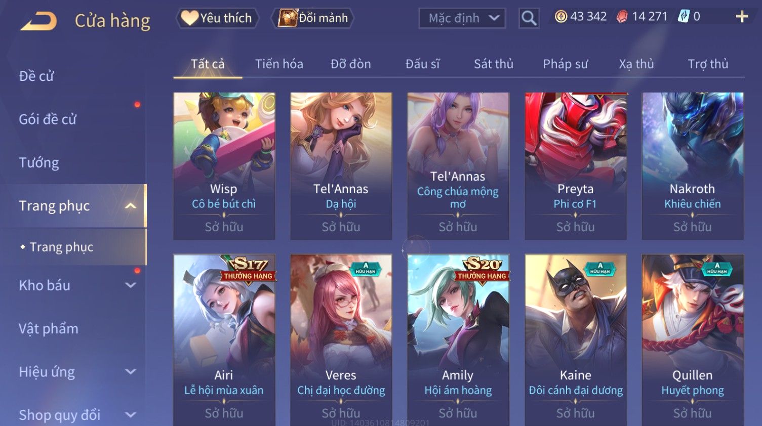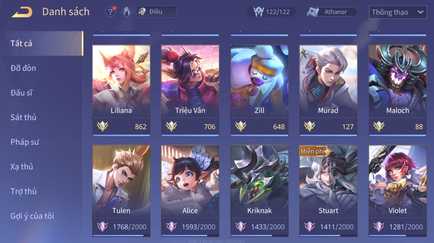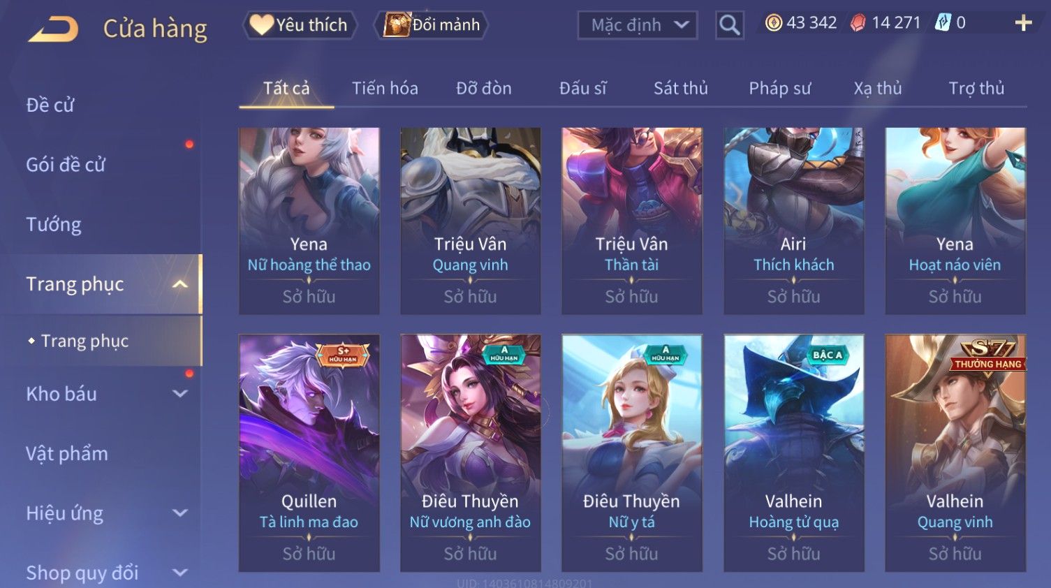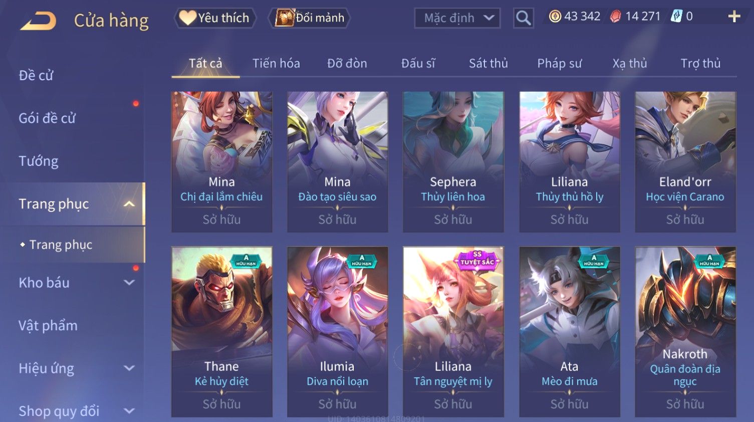 Nổi bật: Skin: Liliana Tân Nguyệt Mị Ly×Lữ Bố Tư Lệnh Robot×Laville Xạ thần Tinh Vệ×Lauriel Thánh Quang Sứ×Tel'Annas Vũ Khúc Yêu Hồ×Murad Siêu Việt×Ngộ Không Siêu Việt×Florentino Giám Sát Tinh Hệ×Full Ngọc, Nhiều Skin SS Đẹp