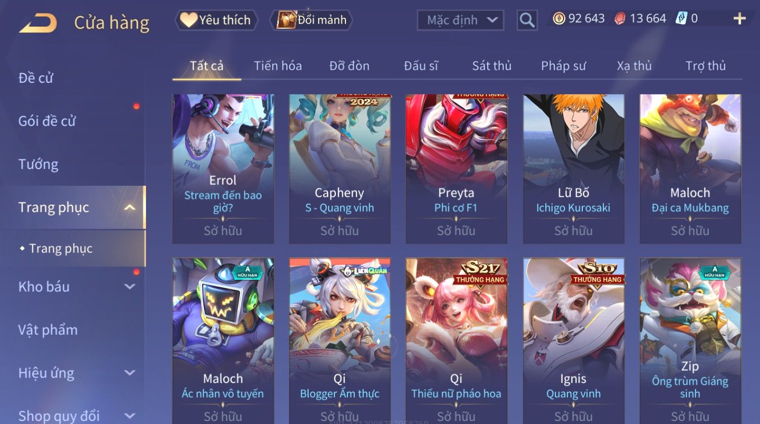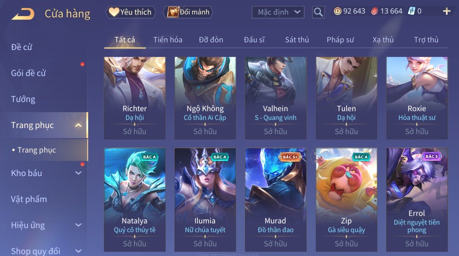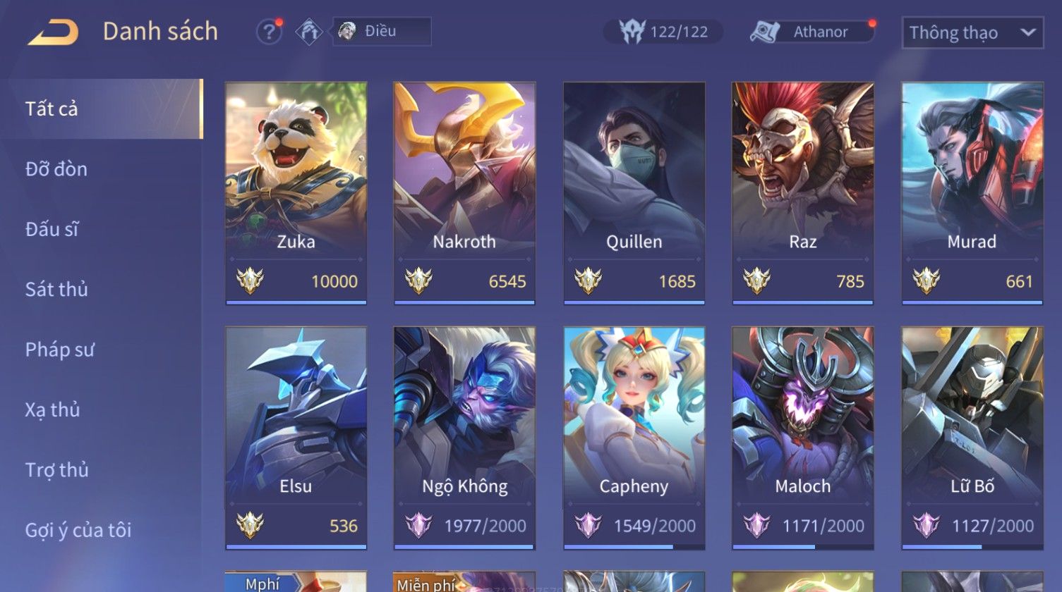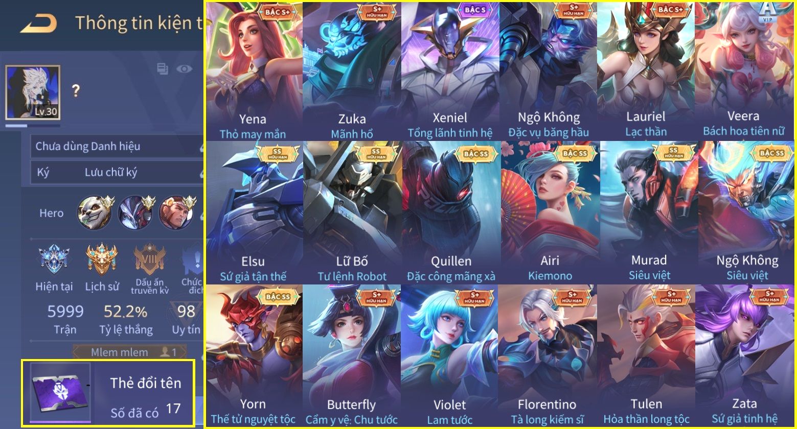 Nổi bật: Skin: Elsu Sử Giả Tận Thế×Lữ Bố Tư Lệnh Robot×Quillen Đặc Công Mãng Xà×Airi Kiemono×Murad Siêu Việt×Ngộ Không Siêu Việt×Zata Sứ Giả Tinh Hệ×Full Ngọc, Nhiều Skin Đẹp
