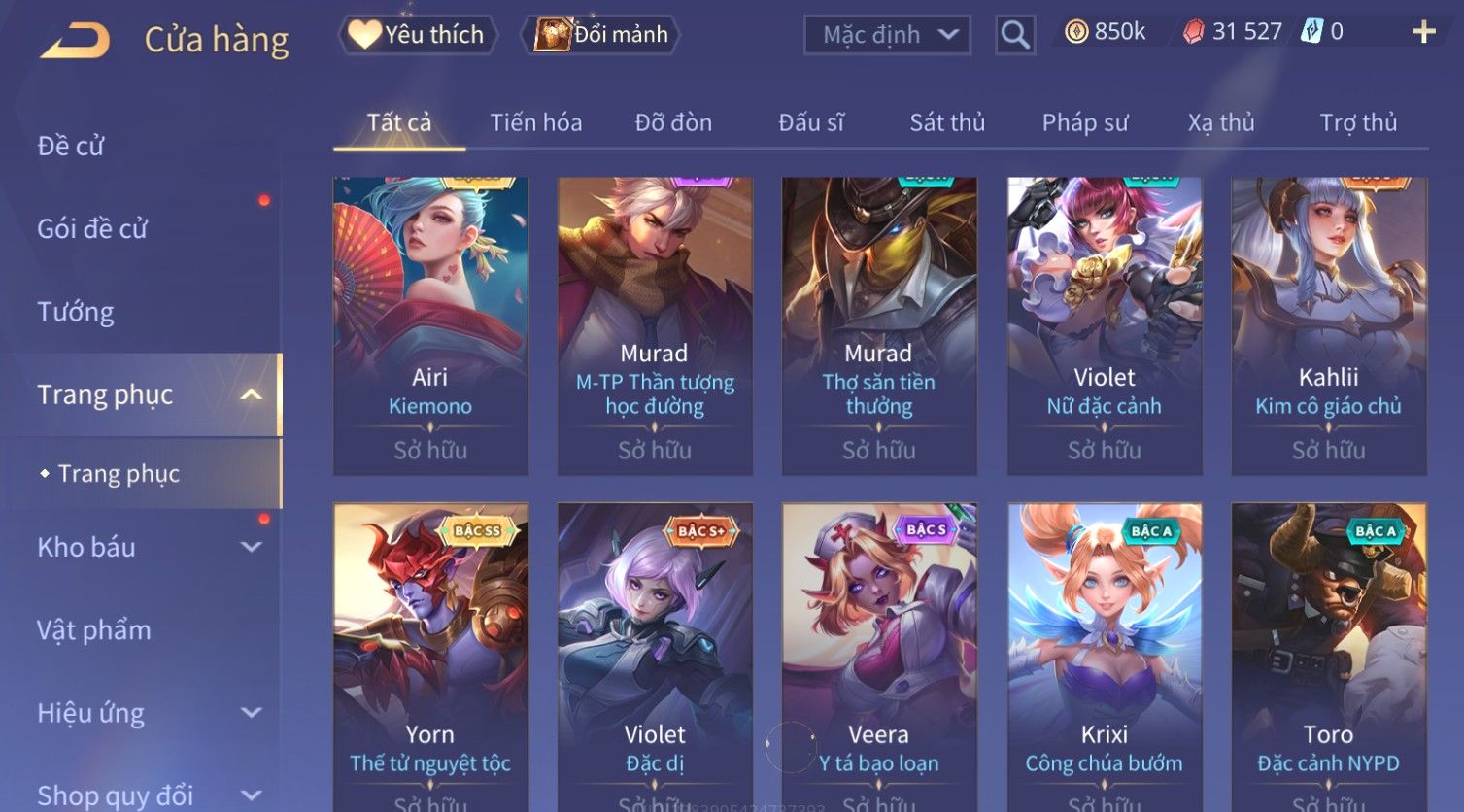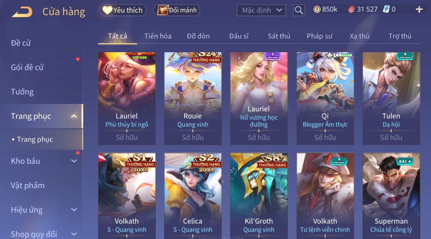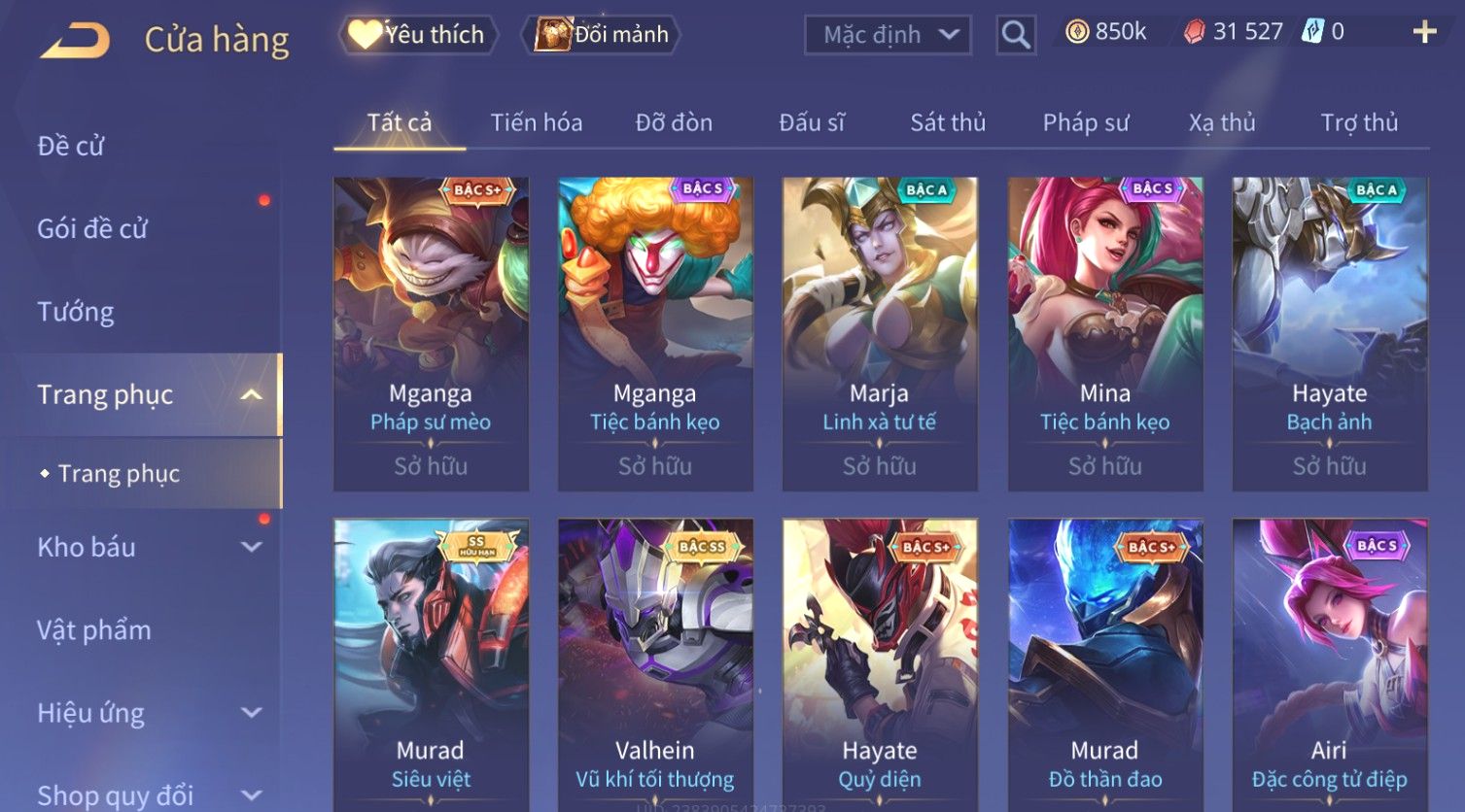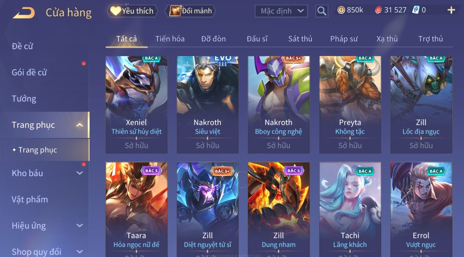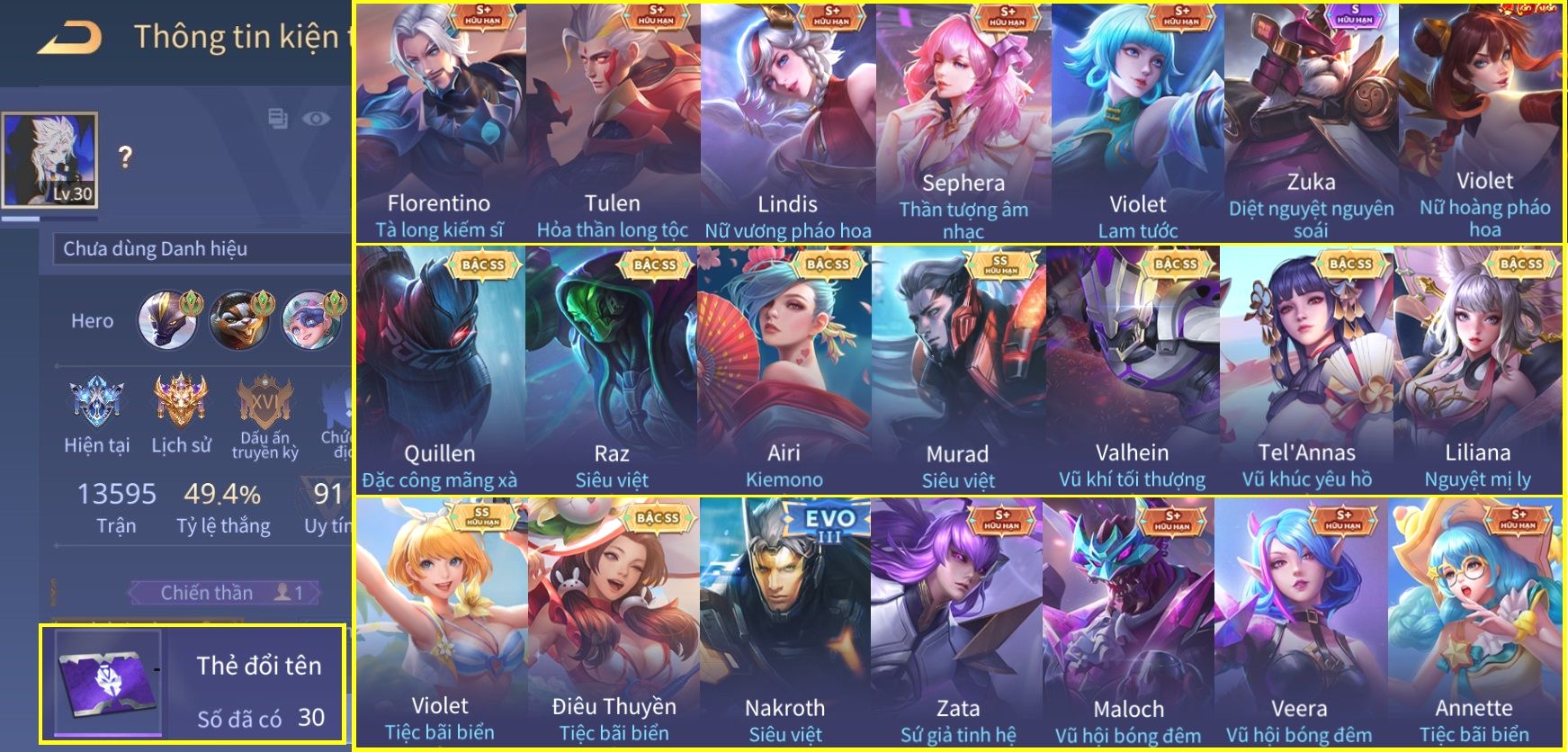 Nổi bật: Skin: Quillen Đặc Công Mãng Xà×Raz Siêu Việt×Airi Kiemono×Murad Siêu Việt×Nakroth Siêu Việt×Tel'Annas Vũ Khúc Yêu Hồ×Valhein Vũ Khí Tối Thượng×Violet Tiệc Bãi Biển×Zata Sứ Giả Tinh Hệ×Full Ngọc, Nhiều Skin Đẹp