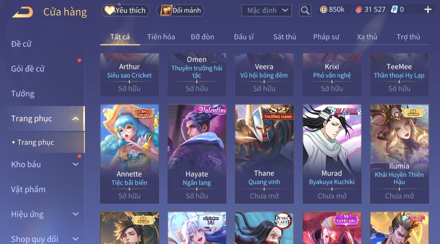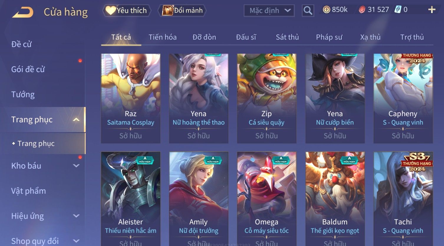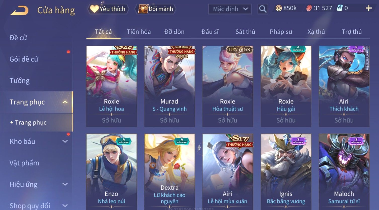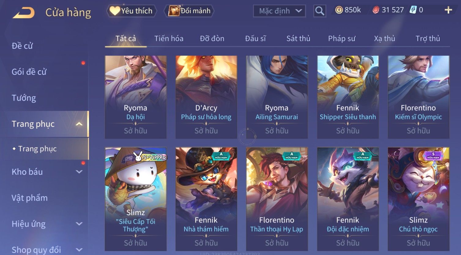 Nổi bật: Skin: Quillen Đặc Công Mãng Xà×Raz Siêu Việt×Airi Kiemono×Murad Siêu Việt×Nakroth Siêu Việt×Tel'Annas Vũ Khúc Yêu Hồ×Valhein Vũ Khí Tối Thượng×Violet Tiệc Bãi Biển×Zata Sứ Giả Tinh Hệ×Full Ngọc, Nhiều Skin Đẹp