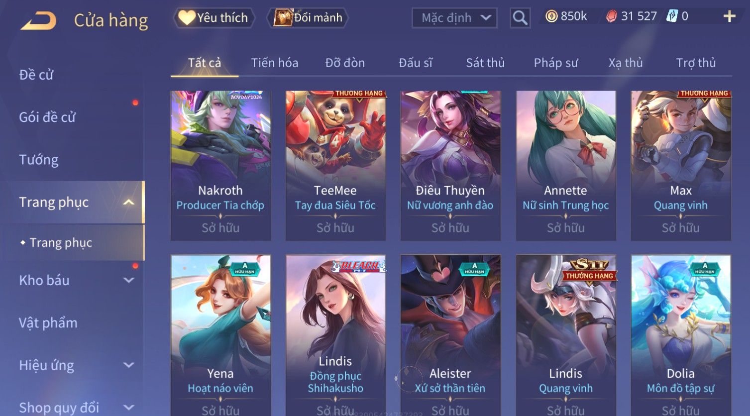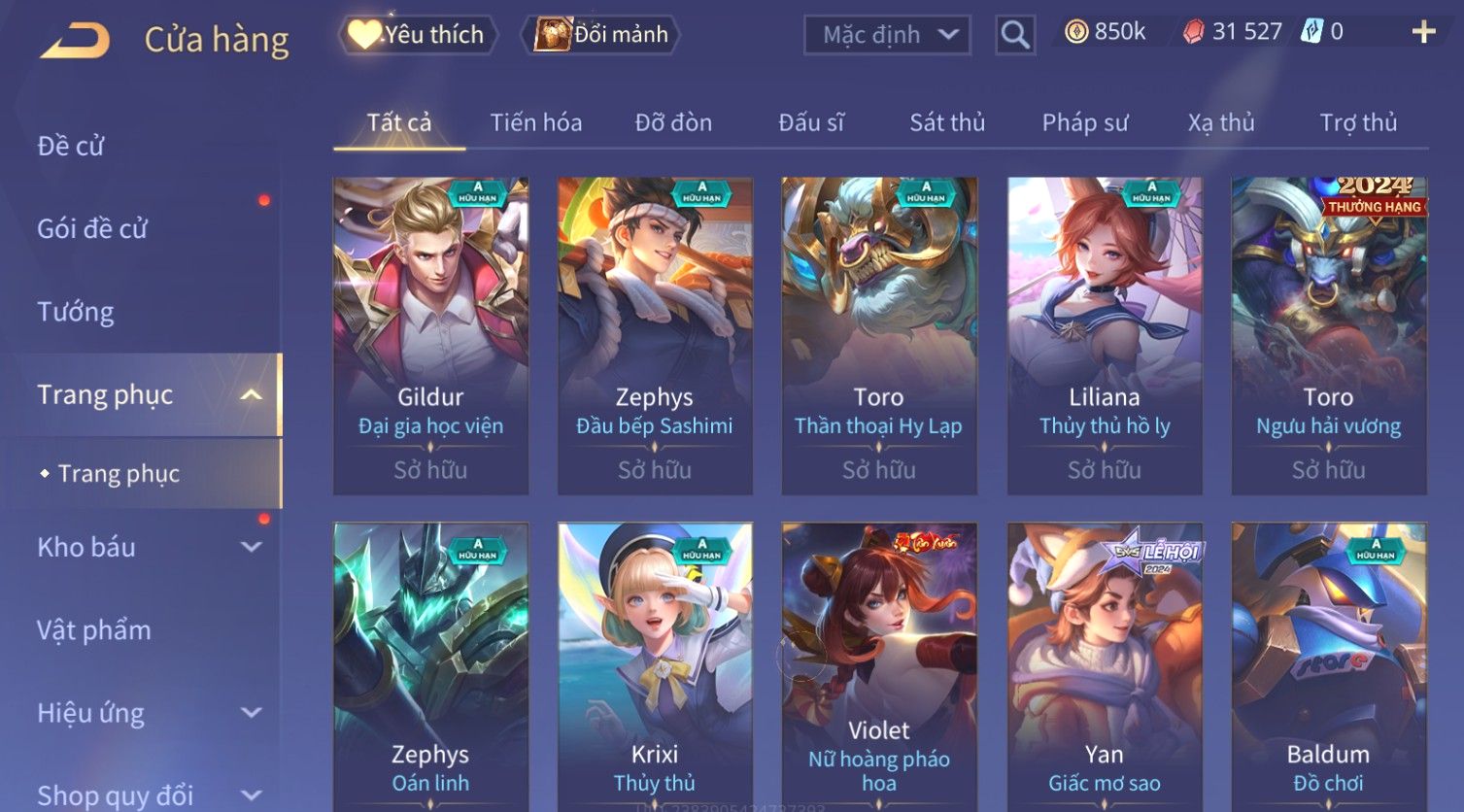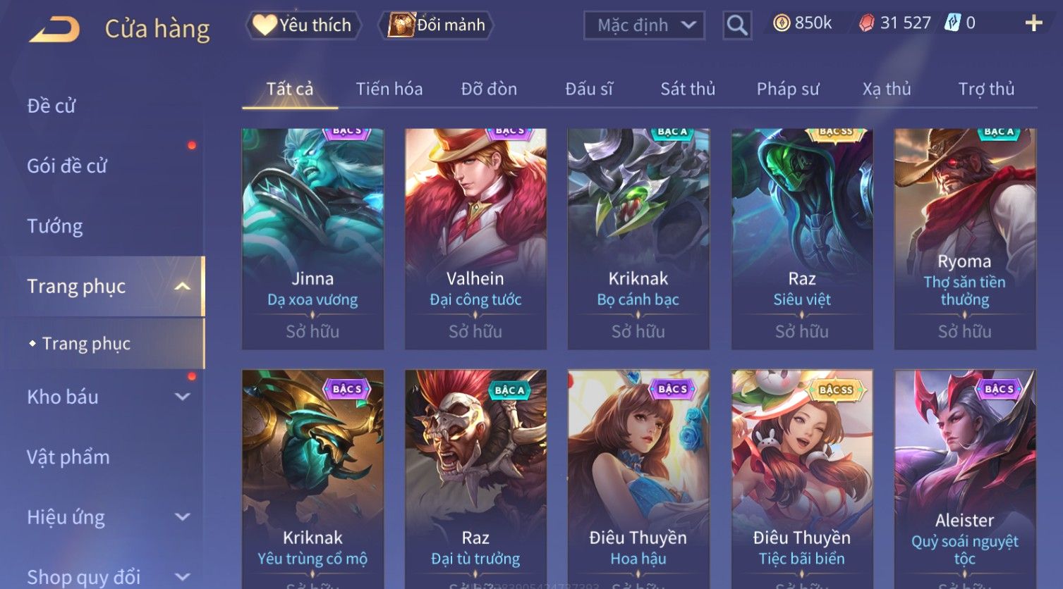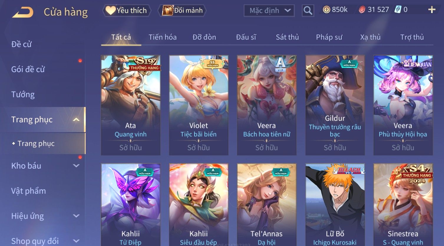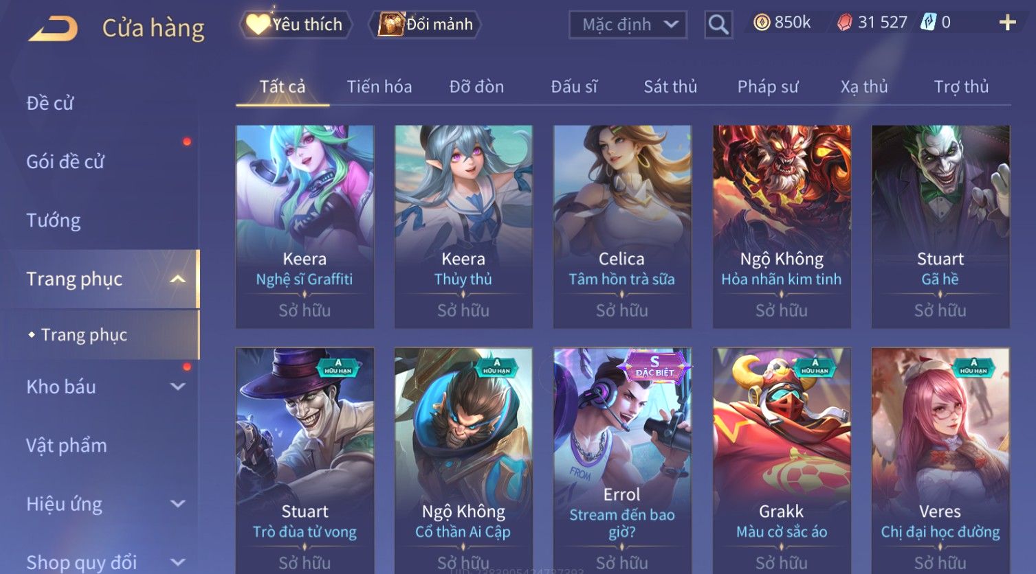 Nổi bật: Skin: Quillen Đặc Công Mãng Xà×Raz Siêu Việt×Airi Kiemono×Murad Siêu Việt×Nakroth Siêu Việt×Tel'Annas Vũ Khúc Yêu Hồ×Valhein Vũ Khí Tối Thượng×Violet Tiệc Bãi Biển×Zata Sứ Giả Tinh Hệ×Full Ngọc, Nhiều Skin Đẹp