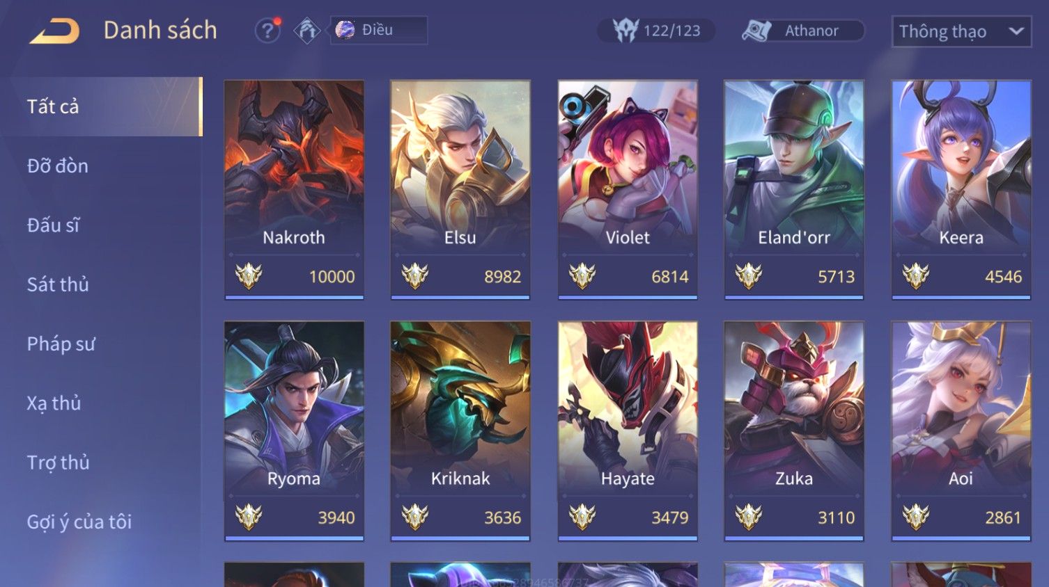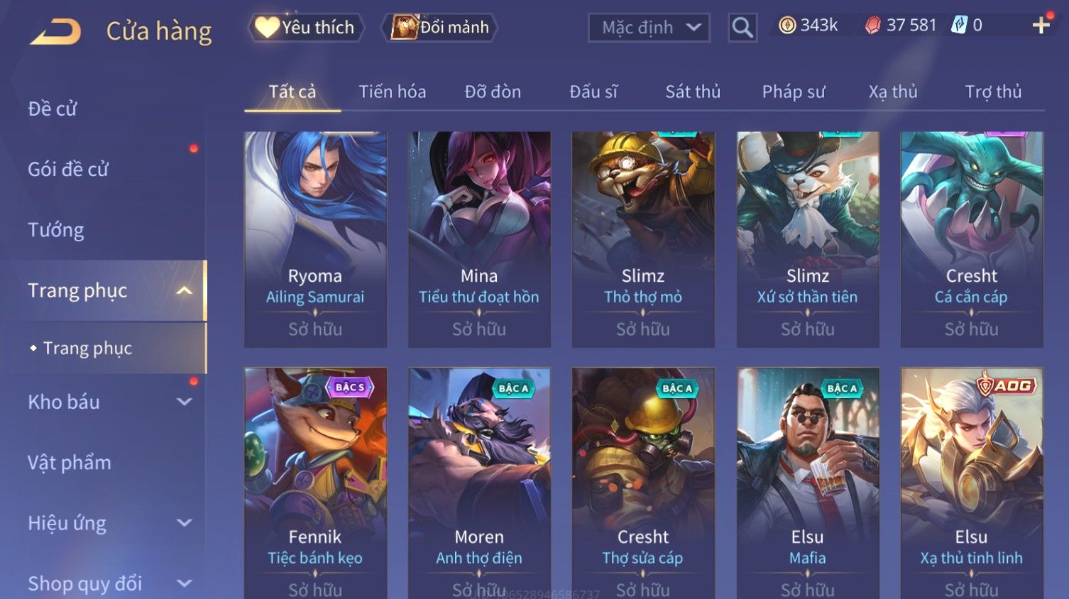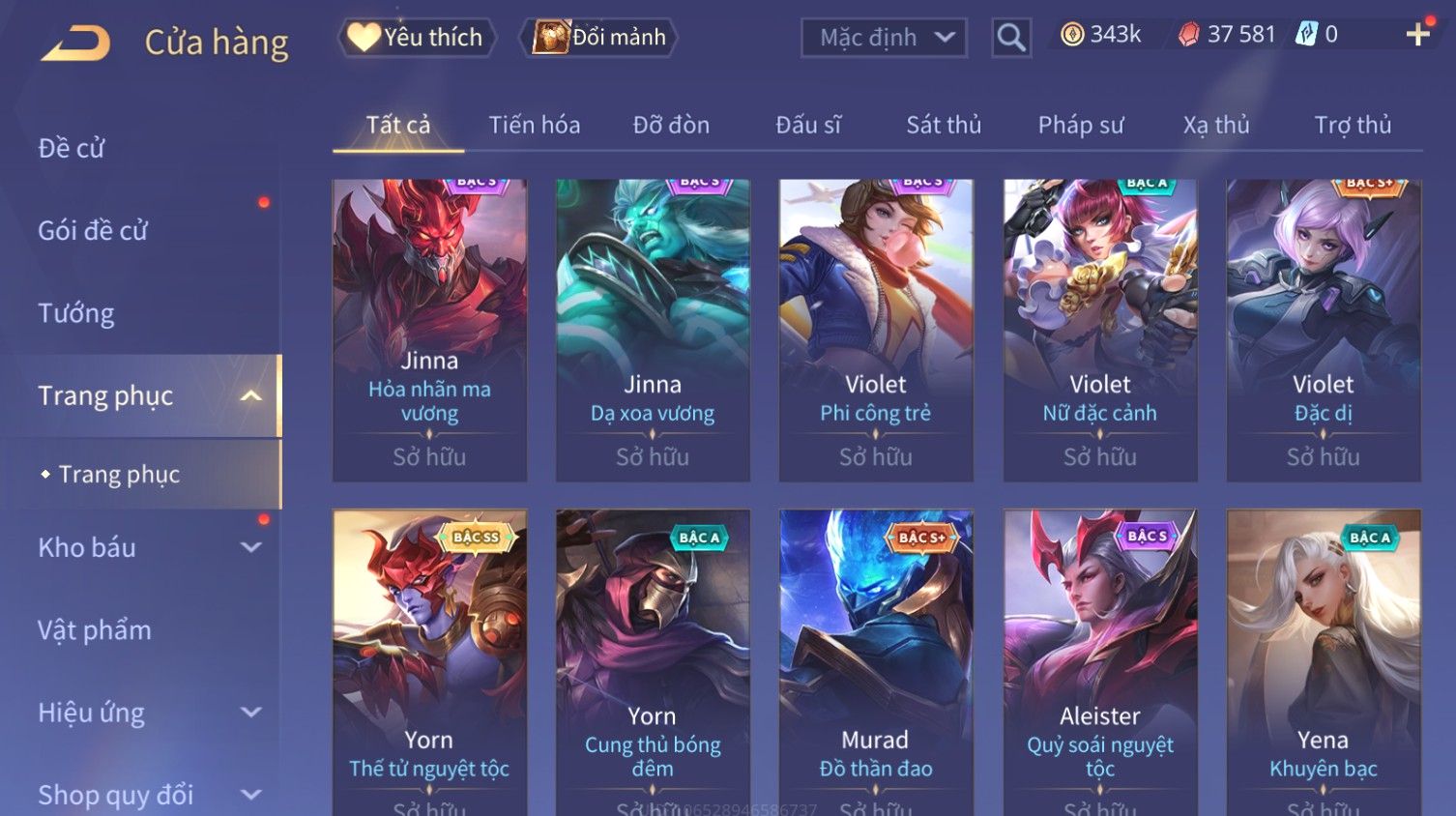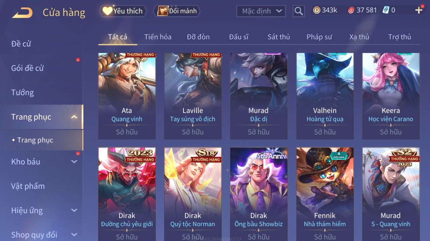 Nổi bật: Skin: Ryoma Sumarai Huyền Thoại×Raz Chiến Thần Muay Thái×Ngộ Không Siêu Việt×Lauriel Thánh Quang Sứ×Laville Xạ thần Tinh Vệ×Yorn Long Thần Soái×Murad Siêu Việt×Airi Kiemono×Ilumia Nộ Hải Thiên Ngư×Full Ngọc, Nhiều Skin SS Đẹp