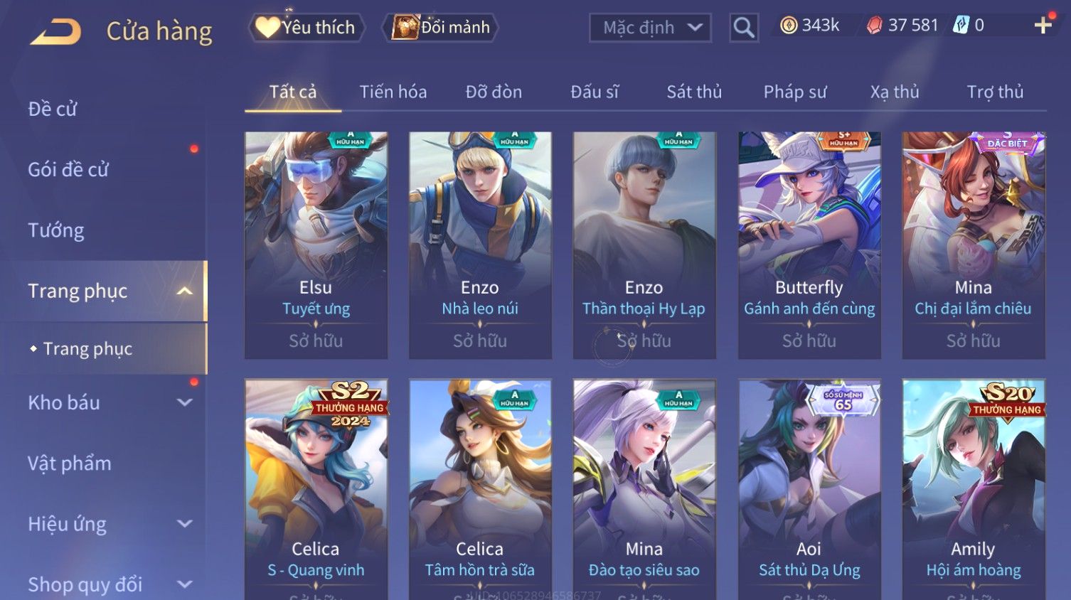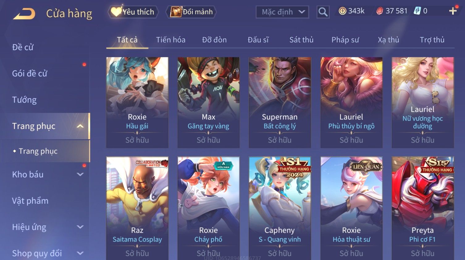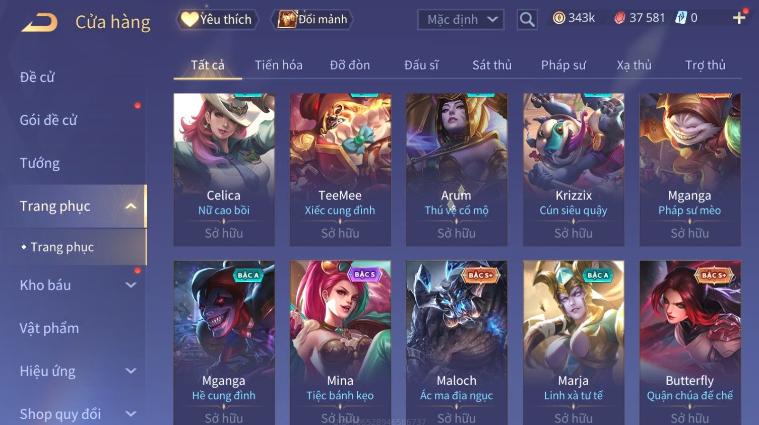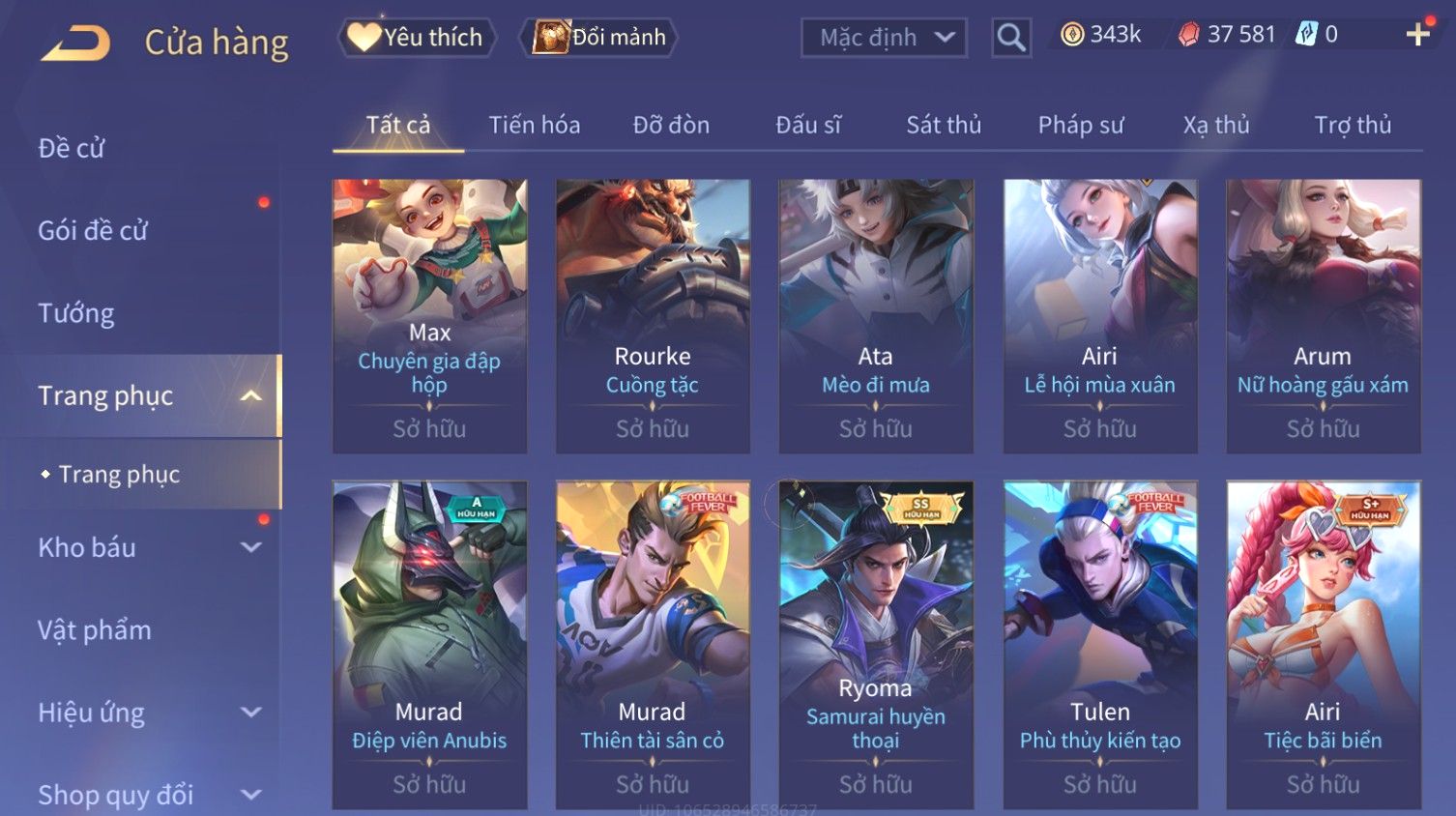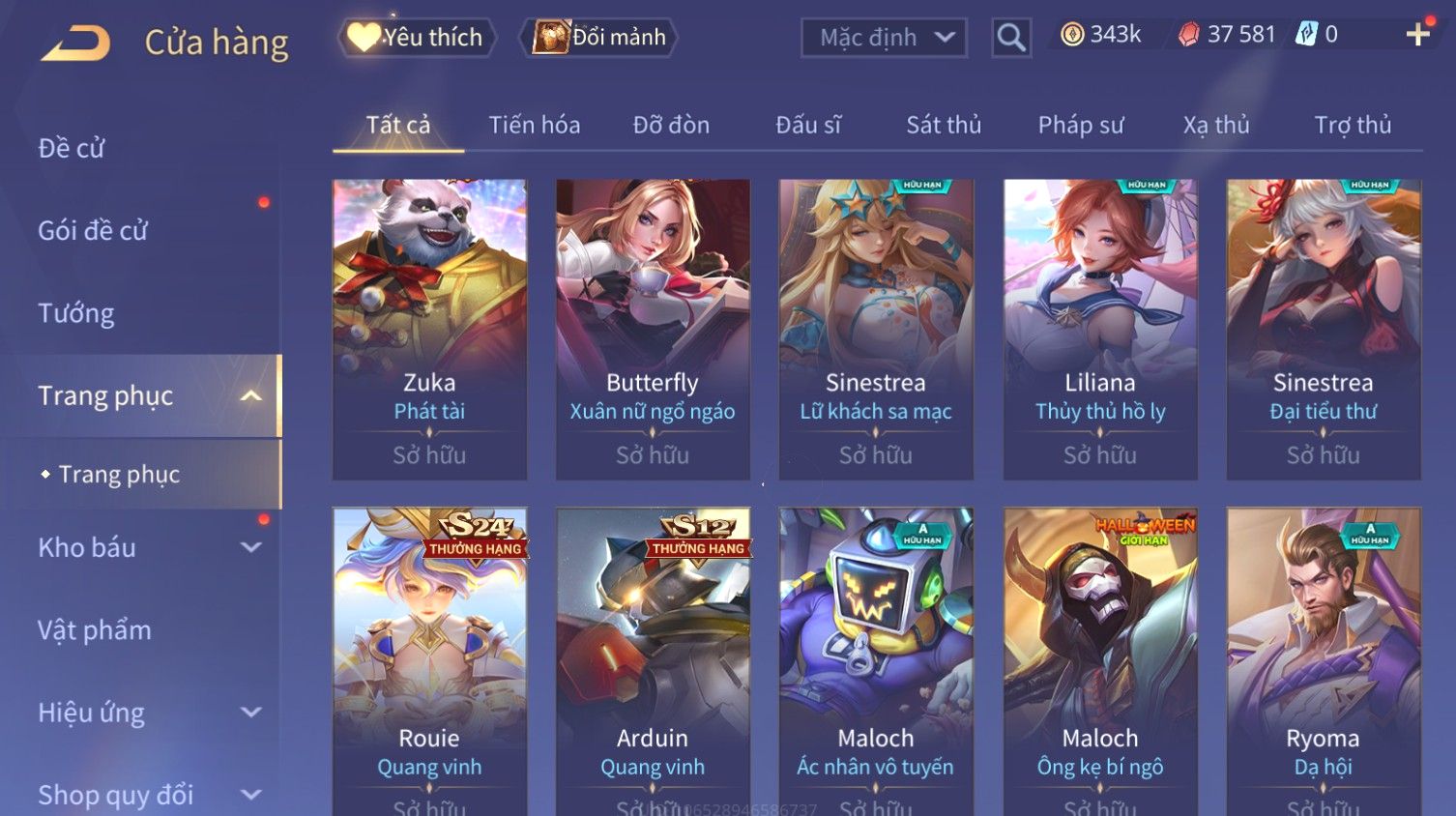 Nổi bật: Skin: Ryoma Sumarai Huyền Thoại×Raz Chiến Thần Muay Thái×Ngộ Không Siêu Việt×Lauriel Thánh Quang Sứ×Laville Xạ thần Tinh Vệ×Yorn Long Thần Soái×Murad Siêu Việt×Airi Kiemono×Ilumia Nộ Hải Thiên Ngư×Full Ngọc, Nhiều Skin SS Đẹp