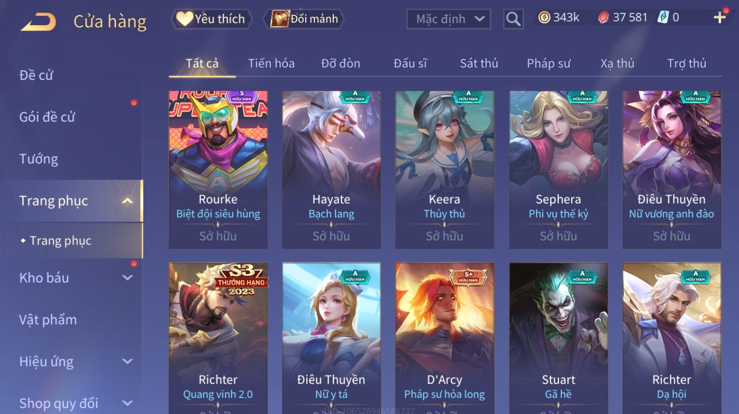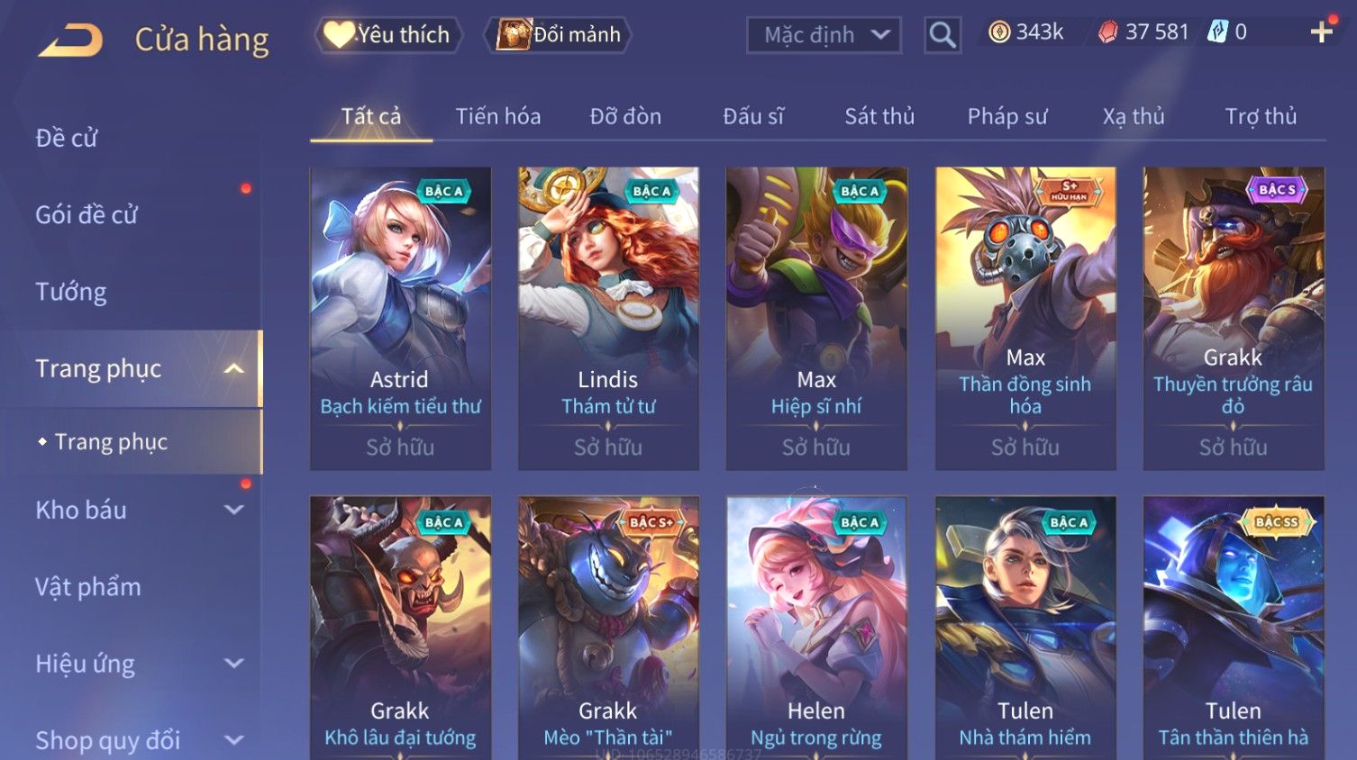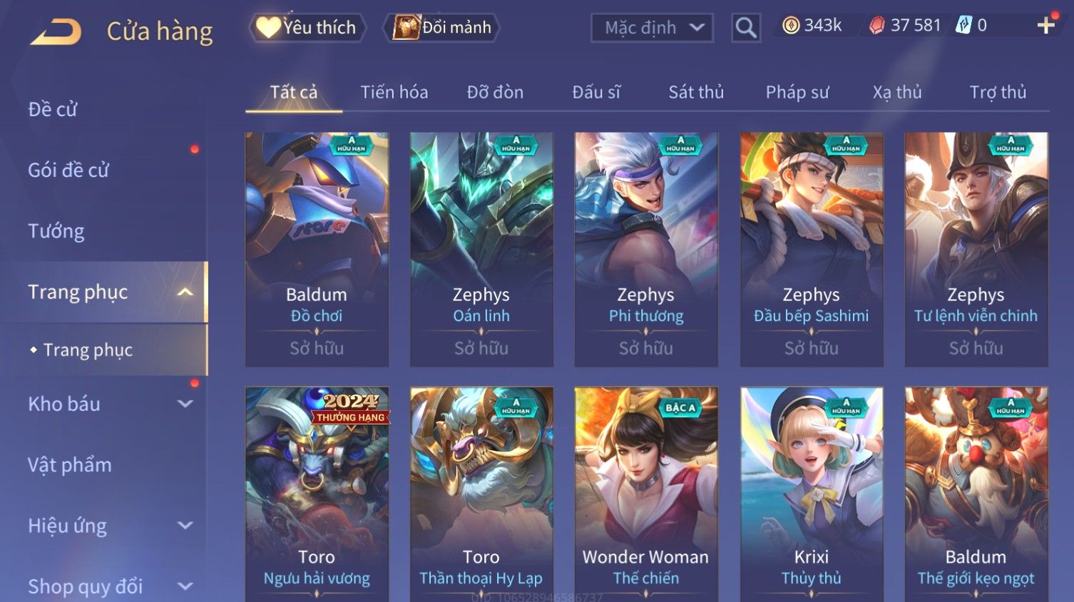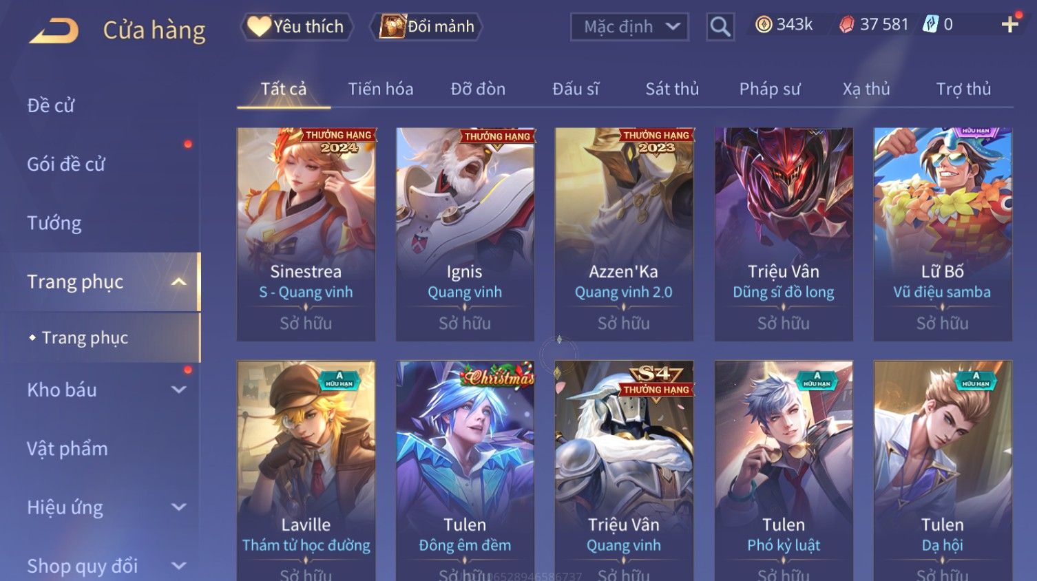 Nổi bật: Skin: Ryoma Sumarai Huyền Thoại×Raz Chiến Thần Muay Thái×Ngộ Không Siêu Việt×Lauriel Thánh Quang Sứ×Laville Xạ thần Tinh Vệ×Yorn Long Thần Soái×Murad Siêu Việt×Airi Kiemono×Ilumia Nộ Hải Thiên Ngư×Full Ngọc, Nhiều Skin SS Đẹp